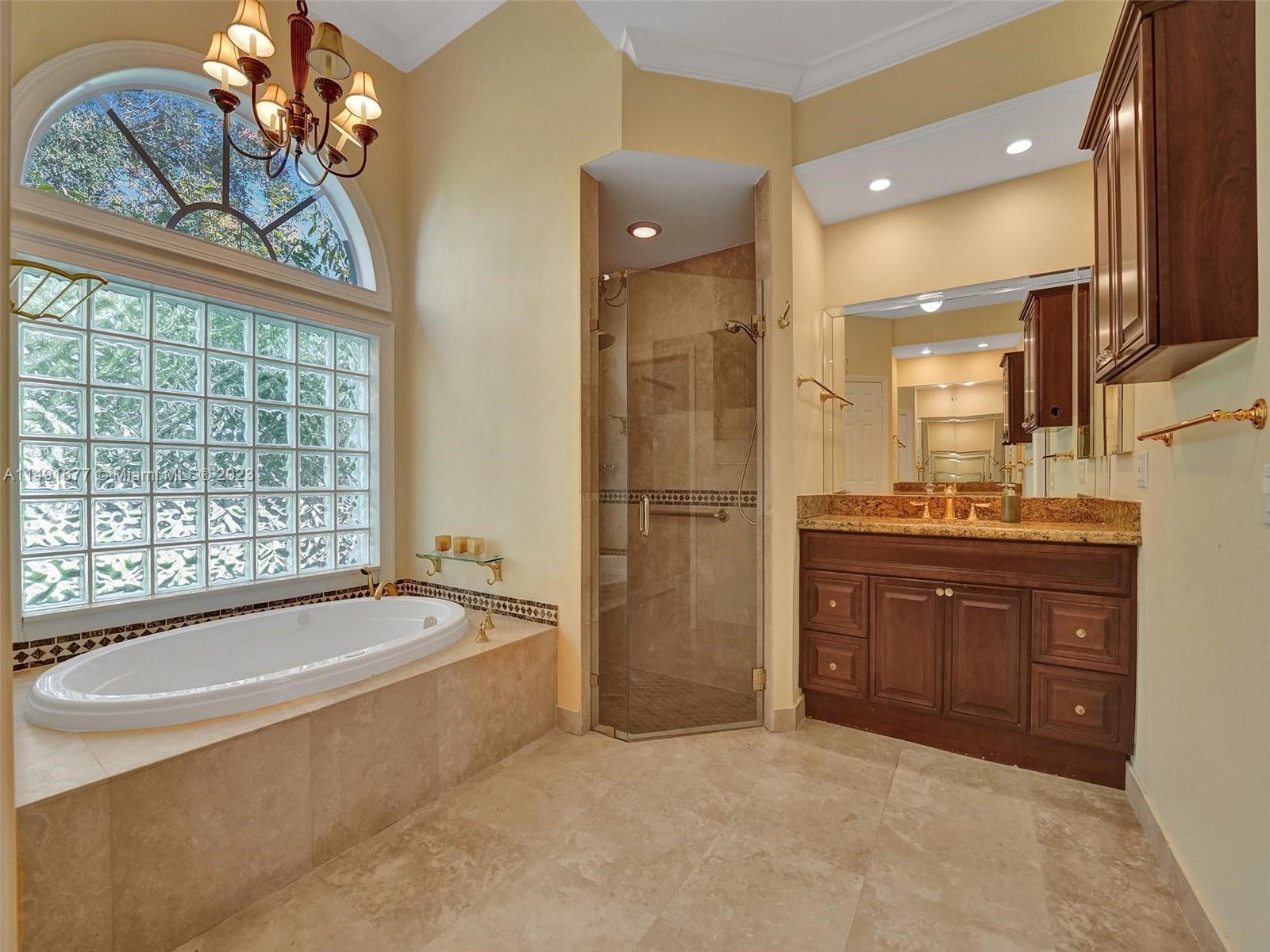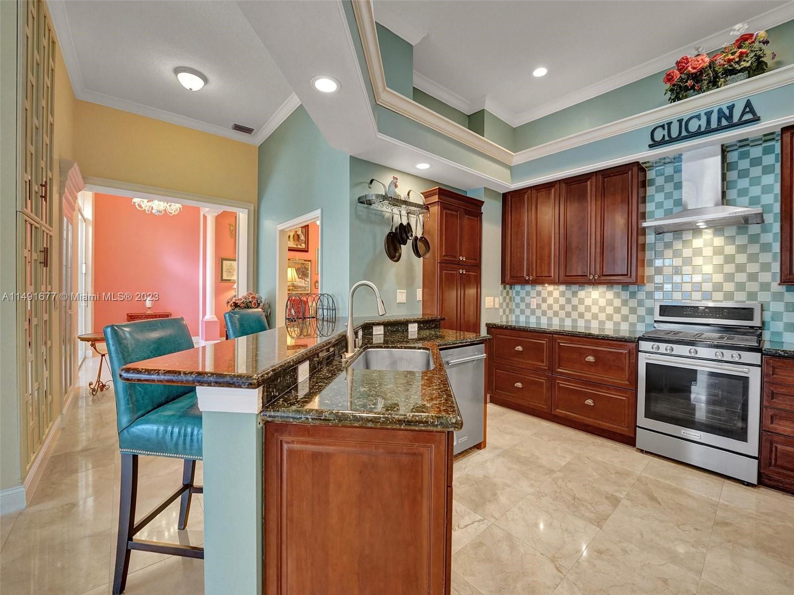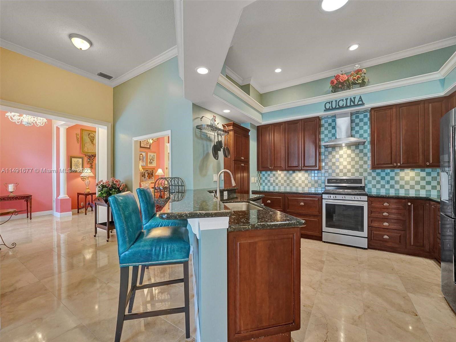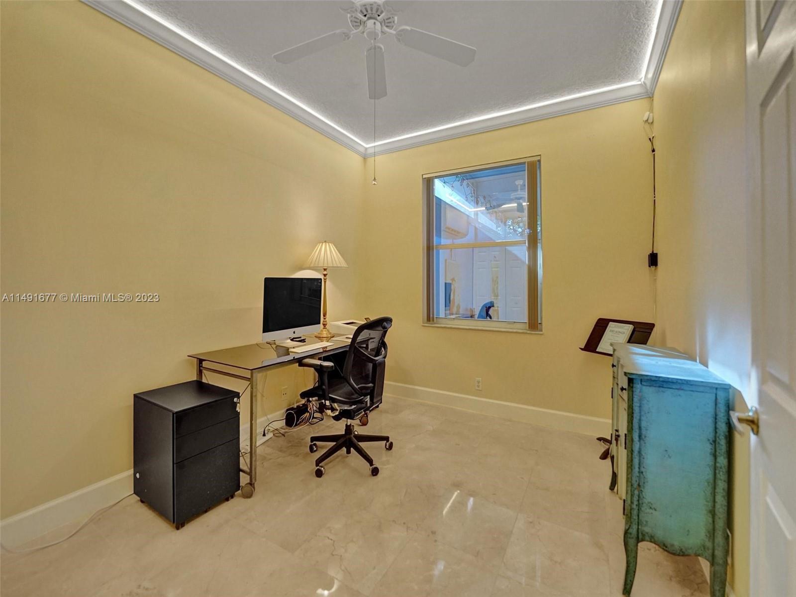 Tucked in a quiet cul-de-sac, this 4 Br + office + study/gym, waterfront gem offers an elegant interior with 12 ft ceilings & luxurious marble floors. Large kitchen featuring mahogany wood cabinetry, plenty of storage & workspace, updated appliances & gas stove. New air-conditioned sunroom w/remote-controlled shades. Outdoor oasis with a solar-heated salt pool, travertine deck & cedar pergola, views of the lake/wildlife preserve & memorable sunsets year-round. Oversized driveway, 3-year-old roof, new A/C unit. This haven is part of a welcoming community. Bonus features: New lake-fed irrigation system, new pool equipment, accordion shutters. Ideal location, closest to the resident gate, tennis court & playground, 4 mins from shopping & I-75. Nearby 7-1/2 miles of trails for biking/walking