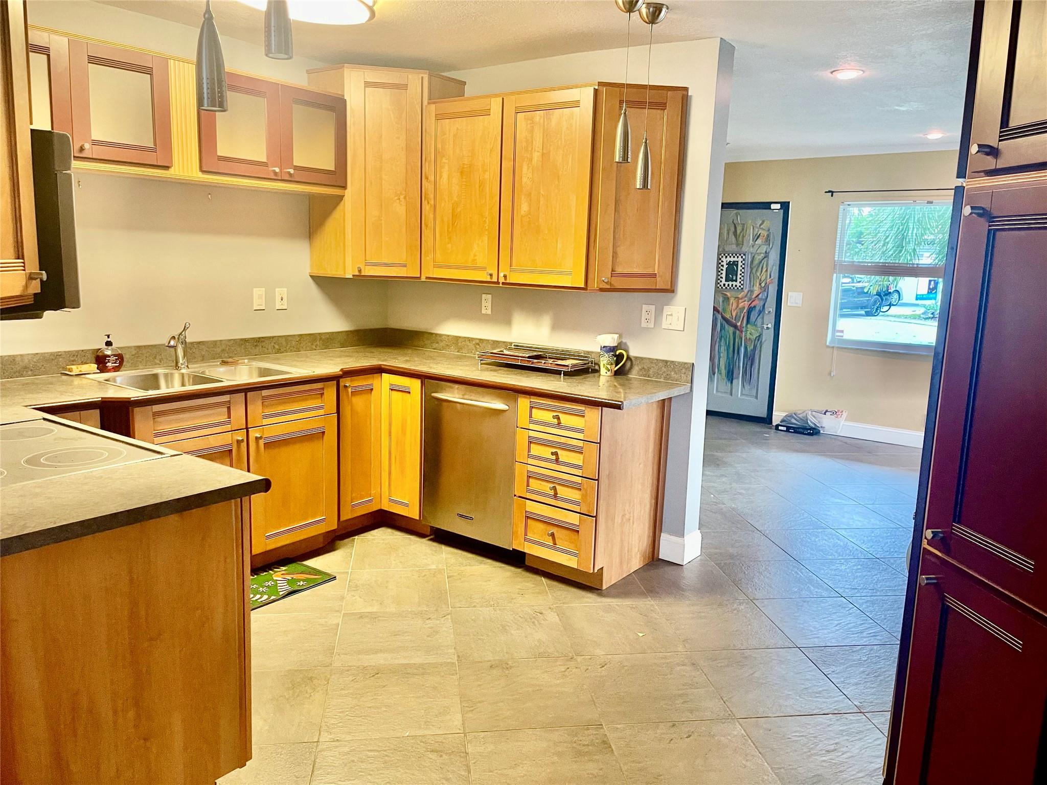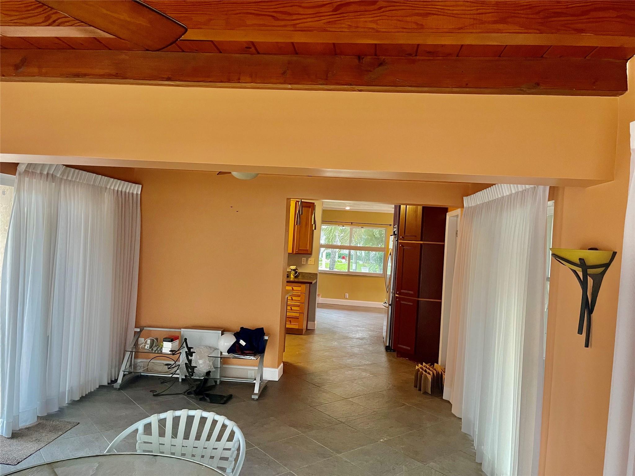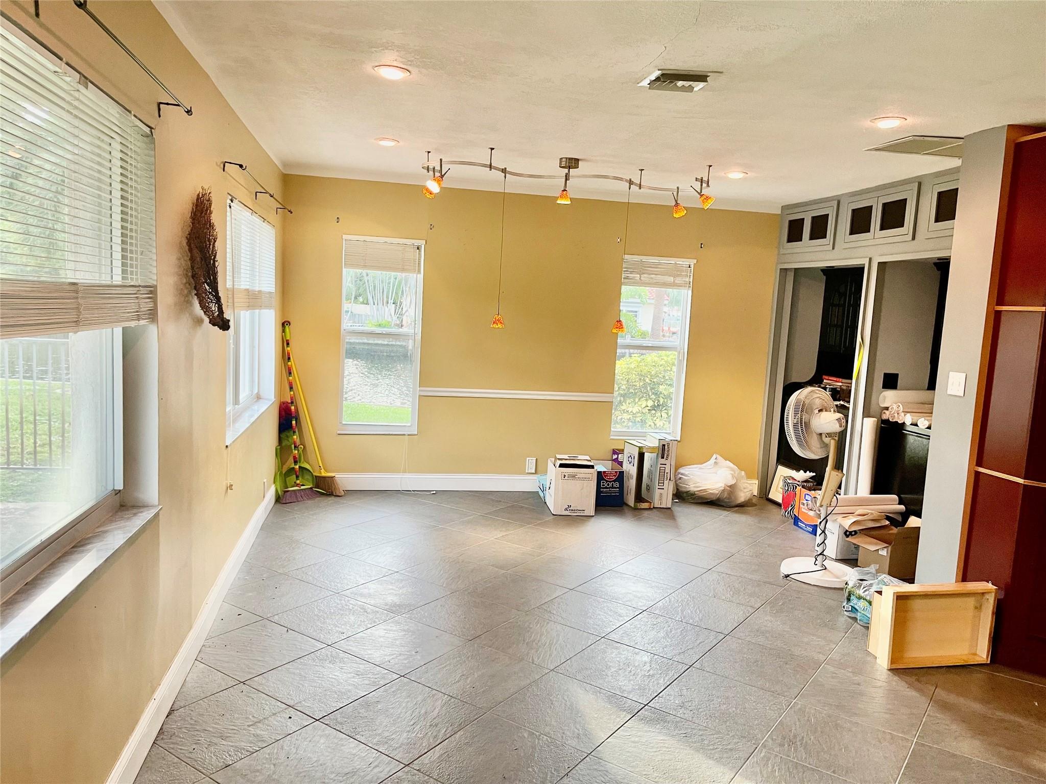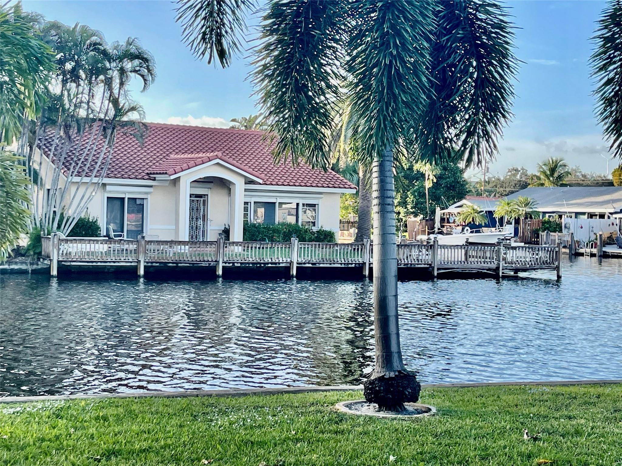A serene hidden gem located on a cul di sac dead end street surrounded by water. Very private setting there is one dock currently but you could have another. House was a 3 bedroom one bath converted to a 2 bedroom 2 bath. Kitchen was remodelled with gorgeous Thomasville wood cabinets in abundance, stainless steel appliances, large living room with exta cabinets and wine cooler. The two bathrooms have been totally remodelled, master has a extra large shower. A huge Florida room with an attached screened in patio on one side and a huge patio on the other. Both with wonderful water views. Impact windows is a major plus. A storage shed also. This location is ocean access w/ fixed bridges 13 ft. Alarm system, newer plumbing and electric A/C 2018, New compressor with warranty. This is a must see
