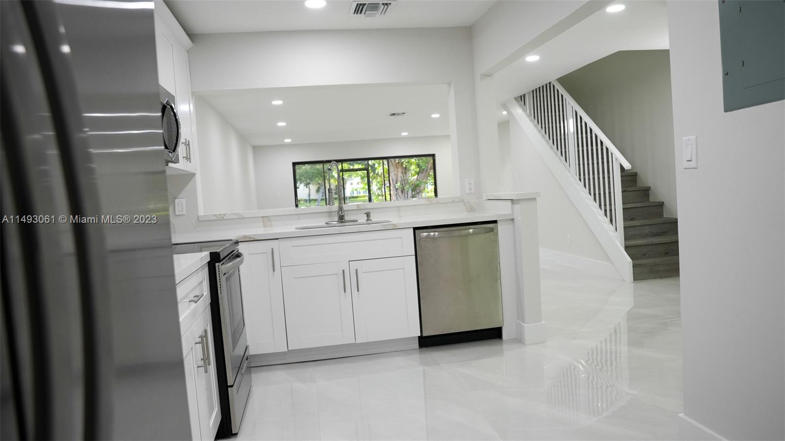 LOCATION!! Spectacular completely remodeled townhouse, 3/3.5. Each room has a full bathroom. In one of the most desired communities in the heart of Doral with stunning views. Covered terrace. Impact windows, pet-scratch and waterproof flooring on the second floor, NEW air conditioning, Italian porcelain floors, kitchen with NEW stainless steel appliances, quartz countertop, renovated bathrooms, separate pet door, private parking for two cars in front of the unit. Plenty of guest parking. Gated community, with swimming pool, tennis, and basketball court, playground, RESTAURANT/BAR within the community, and golf courses. 24-hour security. HOA includes cable/internet, building/windstorm insurance, water, pest control, sewer, common area maintenance, and roof pressure cleaning once a year.