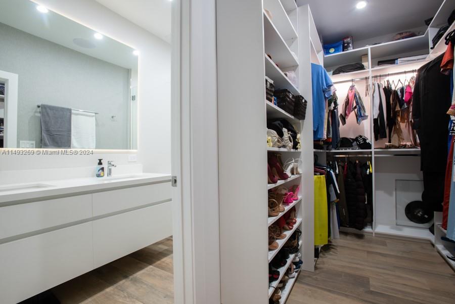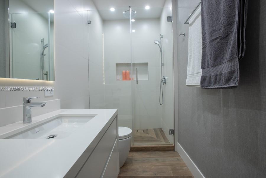 It is a stunning two-story home with a Pool & SPA— The property is fully remodeled with high-end materials. It is an open floor plan with a 3/3 plus a home-office area in the primary bedroom and a climatized 2-car garage with a laundry and extra storage. It has impacted doors and windows. Has a water filter system, a new roof, new electrical wiring, a central vacuum, a tankless water heater, 2 A/C units with new ducts and modern linear vent grills, LED lighting, and an irrigation system with automation. As soon as you walk in you will see a high-ceiling living and dining room with recessed lighting and a modern chandelier, a cozy family room, a full bathroom, and a spacious kitchen.