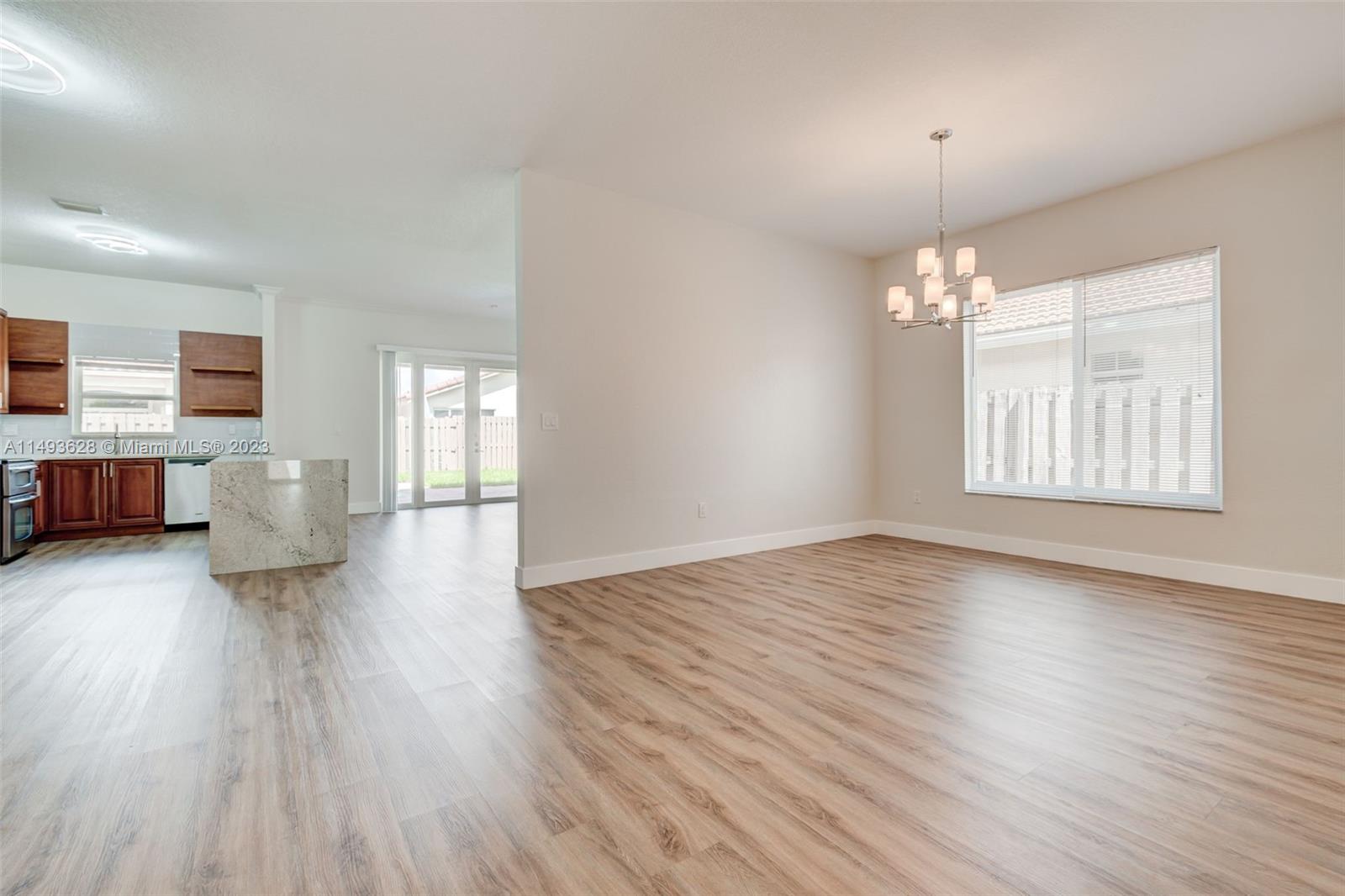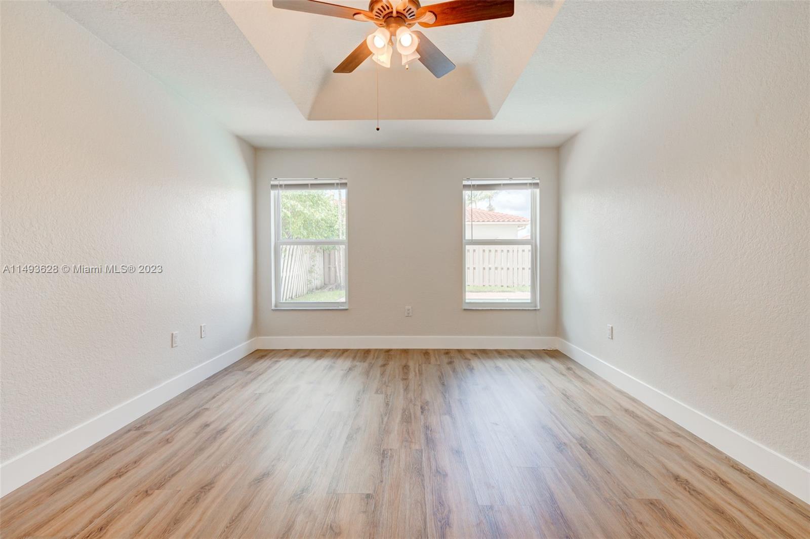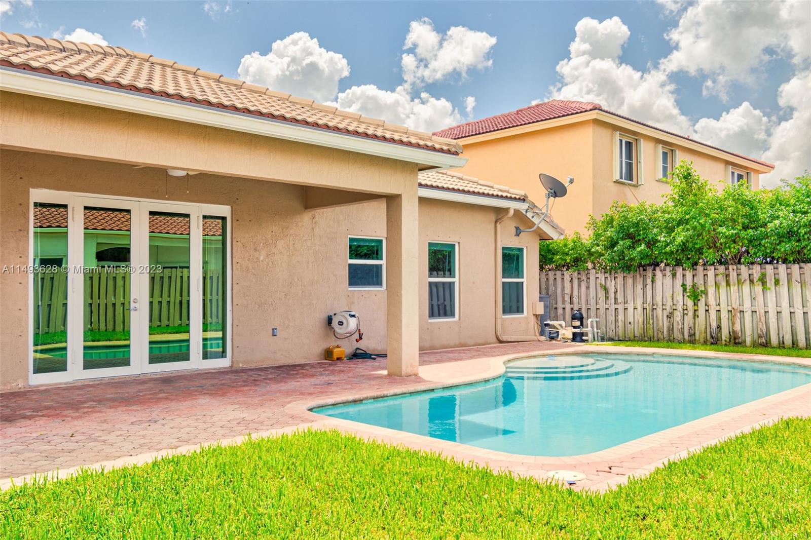 Beautifully updated open concept 4 bedroom, 2.5 bath pool home in gated community. Home boasts a triple split bedroom floor plan, luxury vinyl flooring throughout, remodeled master bathroom, Updated kitchen with large center island, 42 inch wood cabinets, stainless steel appliances, new refrigerator, updated secondary bathrooms, new water heater, new 5 ton Carrier A/C unit, and an indoor laundry room with new Samsung washer and dryer. French doors lead to covered outdoor patio and beautiful swimming pool. The home has hurricane impact windows and doors. A must see move in ready home!