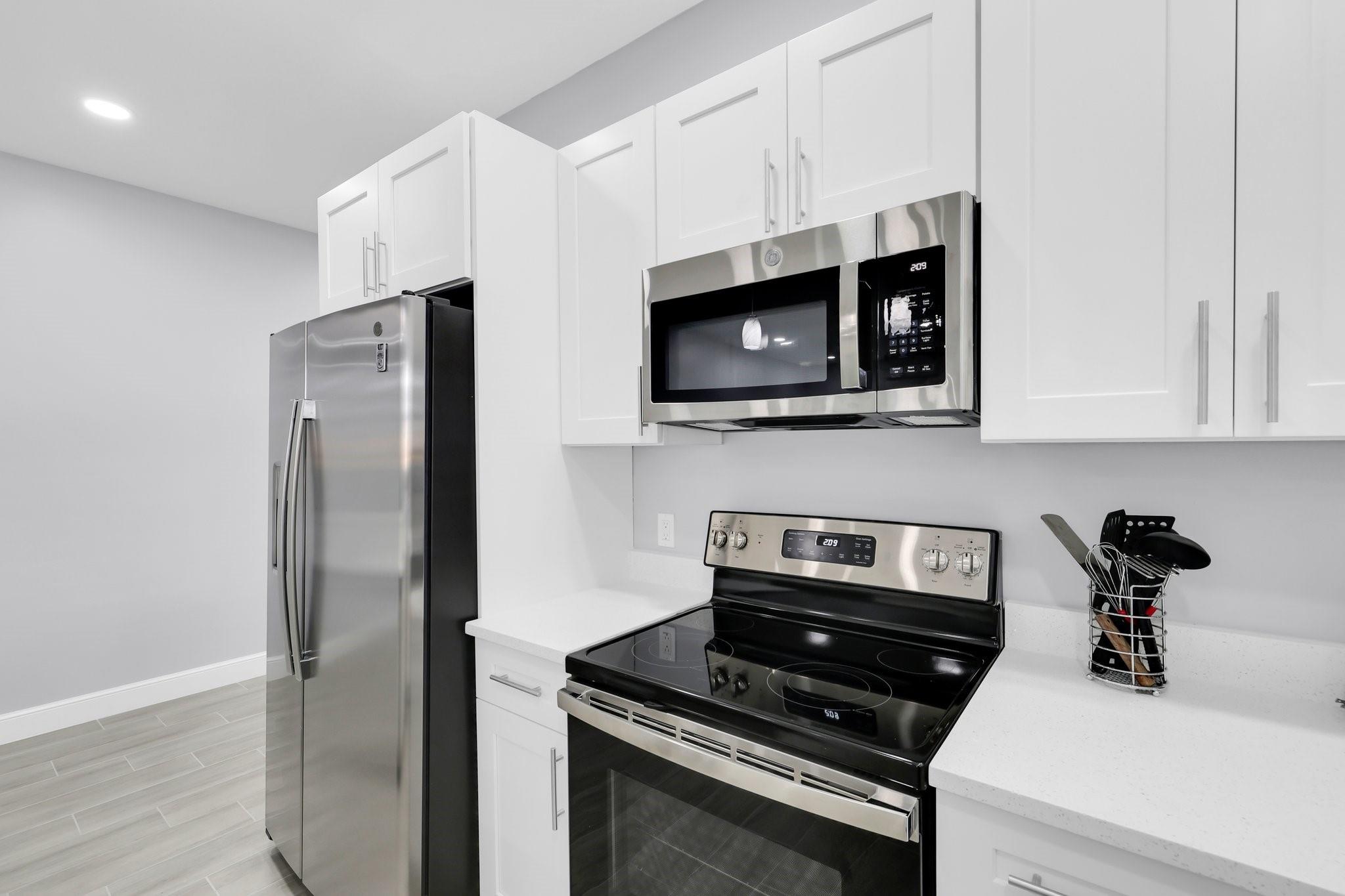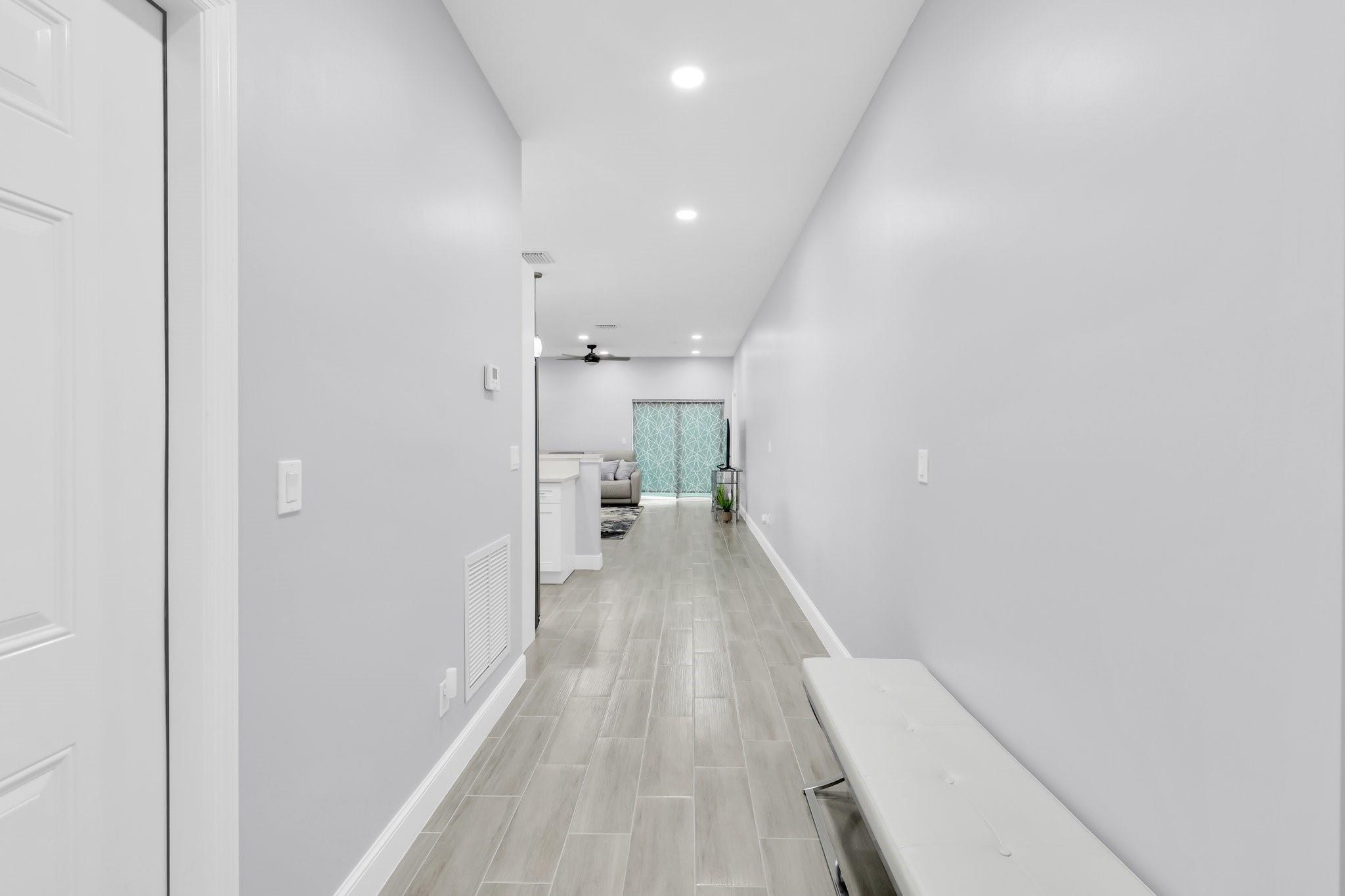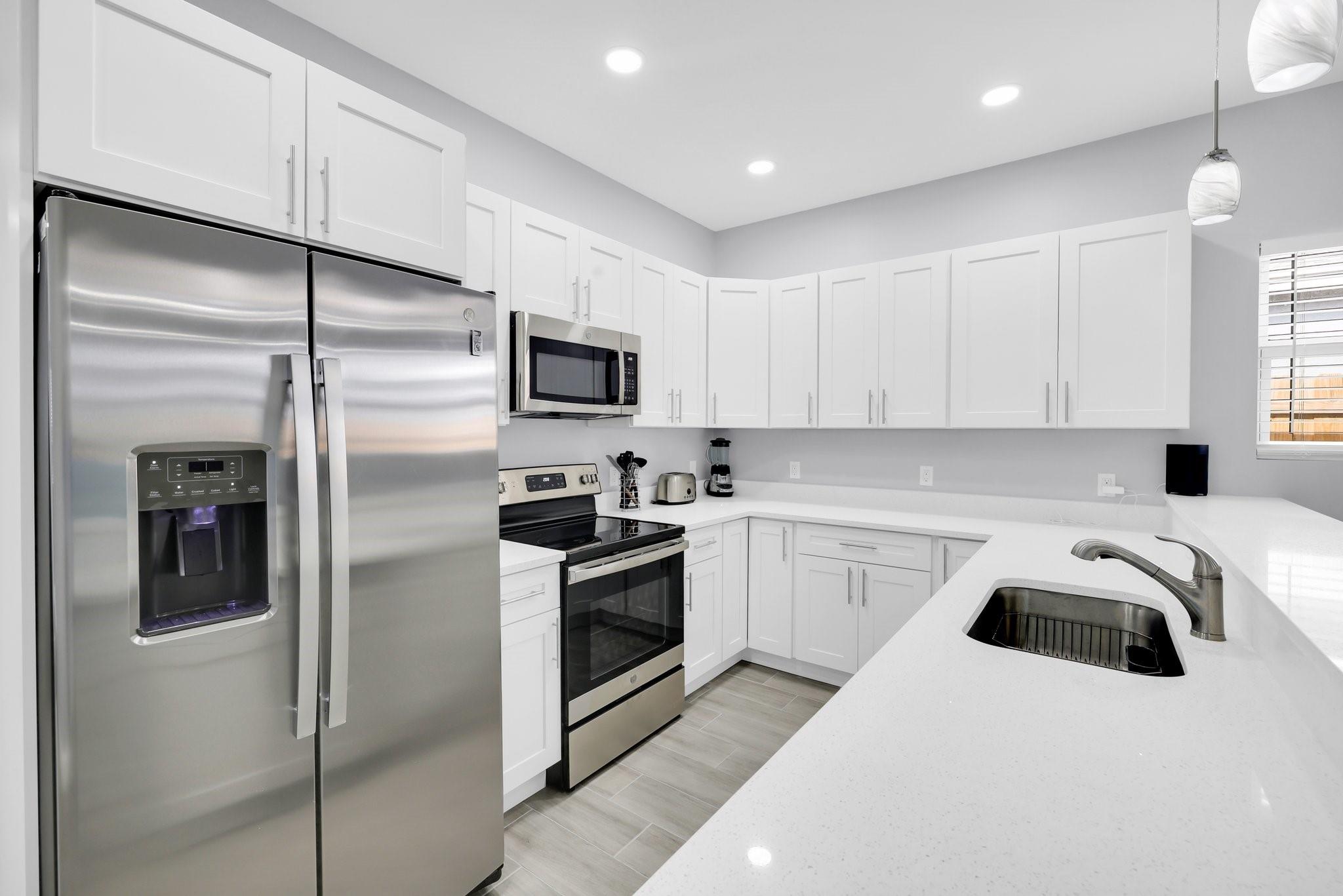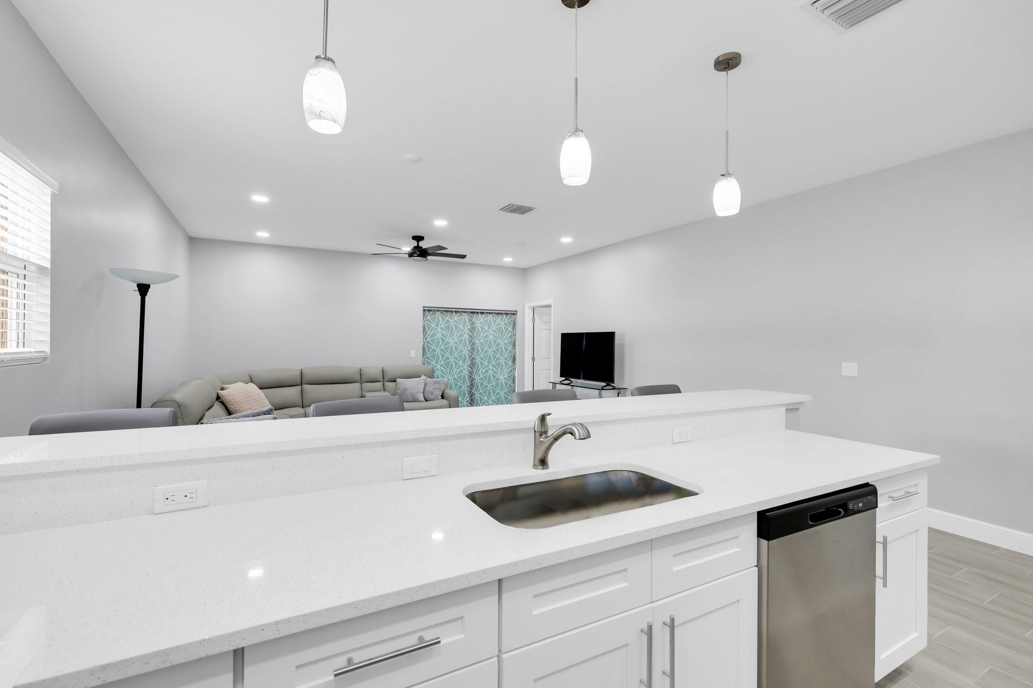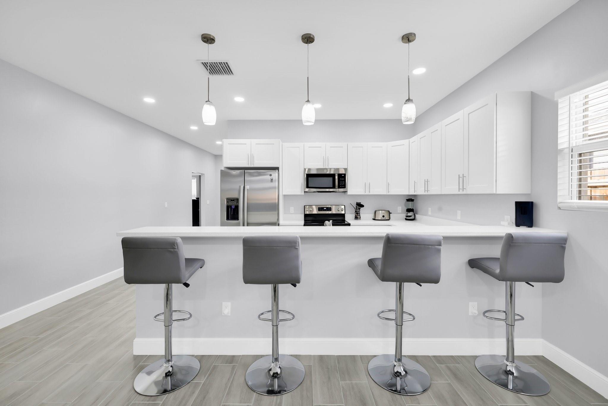 NEW CONSTRUCTION!! Beautiful 3 bedroom 2 bath home and 1 car garage with 9 foot volume ceilings.. Builders upgrades throughout. Features tile flooring throughout, custom all wood cabinets throughout, quartz counters, Architectural impact windows, upgrade lighting and plumbing fixtures, completely fenced yard, Paver driveway and much more. Excellent floorplan with split bedroom design, great room, beautiful kitchen w/stainless appliances, Kitchen ''bartop'' seating for at least 5, recessed lighting. Primary bedroom with private ensuite bathroom and walk in closet with built in cabinetry. Close to Beaches, shopping and restaurant's. Home is located in an Opportunity Zone as well for additional tax benefits.