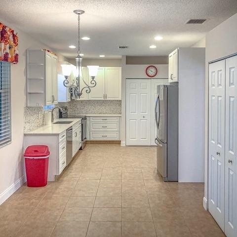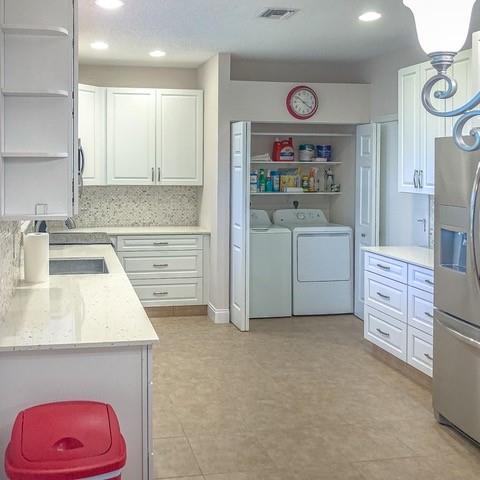 Beautiful "Move In Condition" 3 bedroom 2 bath home in the gated OASIS at Palm Aire. Nicely remodeled all through including the kitchen & baths. New ceramic floors throughout the entire house. 12' Vaulted ceilings in Great Room, 10' high tray ceilings in the formal Dining Room & Primary Bedroom. 9' ceilings everywhere else. Spacious Kitchen w/quartz c-tops & matched Frigidaire Gallery SS appliances. The large Primary bedroom has a HUGE custom fitted walk-in closet. Primary bath has a large shower, double vanity & huge closet. Concrete tile roof replaced 8 ago, AC is just 3 yrs old. The 24' screen porch faces a lush fenced backyard with NO OTHER HOUSES BEHIND, just sky. HOA provides lawn care, cable & internet service. Community pool & hot tub across the street. Can be rented right away.
