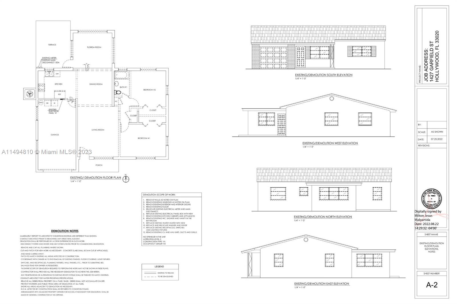 CASH - PERFECT for a Flip or Ready to remodel Airbnb project. Fully demolished interior of the home, plans to add bedroom and convert the garage to a living space with additional bathroom. Full remodeling needed: kitchen, AC, Mechanical, Plumbing, Electrical and Interior design. So its a blank Canvas for the Investor or future home owner. Seller is motivated for a cash offer. Prime location, close to the beach, shopping and entertainment centers. As well as new railway station is getting build to raise up the value for the suburbs of Hollywood. All plans by architect are paid for and ready to submit to the city.