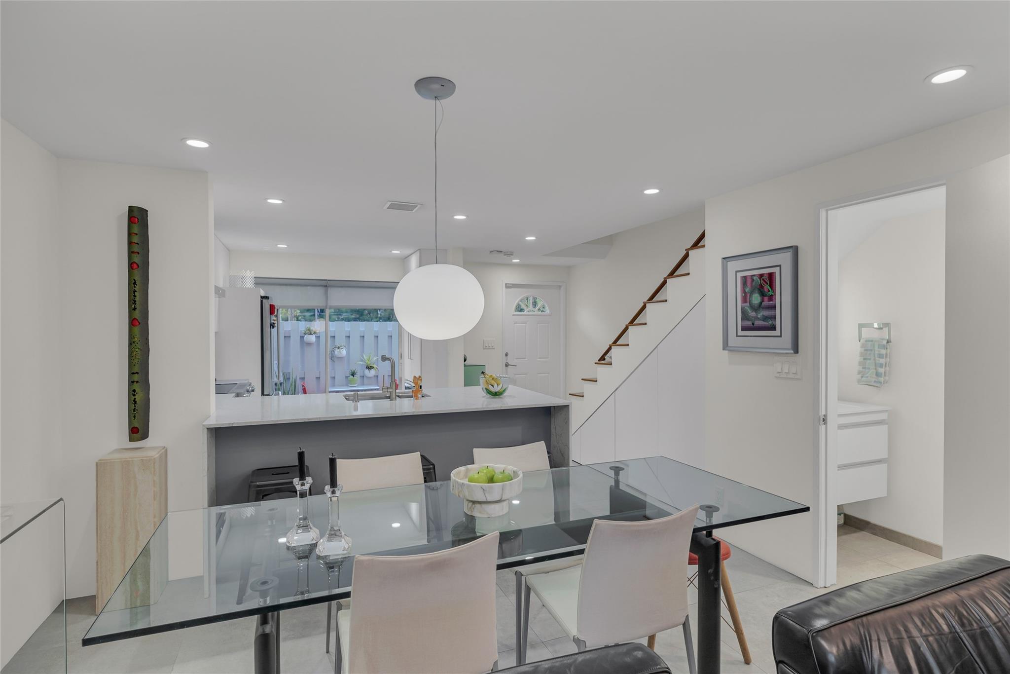 Gorgeous FEE SIMPLE Townhouse. Gated complex nestled between the neighborhoods of Las Olas & Wilton Manors. COMPLETELY RENOVATED & UPGRADED offering a perfect blend of MODERN & FUNCTIONAL design. CUSTOM Kitchen offers QUARTZ countertops w/a WATERFALL EDGE & Kitchen Aid STAINLESS STEEL appls. Stunning 29x29" Italian PORCELAIN TILES adorn the entire ground level. Ascend the stairs to discover the 2nd level, where engineered WOOD FLOORING extends throughout the bedrooms & entire upper level. NEWER & repositioned CONTEMPORARY bathroom featuring a floating double vanity. Custom cabinet drawers installed below the stairs. Step outside to TWO PRIVATE PATIOS that are fenced for privacy; perfect for entertaining guests, BBQ or an evening under the stars. Newer 2 Yr Old Condensing unit too! Pets OK!