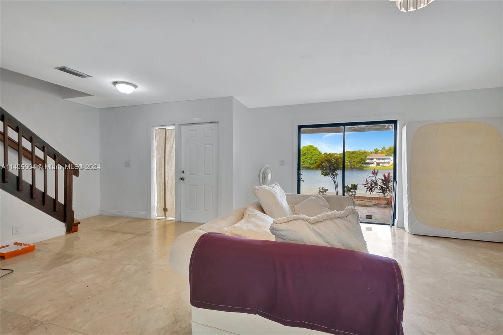 Remarkable Lake front Townhouse with stunning lake views! Solid marble 36" by 36" title flooring in main level. Real Brazilian Cherry throughout the entire 2nd story and staircase. (2) reserved parking spaces (#89 & #92). This is only one of a few units in the entire complex that is lake front also this cluster is CBS (block construction), while other buildings in the community are wood frame construction. Kitchen is completely updated. Quartz countertops, custom cabinetry, updated appliances, full size washer and dryer inside the unit. This could be the best price / best deal for a Townhouse in all of Dade County. Especially in such a good area like the location of this home. This will be a great buy for a first time home buyer or a investor alike. Nothing not to like about this property.