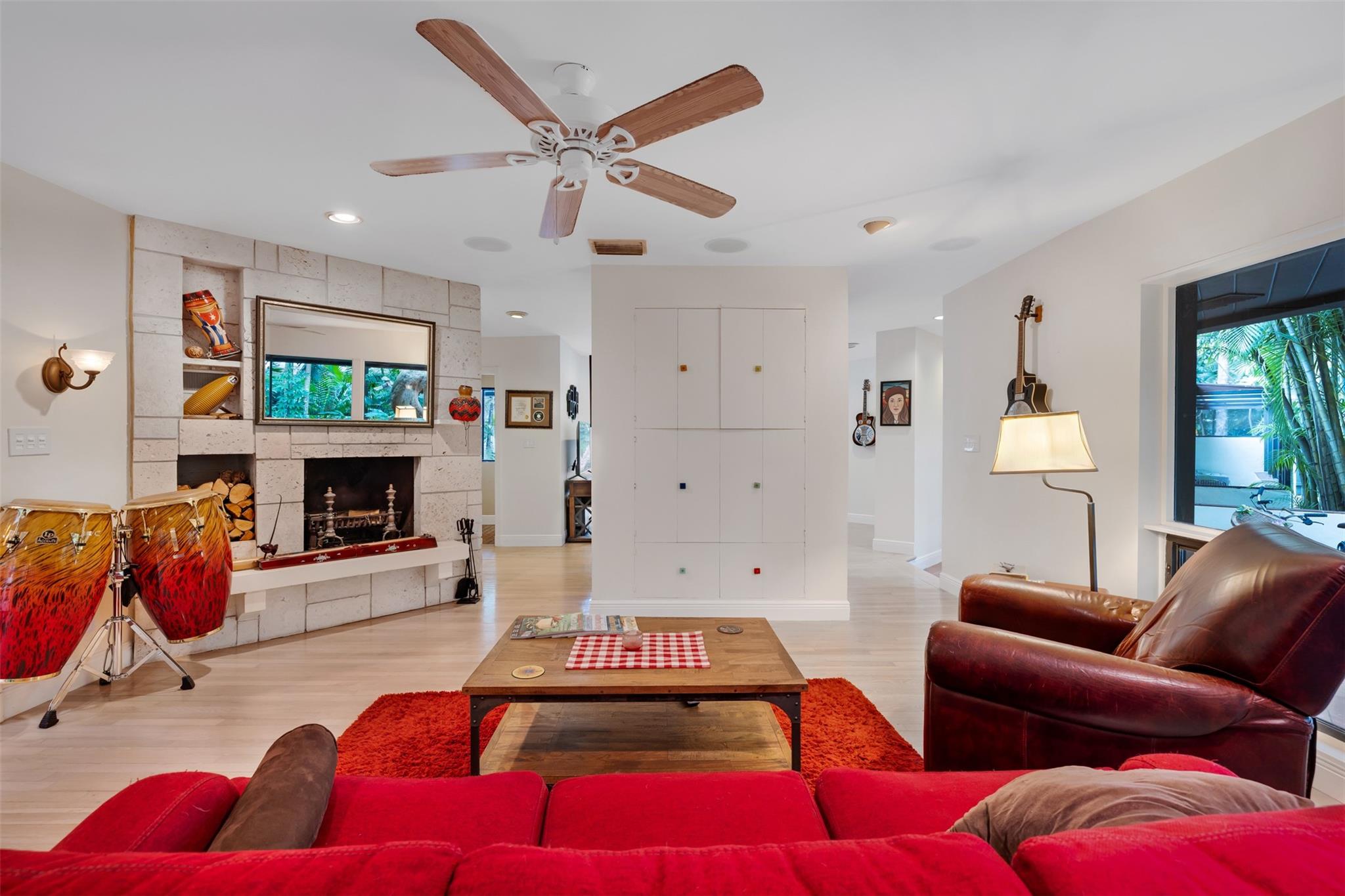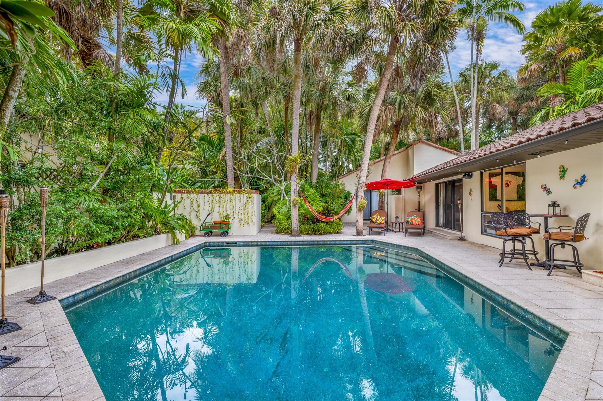 Peace and tranquility await you at this calming oasis in the wooded FLL Riverland hammock area. With fast and easy access to major highways this bright, spacious home feels like a tropical spa getaway, flooded with natural light from the oversized windows and skylights. A flow-through split bedroom floorplan includes space for a home office and gym giving this home potential for those looking to disengage, and features include 3 screened patios, Dade-County pine ceilings, coral fireplace, garden shed, lots of storage options, crystal fountain walk-in shower and a unique Kahalui Black Diamond Brite finished pool. But what makes this property so special is the incredibly lush foliage that surrounds the home allowing for complete privacy and the sense of serenity that you deserve.
