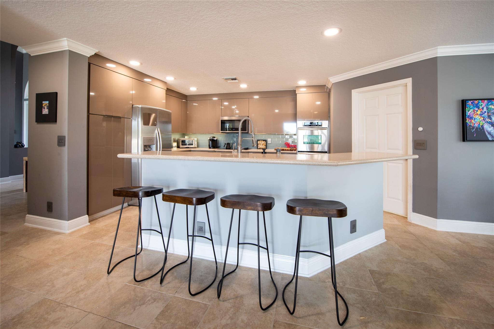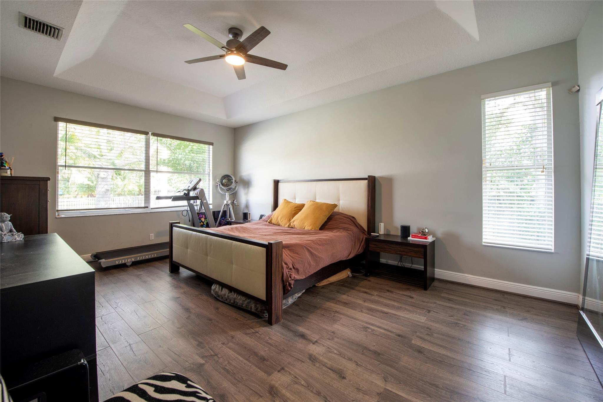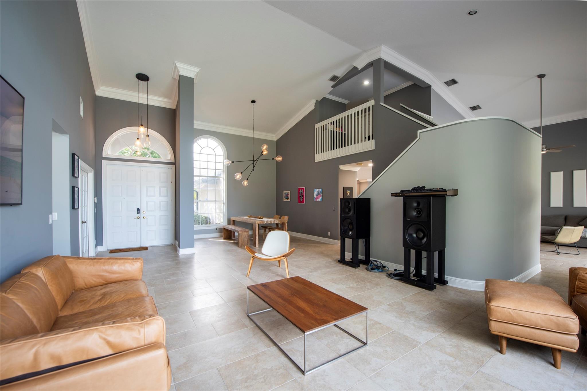 5BR/4BA BEAUTY ON FENCED WATERFRONT POINT LOT W/LONG LAKE VIEW & PRIVATE CUL DE SAC! NEW ROOF! Beautiful 2-story/split-level home with primary bedroom suite & one other bedroom/office downstairs. A very flexible floorplan, the Catalina model is rarely available. Large open layout family & living rooms with expansive offset tiles. Modern kitchen, stainless appliances w/double ovens, granite countertops highlight this updated home. An executive office (or additional bed) downstairs & full cabana bath adds versatility. The upstairs features 3 additional bedrooms and 2 more full baths & a loft/study, making for a perfect kid's retreat. All this coupled with an expansive fenced yard & oversized lakeside patio. Premium gated community with all "A" schools, lighted tennis, & playground.