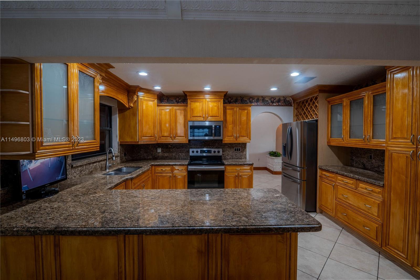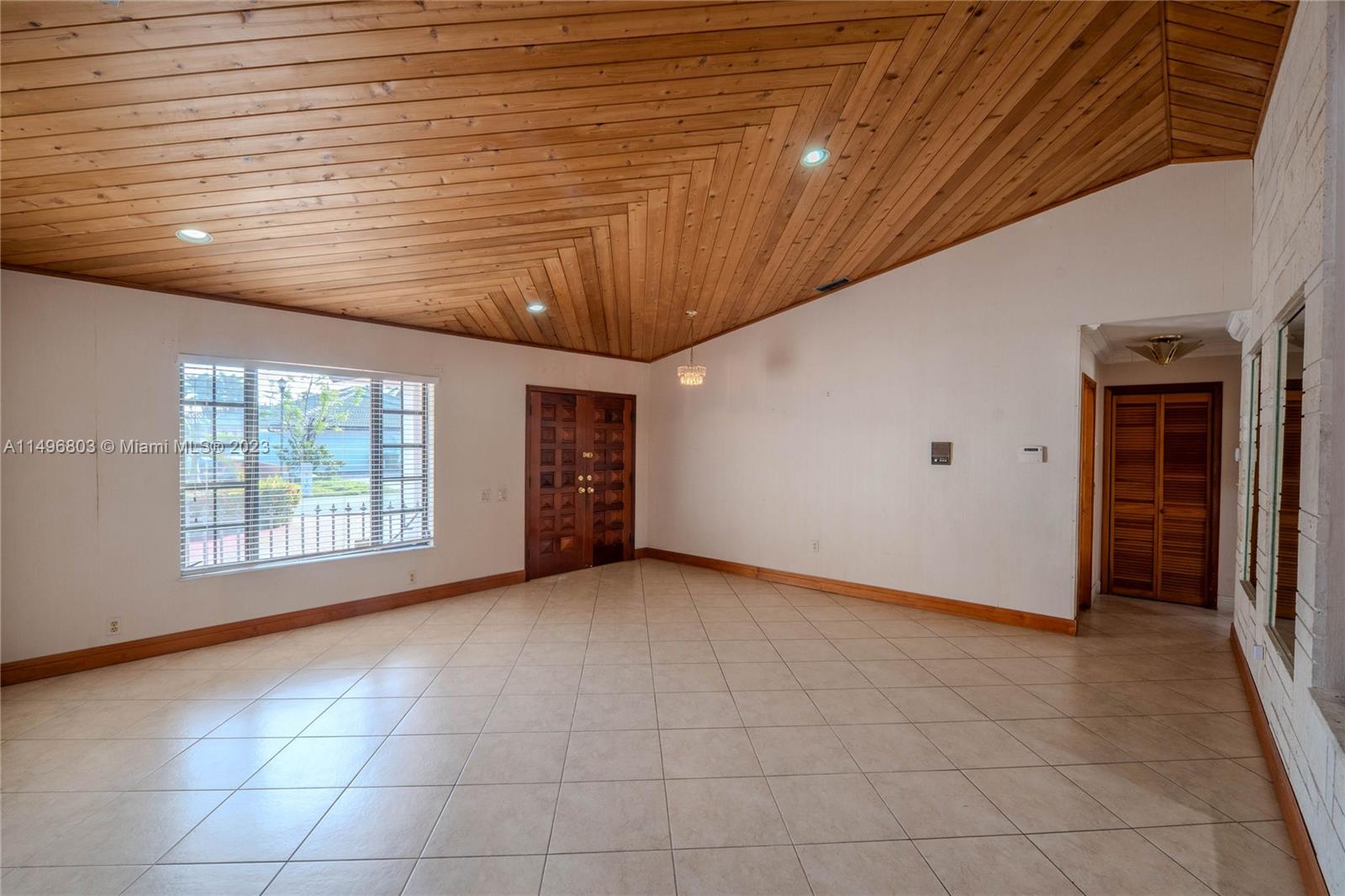 This spacious house is located in a unique pocket of homes in Hialeah built later than the surround neighborhood which offers larger lots and more modern design and appeal. Great floor plan with vaulted ceilings. Huge master bedroom and bath with walk in closet. Jack & Jill bathroom between 2 bedrooms for privacy with separate full bathroom for guests. Enclosed patio with impact windows across the back. Very large back patio with extended aluminum roof, a Gazebo and privacy wall on all sides. Oversized driveway to accommodate a lot of cars & covered parking for a single car and has a 2 car garage. Home is great for entertaining. Roof is 3 years old.