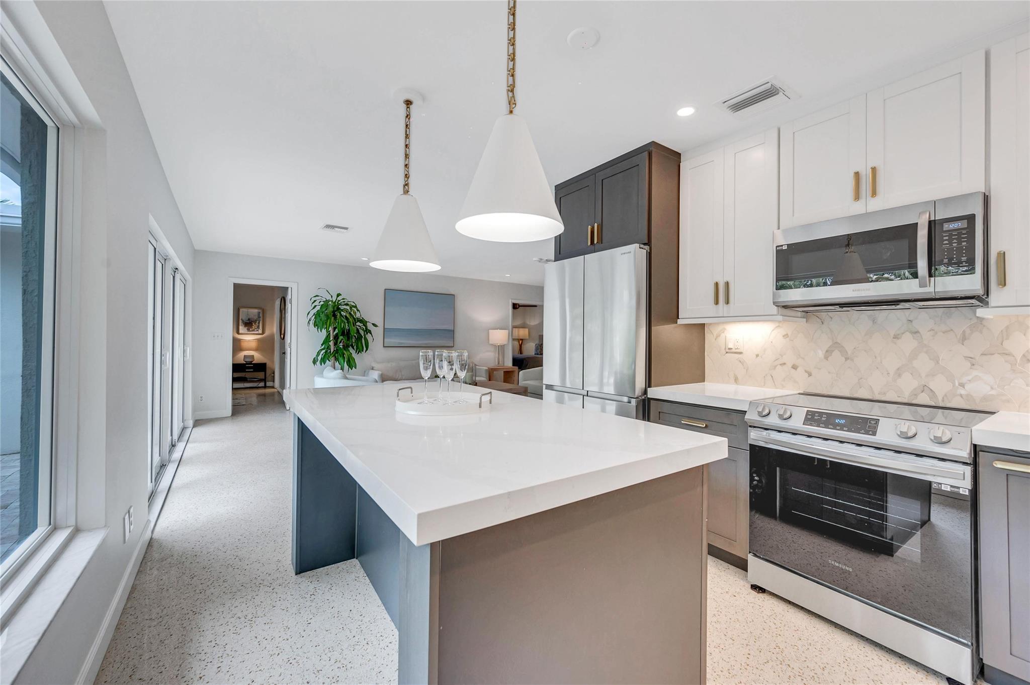 Stylish remodel just completed in November 2023 adding a third bedroom-bath suite, a complete new kitchen with all new appliances and center island, new master bath upgrades, new a/c, new laundry room with new washer and dryer and a restored 1-car garage. The thoughtfully-designed open kitchen has a wide, backyard-facing window. All three bedrooms have large closets and attached baths. This home features a spacious living and dining room with four sliding doors to a very private yard surrounding a sunny patio and pool with a wide sun shelf perfect for entertaining. A screened porch on the south side is perfect for evening cocktails and outdoor dining. This home is located in very walkable Victoria Highlands section of Victoria Park. Movies, parks and waterfront dining are close by.