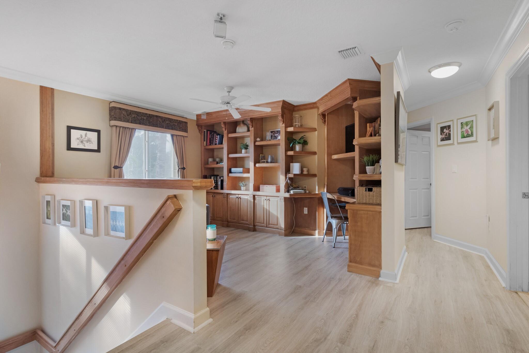 • Интерьер:BuiltinFeatures, BreakfastArea, DualSinks, EntranceFoyer, FirstFloorEntry, HighCeilings, LivingDiningRoom, MainLivingAreaEntryLevel, SplitBedrooms, SeparateShower, UpperLevelPrimary, WalkInClosets