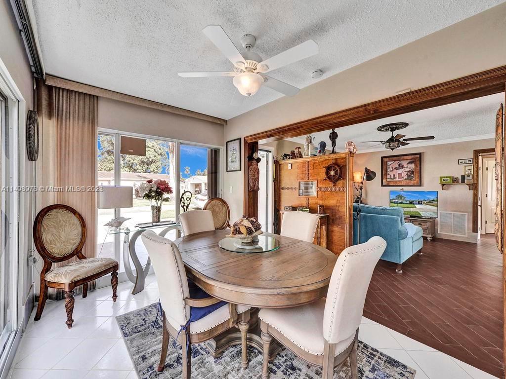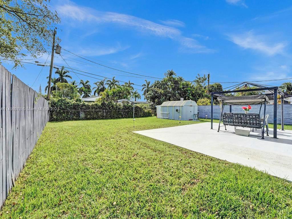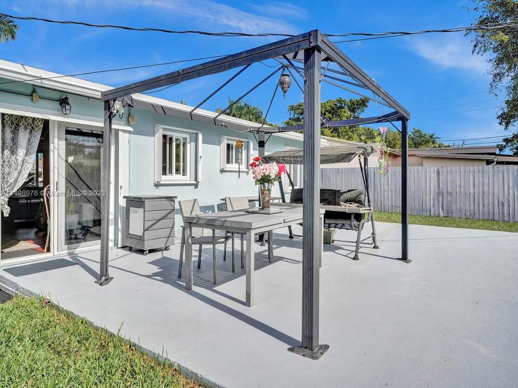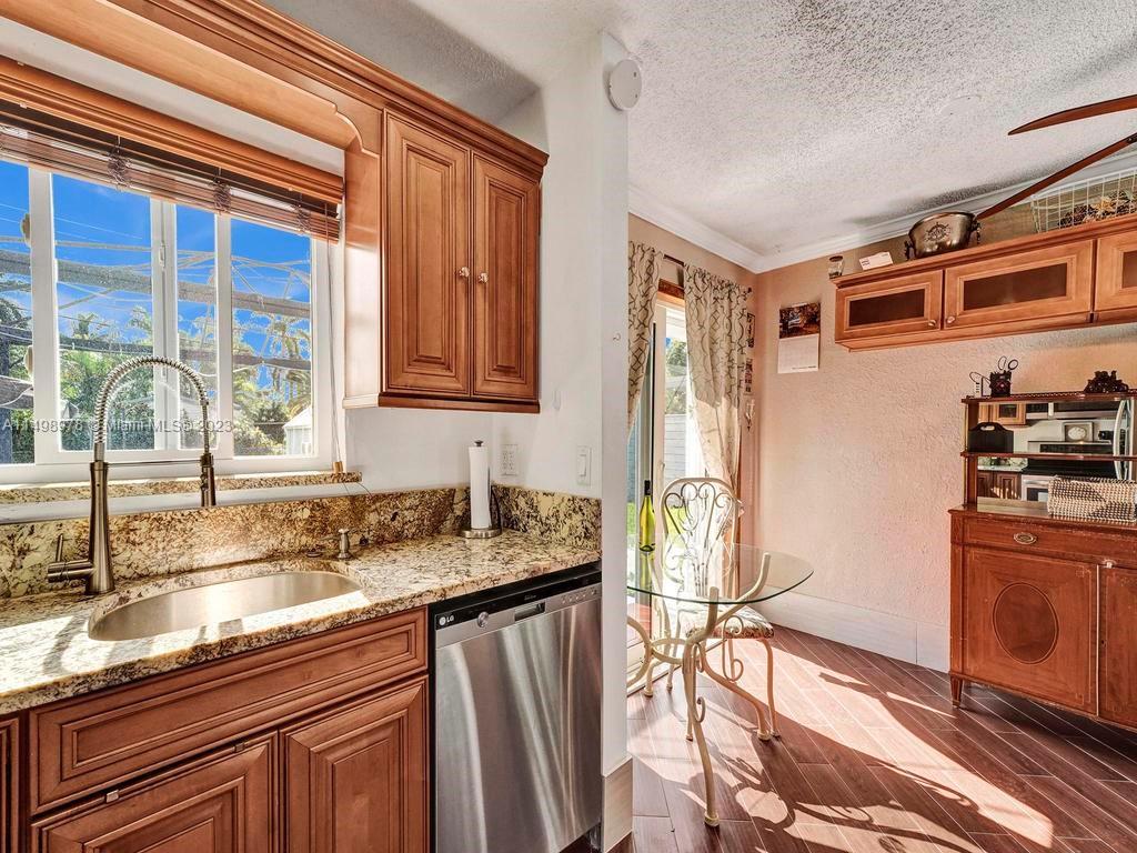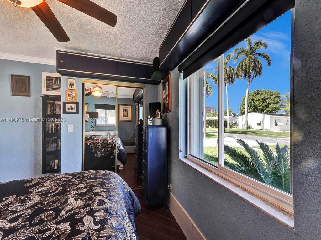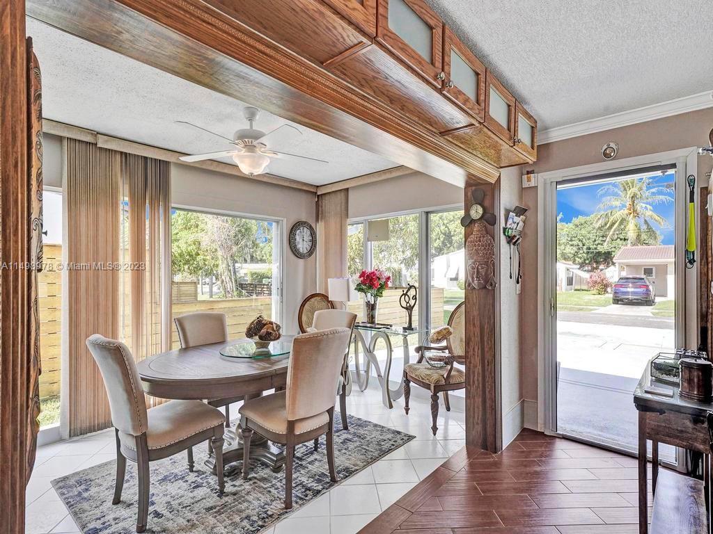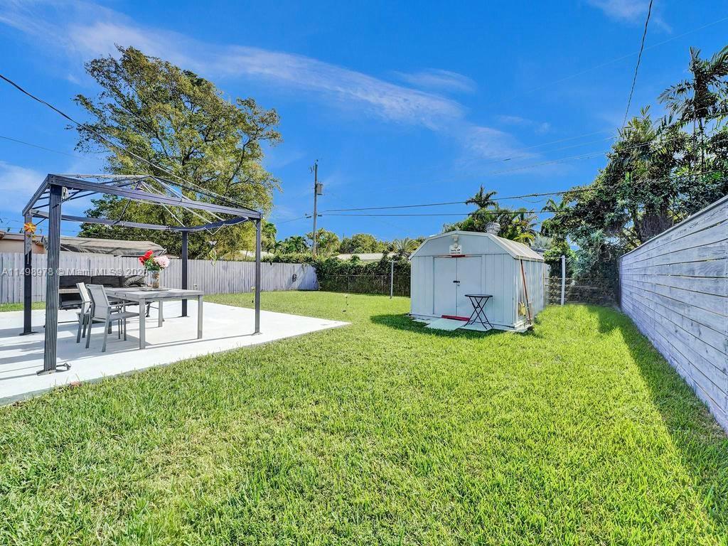Beautiful home in desireable NE Hallandale Beach. 2 bed/2 full baths, all tile floors, crown molding, full impact windows & doors, screen doors all around, new kitchen, wood cabinets, granite tops, pantry, SS appliances & a window over the sink. Dining/family room has 2 walls of impact sliding doors, brings lot's of natural light & nice breezes! Main bath brand new! Walk in closets with lighting. Modern window blinds, 5 ceiling fans. Large fenced yard, room for a pool, huge 29X22 patio with pergola (cover not shown in photos), 2 sheds, one 10X13 has air conditioning! Roof 7yrs old. Double wide driveway. Quiet neighborhood, friendly neighbors. Easy walk to shopping, dining, downtown Hollywood, Gulfstream Racing. Close to golf, tennis and Hollywood Broadwalk. Aventura mall 2 miles away.