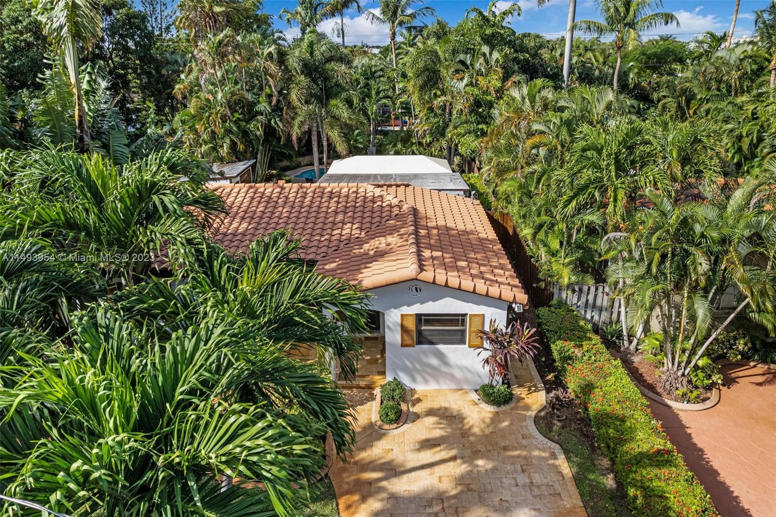 Discover a haven within a tropical paradise, on one of Poinsettia Heights' most beautiful streets. This home blends contemporary elegance with an enviable location in east Ft Lauderdale. Step into a modern kitchen with SS appliances and a generous bar that opens to the inviting living space. Throughout the home, the floors boast stunning travertine marble in rich Mediterranean hues, creating a warm ambiance. French doors beckon towards a Florida room, offering serene views of the expansive backyard adorned with lush landscaping that ensures complete privacy. The garden area is a delight, featuring a dazzling heated pool, a covered patio, and a shed equipped with electricity. Ideal for those who cherish tranquility at home and enjoy the beach and downtown, which are just a 5-min drive away.