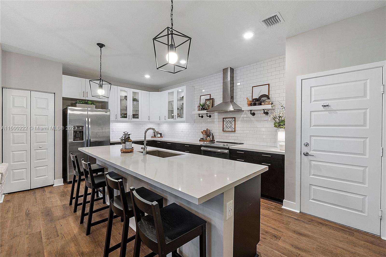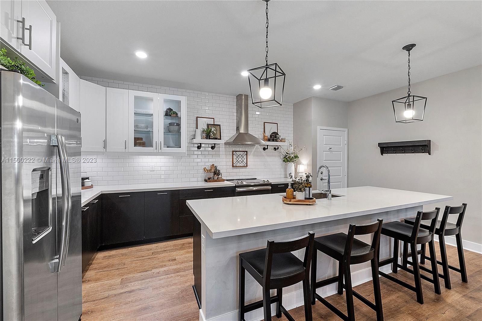 Located in the exclusive master planned community of Urbana, within walking distance of Downtown Doral, this 3 story Home blends contemporary modern style, designer upgrades and luxury all in one. The kitchen was tastefully redesigned offering a full wall backsplash, modern cabinets, quartz countertops and stainless-steel appliances and hood. Second floor has a primary suite with balcony, double walk-in closets, spacious bathroom with large shower, floating cabinet and water closet. Additionally on 2nd floor are 2 bedrooms, full bathroom and laundry. 3rd floor leads you to a spacious media/family room with powder room that boasts a covered terrace with outdoor kitchen and separate sky view terrace for endless hours of relaxing and entertainment. Grand Clubhouse with Resort Style Amenities.