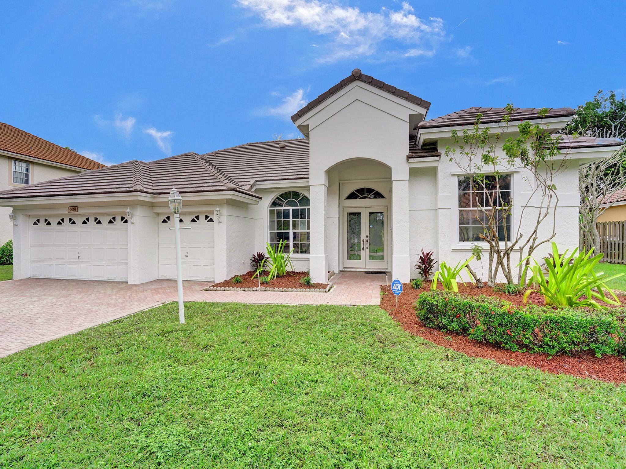 Brand New tile Roof recently completed in October 2023. Dramatic foyer entry with volume ceilings, formal living and dining room, big eat-in kitchen and family room. Large layout with split plan featuring 3 Bedrooms 2 Baths and 3 car garage on oversized 91 foot wide lot that backs to SW Ranches. Similar interior to the 4 Bedroom 3 Bath model w 3 car garage. Just painted inside & out, new carpet in bedrooms, newer 2019 AC. Master Suite with walk-in closet and generous sized bath, Bedrooms 2 & 3 both good sized. Big living areas, covered & screened patio, huge yard with plenty of room for a pool & playground. Great gated community with low HOA dues, all lots are a minimum of 90 feet wide. Great schools, A rated elementary school on the corner, close to shopping and easy access to I-75.