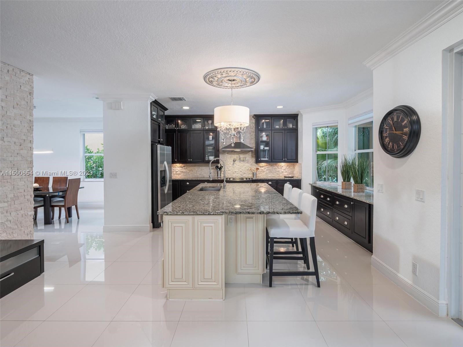 Welcome to this tastefully renovated home featuring five-bedroom, four-bathroom in the sought-after Savanna, Weston. This two-story boasts porcelain floors downstairs and laminated floors upstairs. Spacious master suite with a well-appointed ensuite and custom cabinetry in all the closets. The heart of the home is the updated kitchen featuring a large island, granite countertops, stainless steel appliances and contemporary cabinetry integrated into a spacious family room. Step outside to discover a saline pool surrounded by lush landscaping. Two-car garage & accordion shutters. New floors and baths remodeled (2019), AC ducts replaced (2019). The proximity to top-rated schools is a plus. This gated community offers resort-style amenities and security patrol 24/7. A Delightful living!