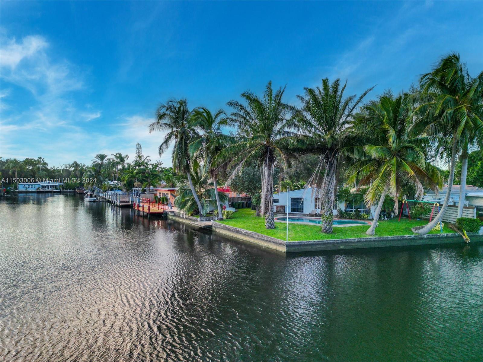 Wow, don't miss this Opportunity!! An Investors dream! Needs Full Remodeling and Renovations!! It is 4 Bedroom Waterfront Single Family House with a Pool Overlooking Intracoastal is Active on market Now! Perfect for Flipping! No - HOA, Airbnb welcome. Close to major roadways and central to all that you need in town. One room is being used for storage currently with the space for an additional office or bathroom build. The Biggest corner lot with a dock at the widest point of the canal which has ocean access. but there are Fixed Bridges. This home is ready for a new start with your magic touch. A short drive to Beaches and Parks. A well loved multi generational home, this home provides the perfect space for your Florida Oasis.