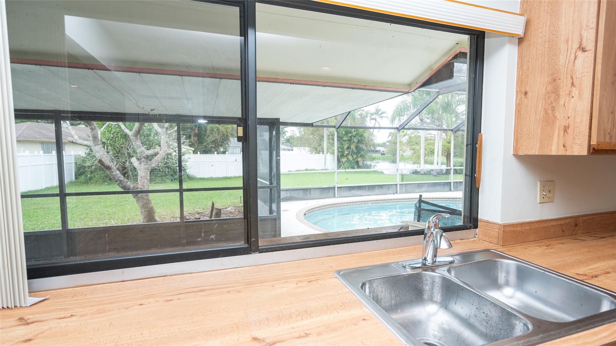 A MUST SEE! Highly desirable neighborhood with NO HOA, spacious 3/2 with 2 car garage & storm shutters. Waterfront, Pool home on over 11,000 sq ft. double lot. Open floor plan with huge backyard for sports & fabulous family entertaining, dining on a grand scale with enough room for an RV. Pet friendly community. Fenced on two sides for privacy. Situated in a quiet and majestic setting overlooking the pool, spacious patio and tranquil lake. With some TLC this sought-after location can be the home dreams are made of. Make your offer for this wonderful paradise to come home to daily. No appliances, Vacant, move in ready, professionally cleaned. Incredible potential for Air BnB with excellent income possibilities. Near great schools, parks, shopping & dining. All major highways minutes away.