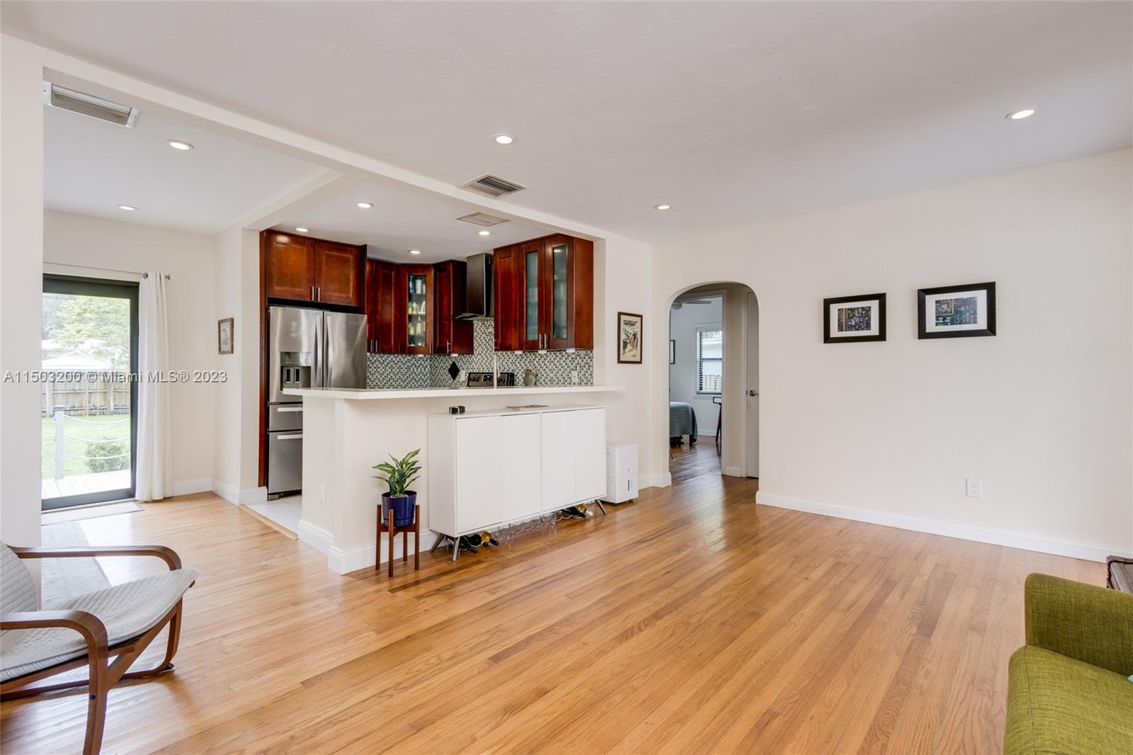 This meticulously maintained property boasts three bedrooms and two full bathrooms. It features a circular driveway and a spacious backyard, perfect for entertaining guests or even adding a pool. The kitchen and bathrooms have been tastefully updated, while the original wood floors have been beautifully restored. Cozy up by the wood-burning fireplace during colder months. The roof was replaced in 2020, and the impact windows and doors were installed in 2019, ensuring both safety and energy efficiency. The air conditioner was also replaced in 2019, and a tankless hot water heater was added in 2021. Conveniently located near downtown Hollywood and the renowned Hollywood Beach and Broadwalk, this property offers both comfort and accessibility.