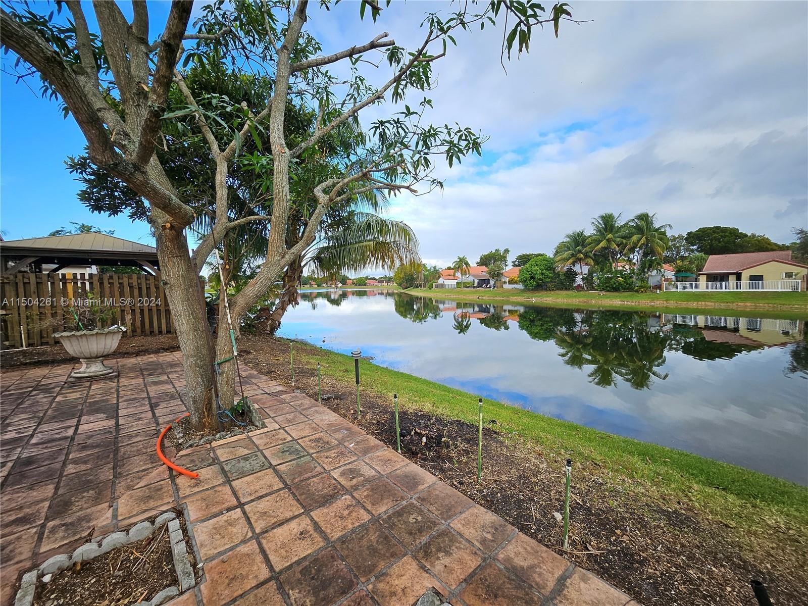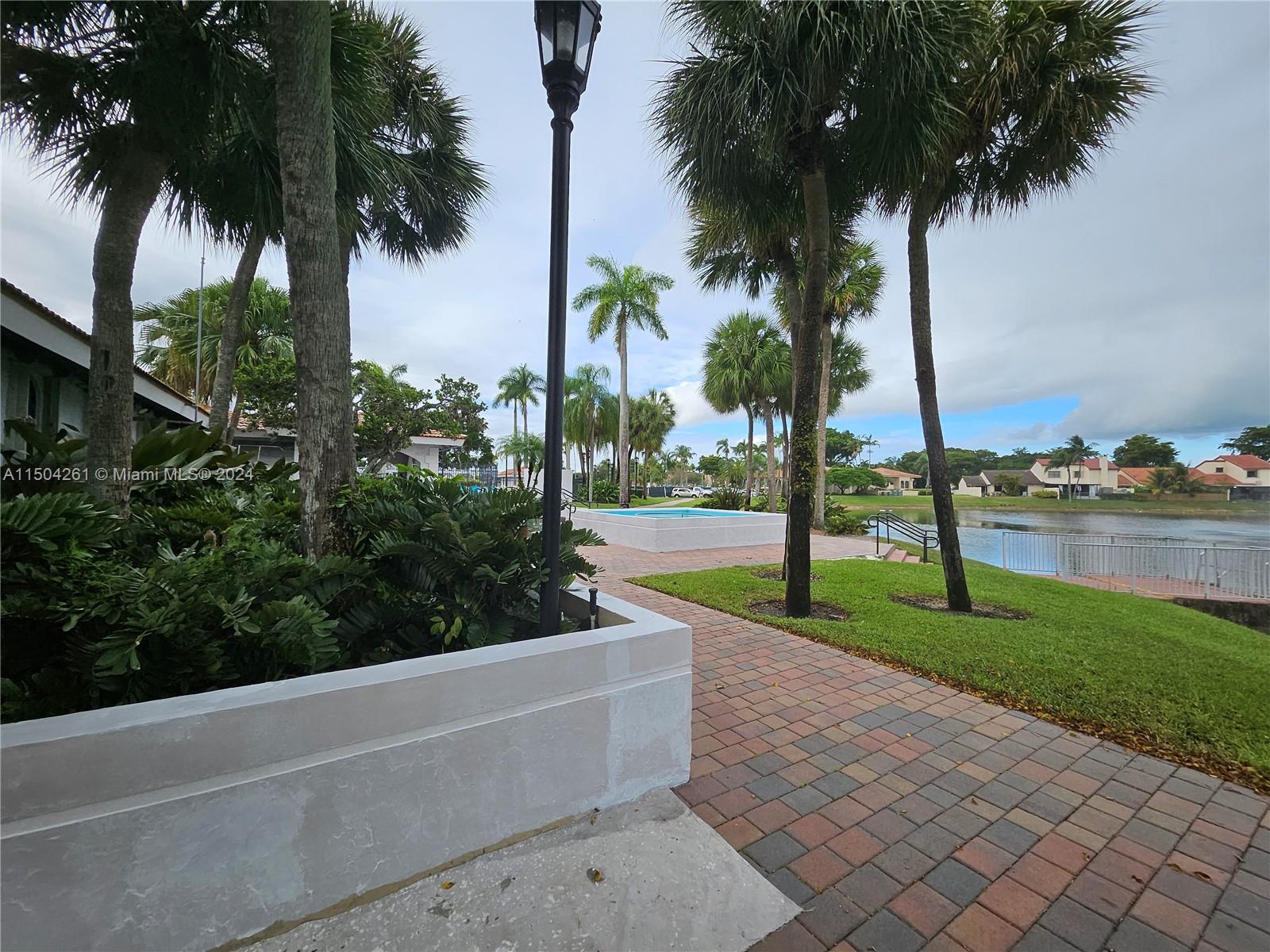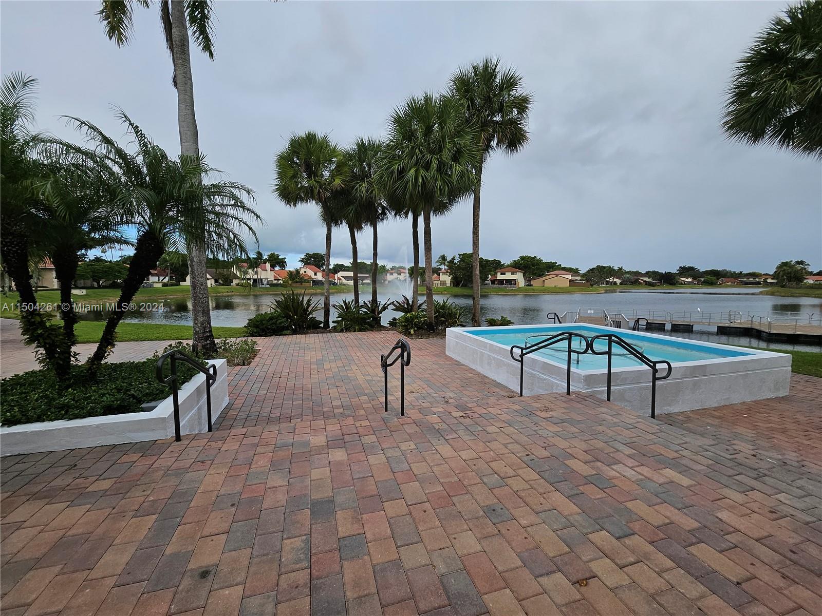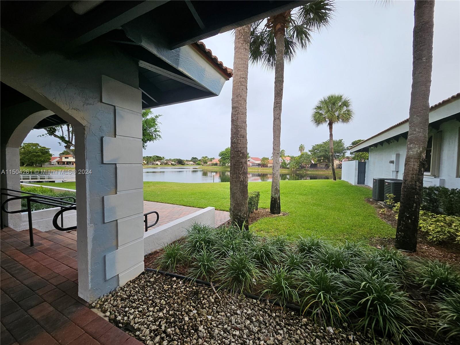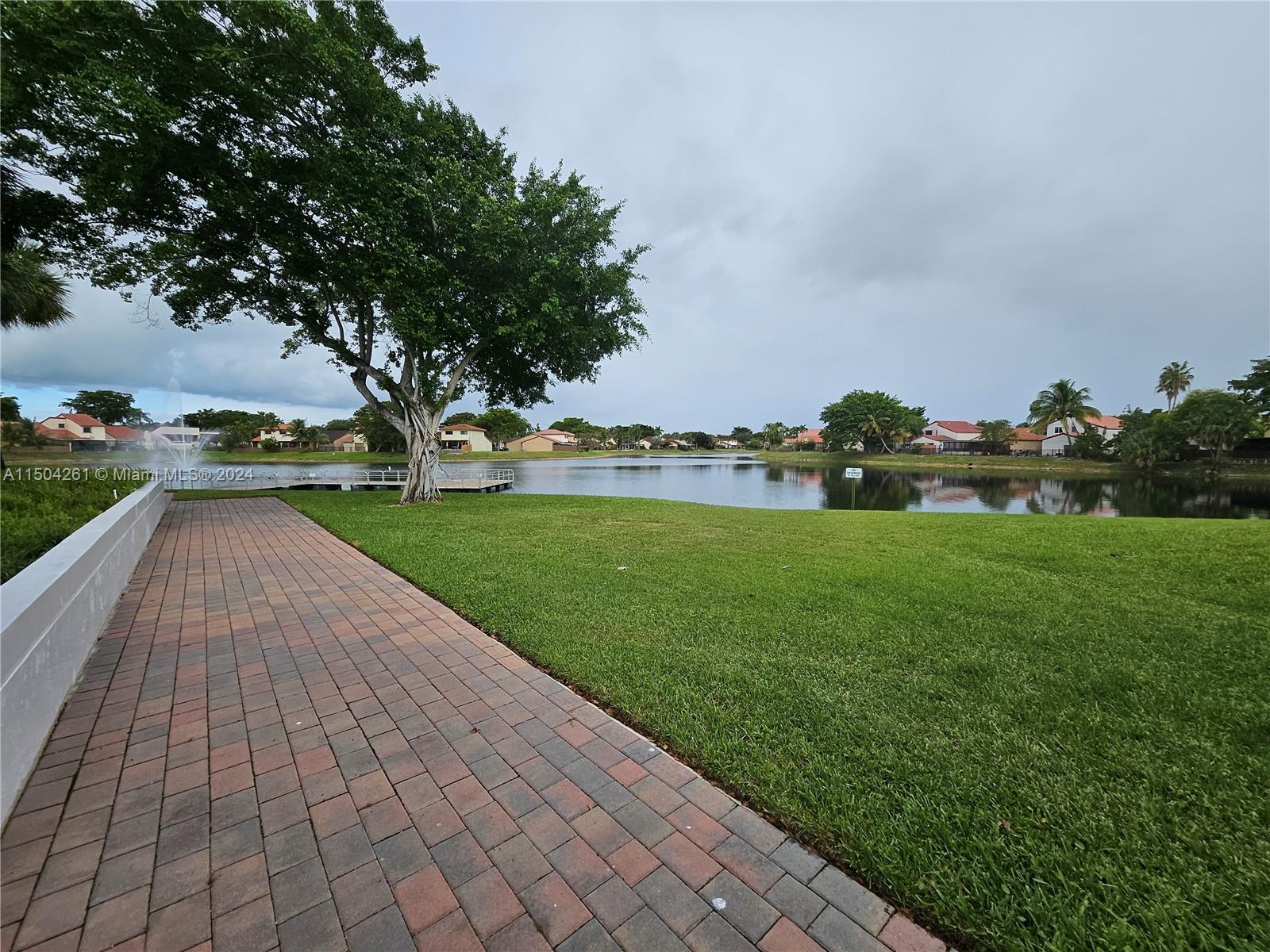 enjoy this peaceful lake front view in quiet neighborhood , featuring 2 bedrooms , 2 baths, hurricane shutters, garage and extra parking, community pool, tennis courts, gym, gated community. one parking space garage available and 2 extra carport spaces in front of the house.