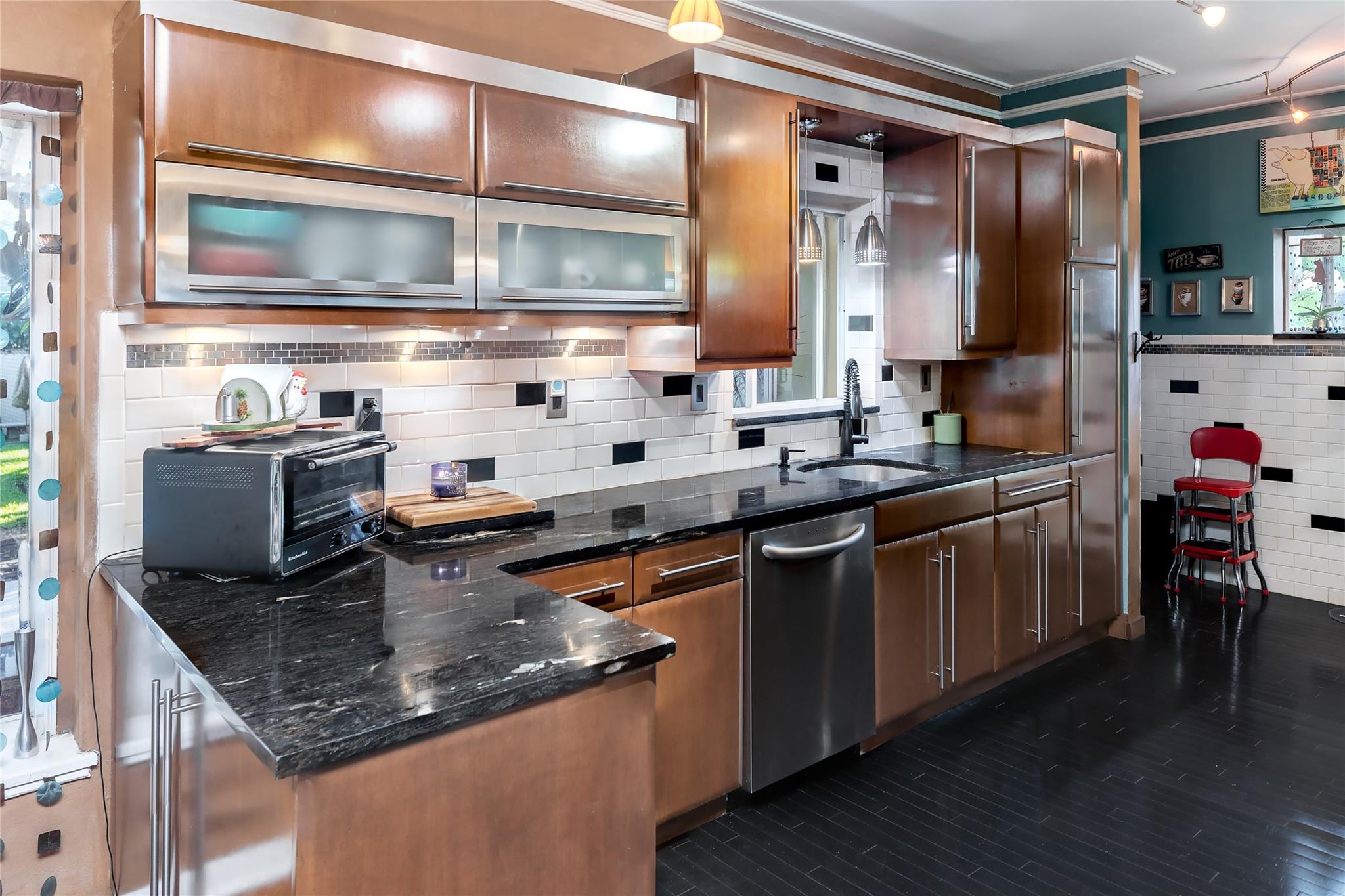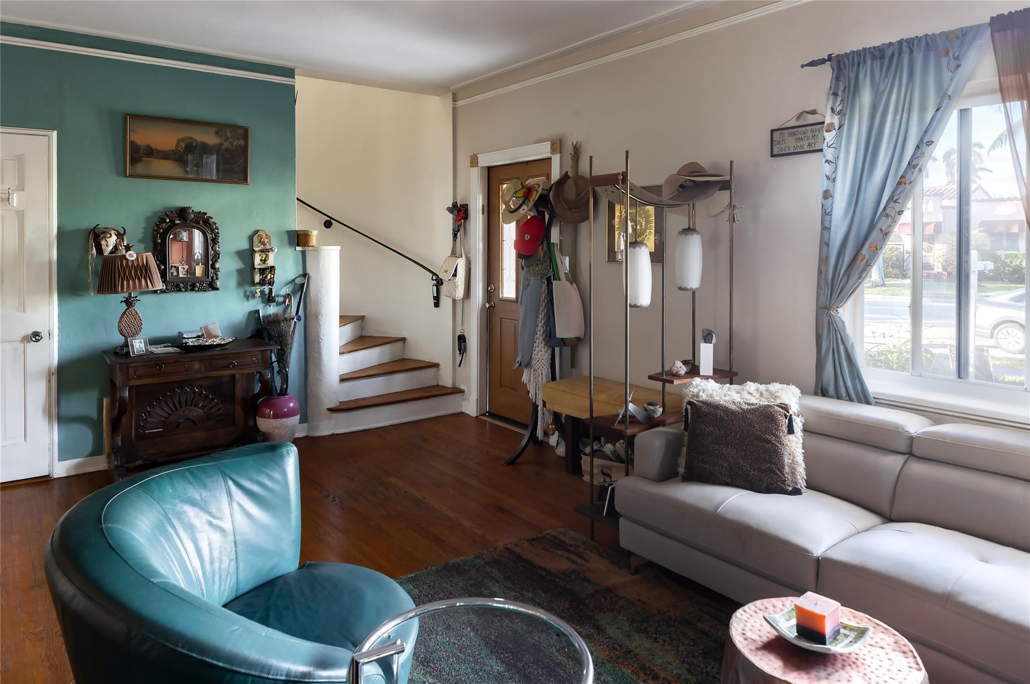 Charming 1930's masonry home with timeless appeal. This two story gem boasts a cozy fireplace, wood floors, and a well-designed open kitchen. Enjoy the convenience of an extra den and also an office. Upstairs, you will find all the bedrooms for a peaceful retreat The spacious lot, ideal for a pool and features a lovely covered patio providing ample room for entertaining, and ensuring memorable gatherings and outdoor enjoyment. 1 car garage with plenty of storage. Nestled on one of the best streets, this location offers both tranquility and quick access to the beach. A perfect blend of vintage elegance and modern amenities awaits you at 1032 Harrison St. You are also just minutes to restaurants, shopping, worship and airport.