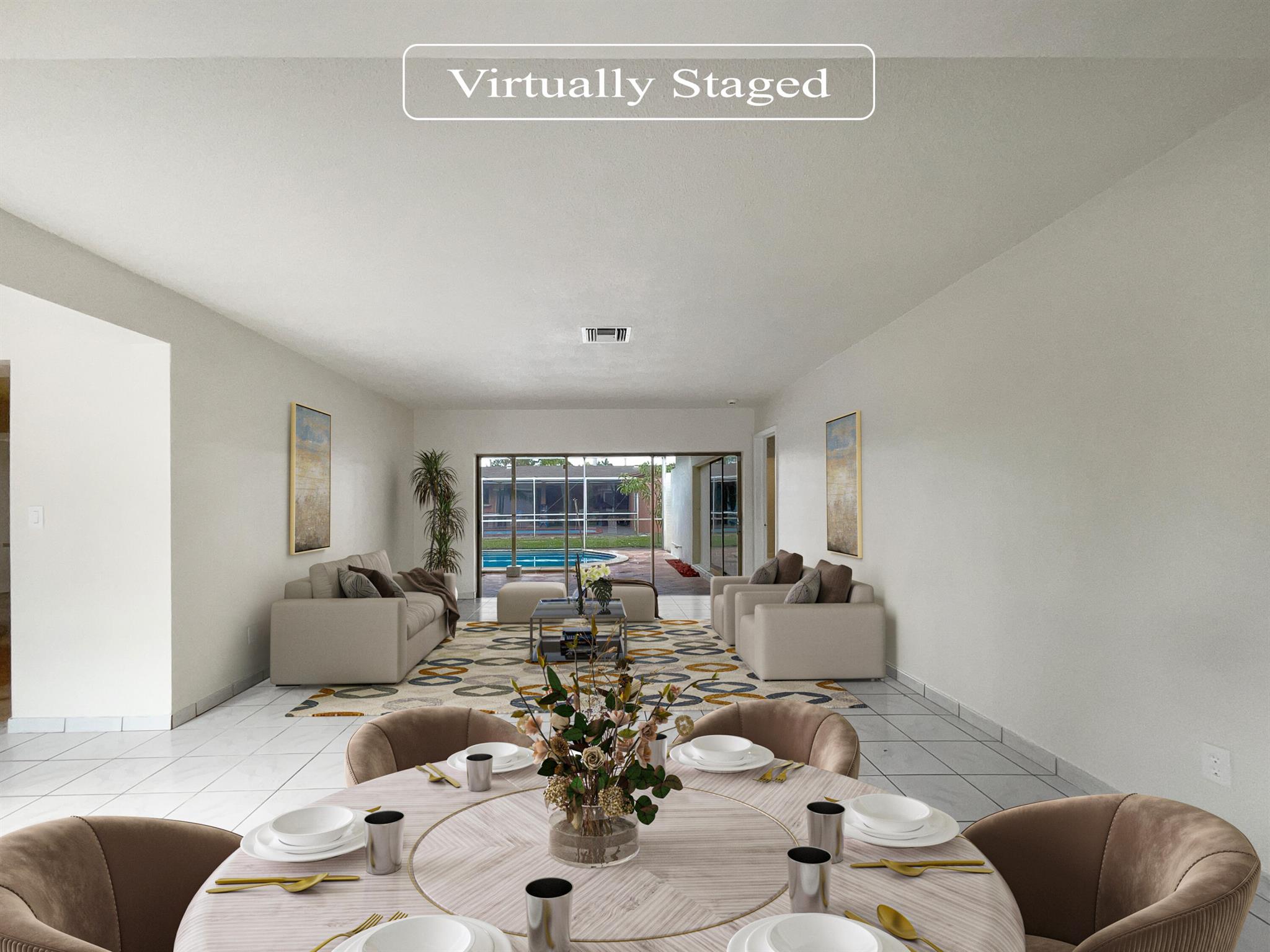 Welcome to this beautiful property that offers an inviting and serene living environment. The natural color palette throughout the home provides a calming ambiance, while the nice backsplash in the kitchen adds a touch of elegance. The master bedroom boasts a spacious walk-in closet, ensuring ample storage space. With additional rooms for flexible living, you have the freedom to create a personalized setup that meets your needs.The primary bathroom offers good under sink storage, keeping all your essentials organized and easily accessible. Enjoy the peace of mind provided by the fenced-in backyard, creating a safe space for outdoor. Indulge in the luxury of a private in-ground pool in the backyard. The covered sitting area in the backyard is ideal for unwinding and entertaining guests.