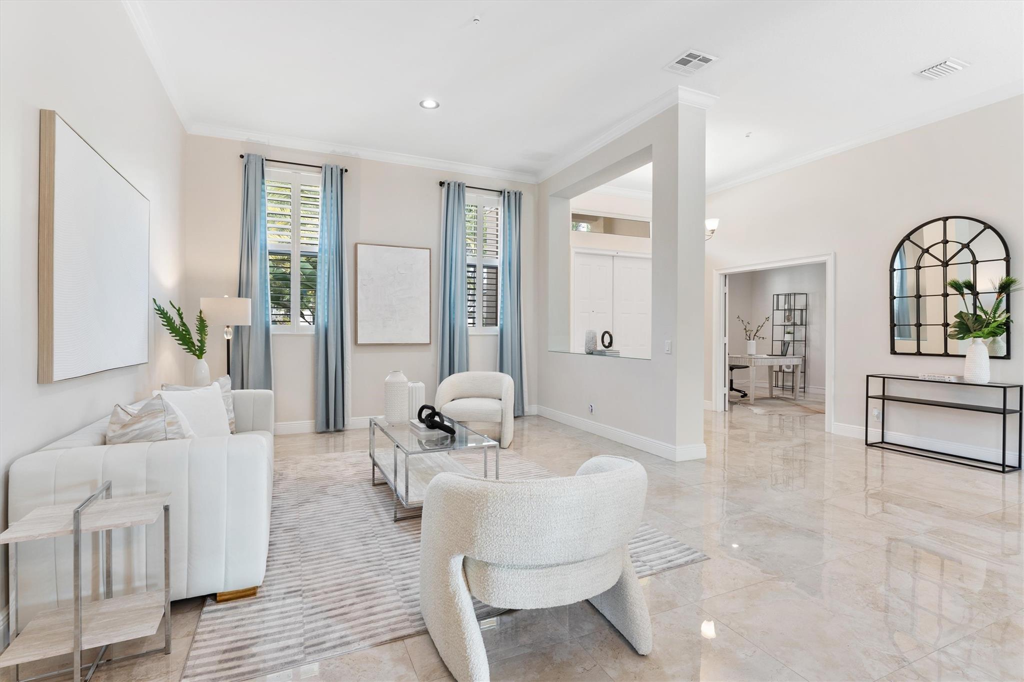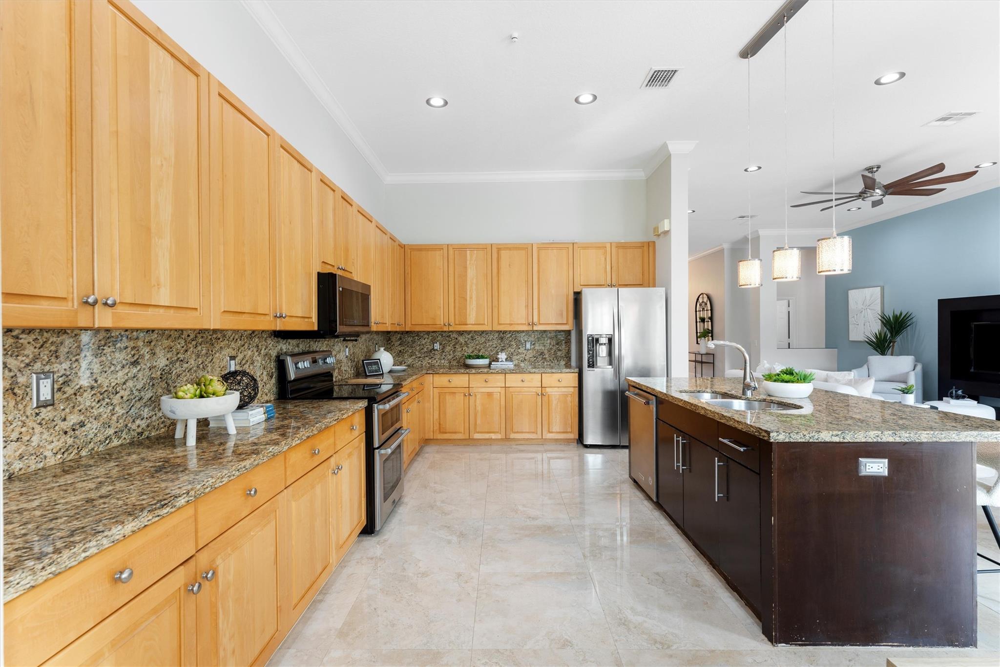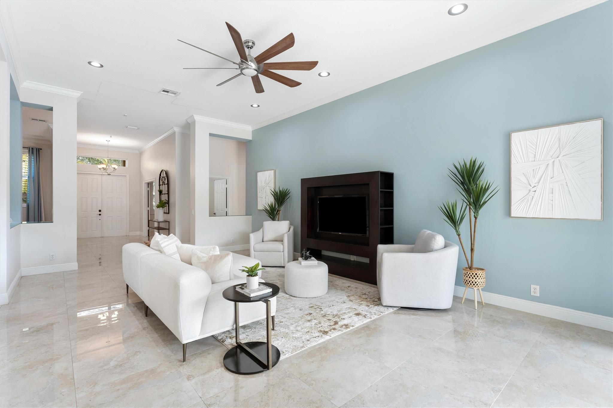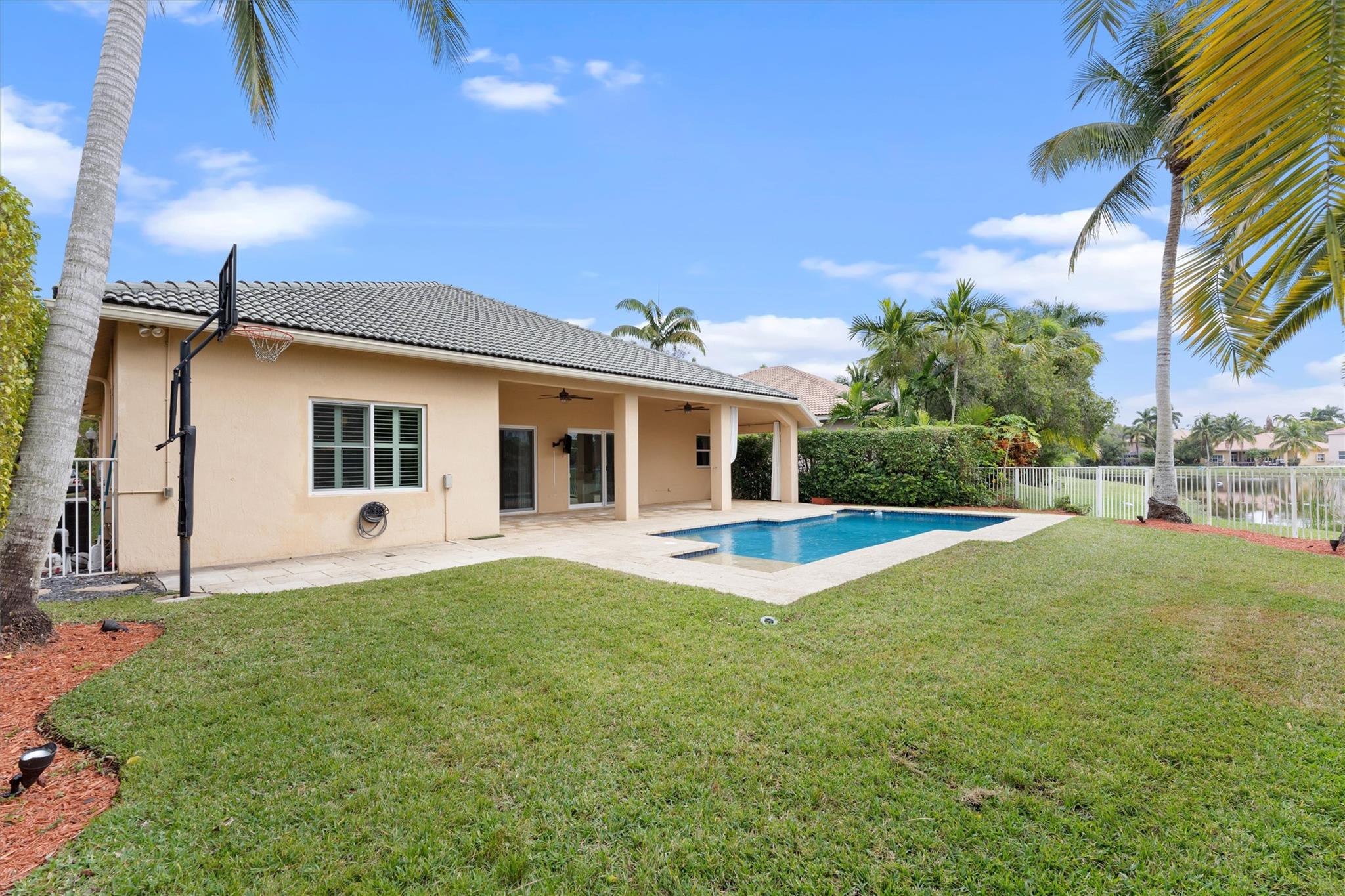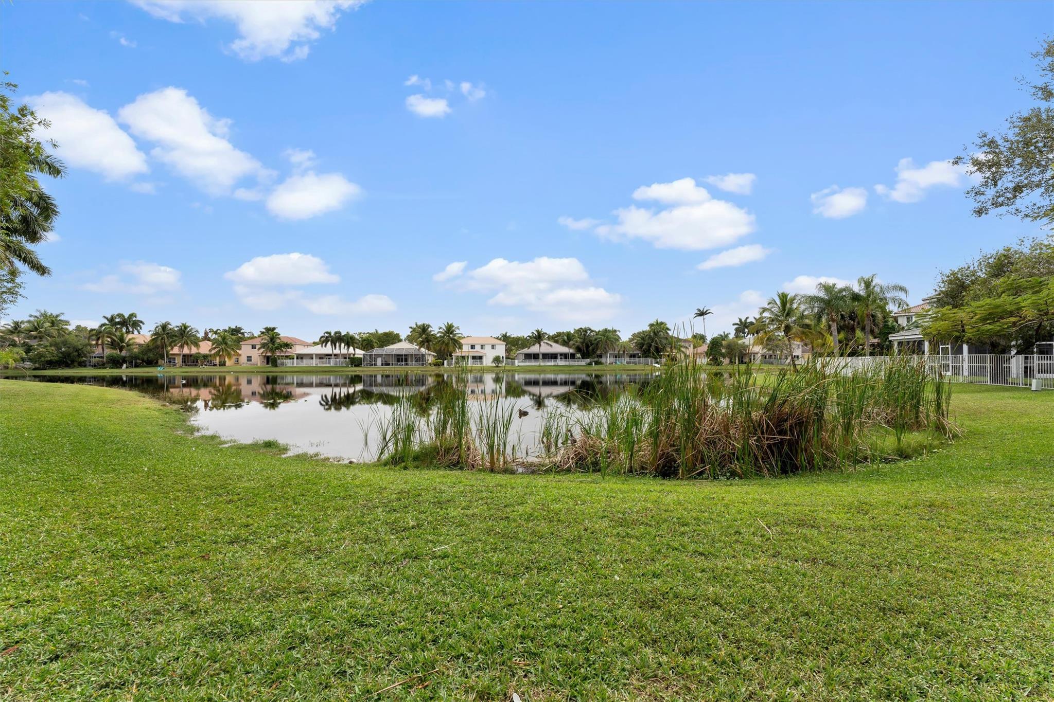 Absolutely stunning updated property that shows like a model. This large 4 bedroom 2.5 bath home sits on an oversized lakefront lot with over 11,625 SF of land offering lots of privacy. Newly installed porcelain tile plus new real wood floors in all bedrooms. Interior features Custom decorator touches through out with high volume ceilings and crown molding. Updated Bathrooms along with open Kitchen with large island, upgraded 42 inch cabinets and counters with stainless appliances. Exterior features spectacular heated pool and large patio area with gorgeous lake views. Huge custom covered area from builder, new impact windows and more! Community offers Guard gated, A+ schools, great recreation area, pools and amenities!