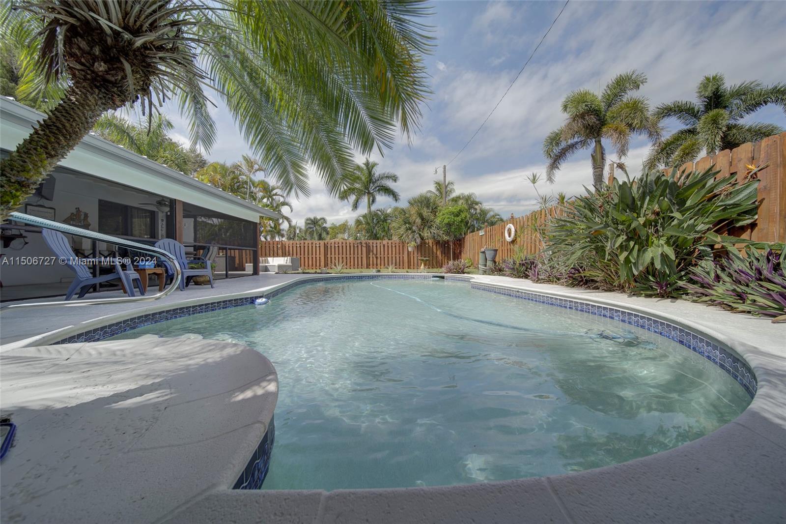 NO HOA! NO RENTAL RESTRICTIONS Absolutely Stunning Coral Ridge Home: Exceptionally Well-Maintained 2- Bedroom, 2-Bathroom Gem with Garage, Expansive Bedrooms, and a Spacious Eat-in Kitchen! The Master Suite features a Walk-in Closet and opens to a Deck overlooking a Gorgeous Landscaped Backyard, Enclosed by a Privacy Fence, and boasting a Glistening Diamond Brite Pool! This Residence has been recently enhanced with a brand-new Aluminum Roof, Impact Windows, and Doors. Plus, it's conveniently located near the Beach and I-95. Not to mention the bonus of a new water line from the Road to the House and elegant crown molding throug