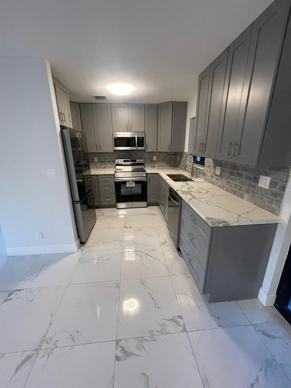 Immerse yourself in the epitome of modern luxury with this fully renovated 3/2 + laundry room home in Pompano Beach. With recent building inspections passed and every aspect of the house featuring brand new materials, you can be confident in the structural integrity and modernity of this property. Features: new rear vinyl fence, fresh sod & sprinkler system, 2023 roof, new kitchen with white granite counters, drywall with fresh paint, new AC and duct insulation, new ceilings and bathrooms, with new tiles laid throughout home. New steel appliances, From the washer and dryer to the refrigerator, dishwasher, range, and electric tank less water heater, almost forgot to mention all brand new impact windows & paver driveway. No HOA Own a truly exceptional home! Embrace the lifestyle you deserve