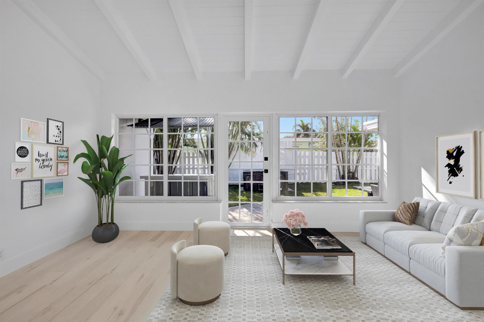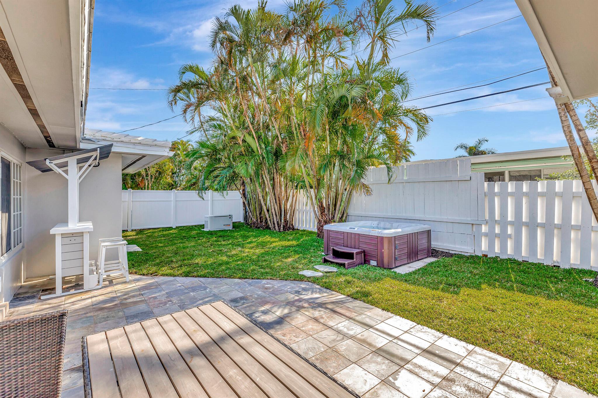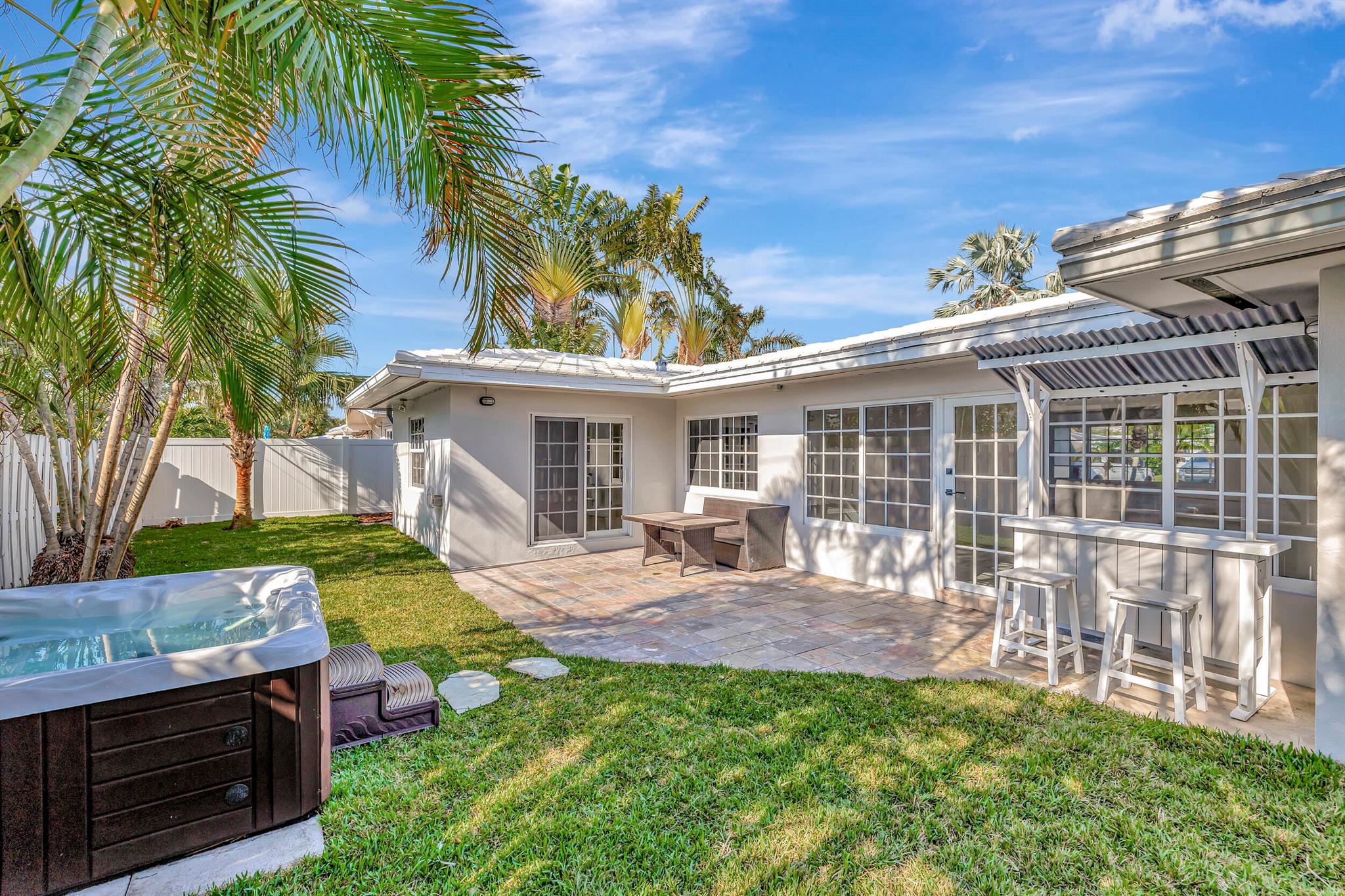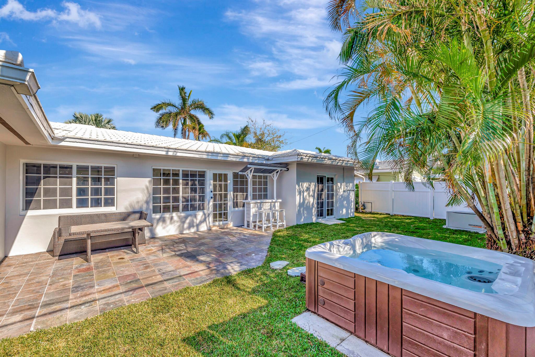 Welcome to this exquisite beachside retreat in Pompano Beach, Florida! This residence is a beach lover's dream, located just over a half-mile stroll from the sandy shores. The interior showcases beautiful porcelain wood-look tiles, creating a cohesive and stylish atmosphere. The exterior has been thoughtfully refinished and painted, enhancing the curb appeal. This stunning home boasts over 1900 sq. ft. of meticulously reimagined living space, featuring three bedrooms and two bathrooms. The coastal ambiance is enhanced by light and bright impact windows, providing a seamless connection to the outdoors. Enjoy the convenience of a whole house generator and indulge in the brand new Jacuzzi, creating a perfect oasis. (MORE)