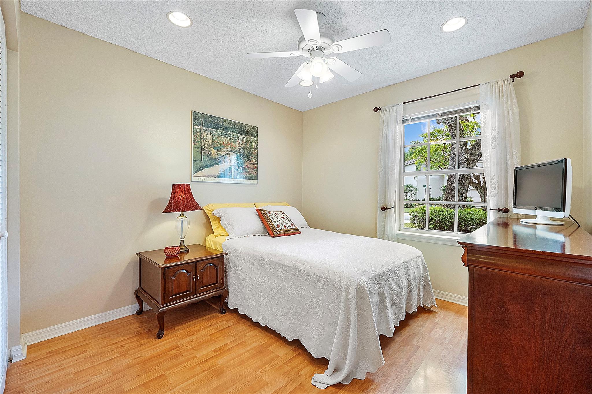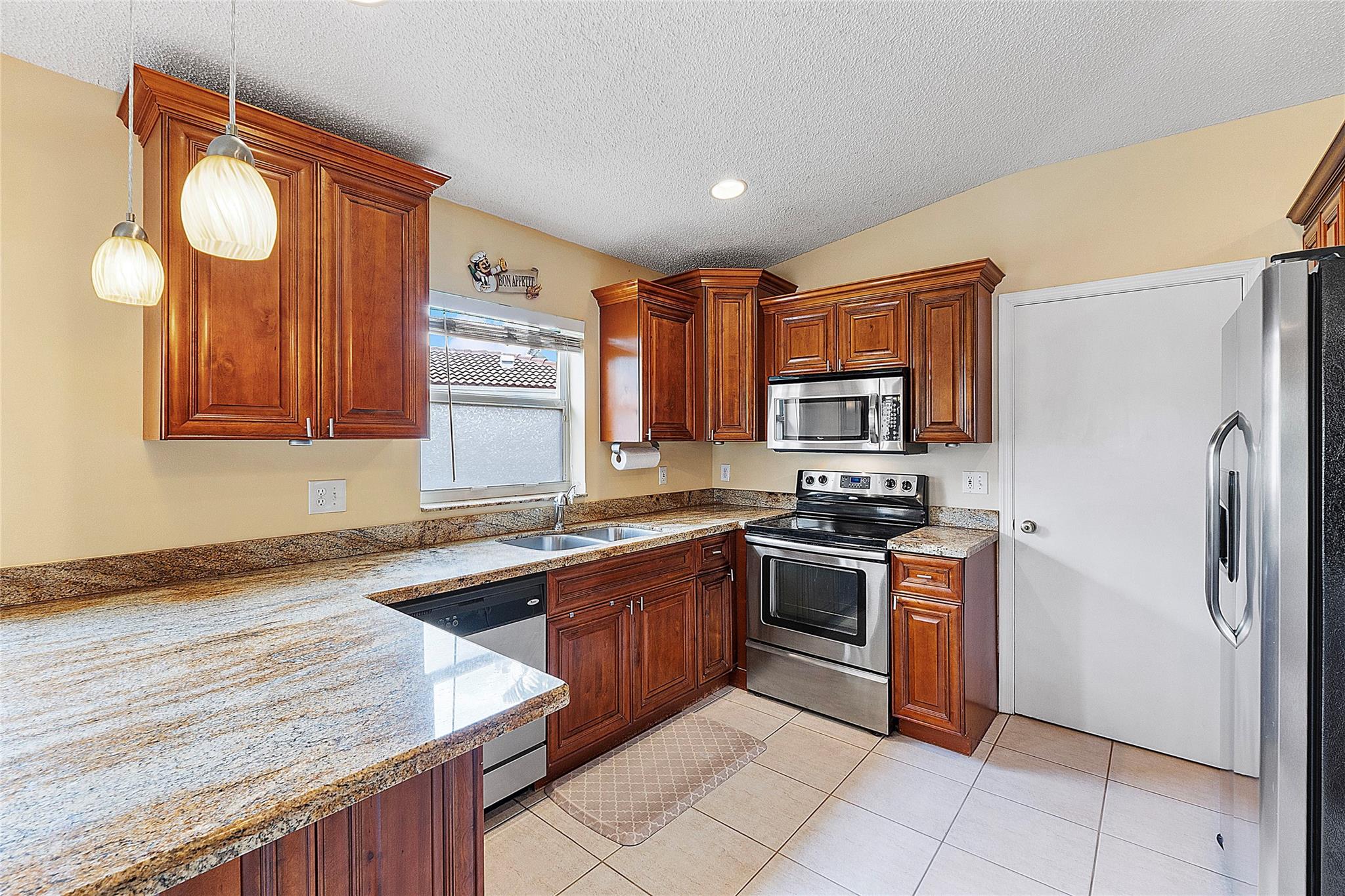 True Pride of ownership! This contemporary masterpiece nestled in the prestigious Villages of Renaissance gated community in West Miramar boasts a 3 large bedrooms with laminated floor, 2 remodeled bathrooms, a remodeled kitchen w/ granite and spacious cabinets, stainless steel appliances, 2 car garage with hurricane proof door, accordion shutters and is surrounded by a serene lake view. This state of the art sits on a large and private corner lot w/ an expansive fenced-in backyard which is a true oasis for a future pool or for family entertainment. Newer Tile Roof, gutters, insulation 2018, newer AC system 2017, newer washer & dryer 2019. Community features: swimming pool, playground, tennis courts & guard gate. Very low HOA. Easy commute to I75 & Turnpike. Close to Miramar Town Center.