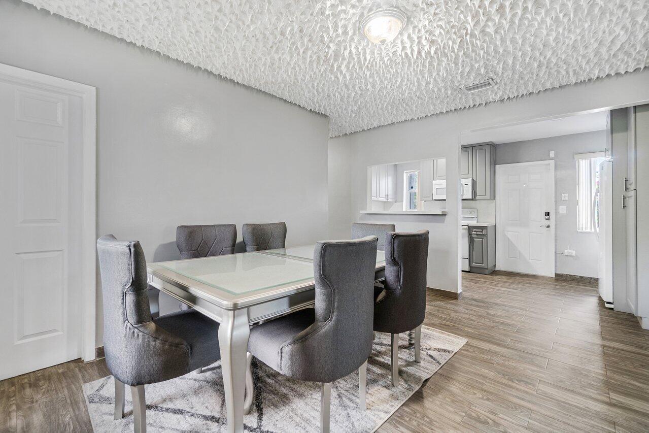 Indulge in contemporary living with this 4-bed, 2-bath ranch-style home on a spacious corner lot located in North Miami. Renovated kitchen showcases beautiful wood, grey cabinets, white appliances, & luxurious countertops. New bathrooms feature expansive walk-in showers, glass doors, custom tile, wood vanities, smart mirrors, & quartz countertops. Equipped with full solar power, roof 2010, complete accordion shutters, & 2023 AC unit. Home is both energy-efficient & storm-ready. Inside, wood-look ceramic tile enhances the entire space. Copper pipes replaced w/PVC. Ample parking, fenced yard, & generous patio areas invite outdoor enjoyment. Bonus storage unit & camera & alarm systems complement home nicely as well. Freshly painted interior & exterior add to the appeal of this modern haven.