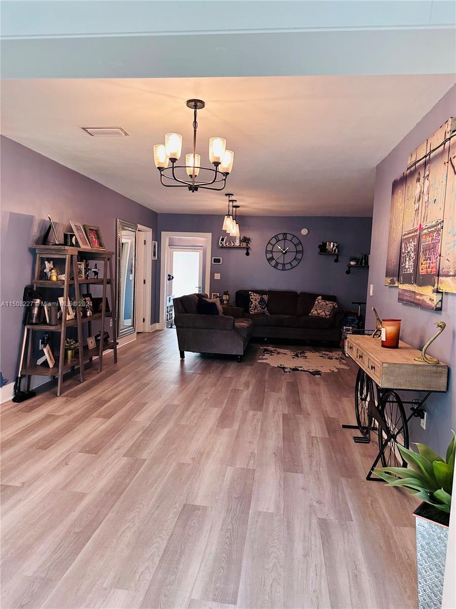 Welcome to this modern spacious home with 5 beds/ 2 baths ideal for big families or to convert it & generate extra income right away. As soon as you open the front door you'll find an open concept-living room that leads to the kitchen with newly remodeled cabinets & stainless steel appliances adjacemt to big fun family/rec room area. It has newly installed vinyl floors throughout. Impact windows & doors, freshly painted (interior/ exterior) Roof from 2018, newly installed gutters. All plumbing updated to Cooper & PVC in 2016!!*Big backyard with space to build a pool & playground area (shed stays). Front porch with a driveway & carport that accommodates multiple cars. Huge front yard with a mango tree! Very easy to show, text listing agent for access. Realtors: Bring your Best offer!!!