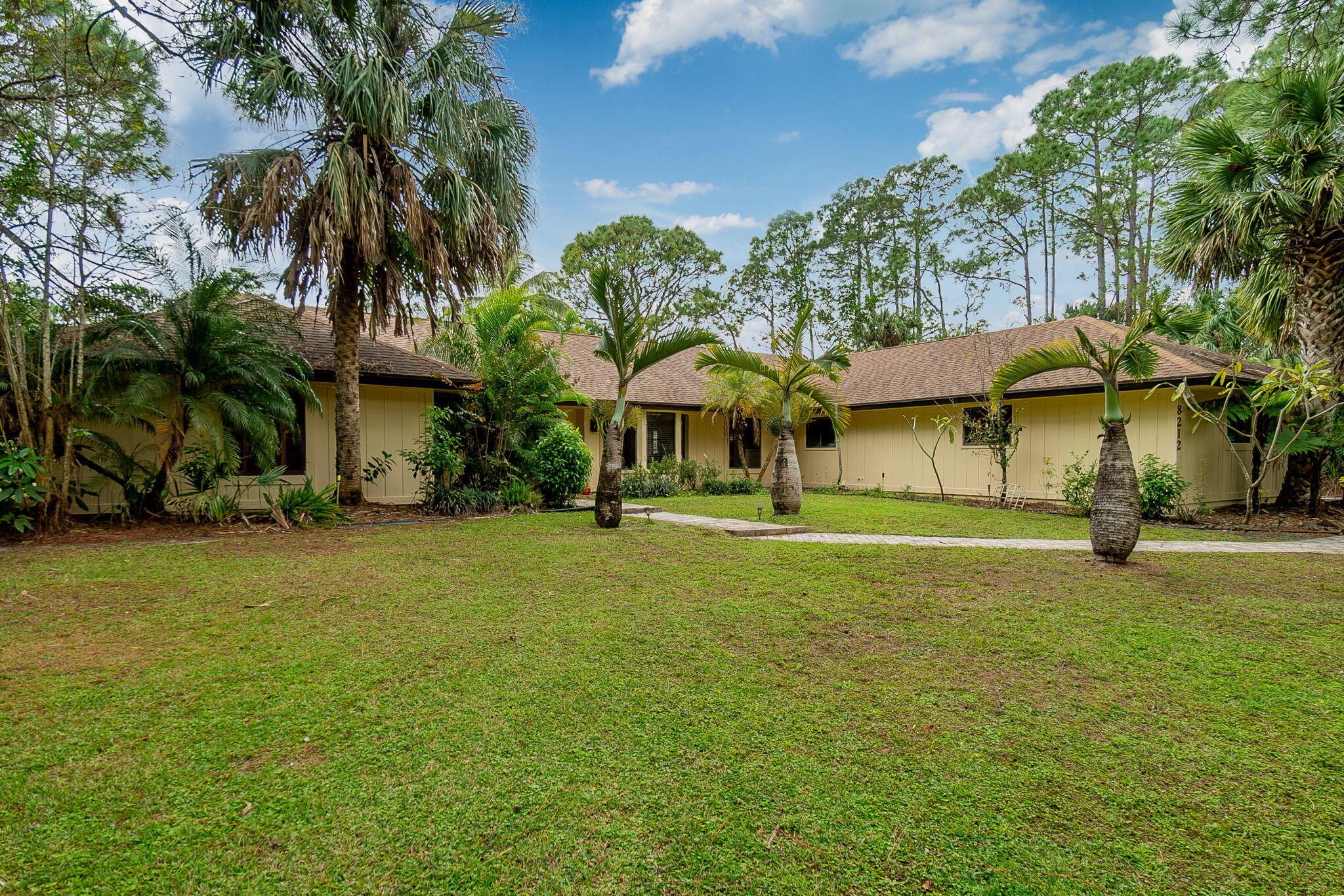 Rare Find *CANALFRONT* 4/2/2 in Palm Beach Country Estates PLUS there is a County 30' Easement on the West Side for added space & CORNER LOT!! This fabulous home backs up to a canal w/a private boat dock. This 1.34 acre private & secluded lot (as behind the canal is the 2700-acre Sandhill Crane Wildlife Refuge. The home features a newly refinished large pool & patio deck w/ 30' covered patio & summer kitchen w/bar. Newer A/C & Water Softener System-City H2O Avail., Lg Bedrooms, Stainless Appliances, Wood Cabinets, Granite Countertop, Pass Thru to Patio. Real Wood Burning Fireplace, Real Wood Exposed Beams, Interior Laundry Room, French Doors, Crown Molding, Lg Entry Way, New Epoxy Garage Floors. Plenty of Storage w/exterior shed & Horse Barn! Paved Road! Lots of New! NO HOA! Must See!!