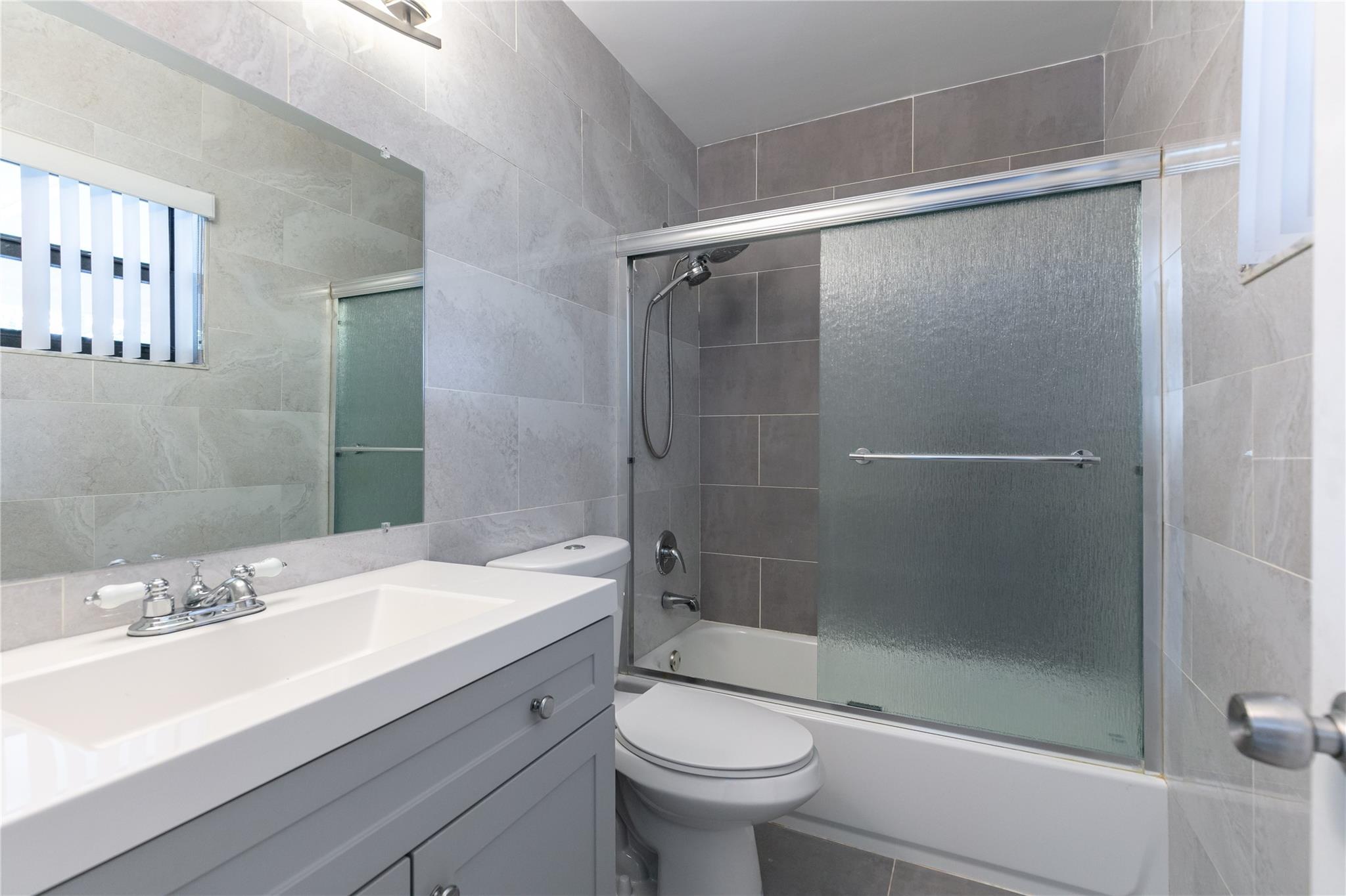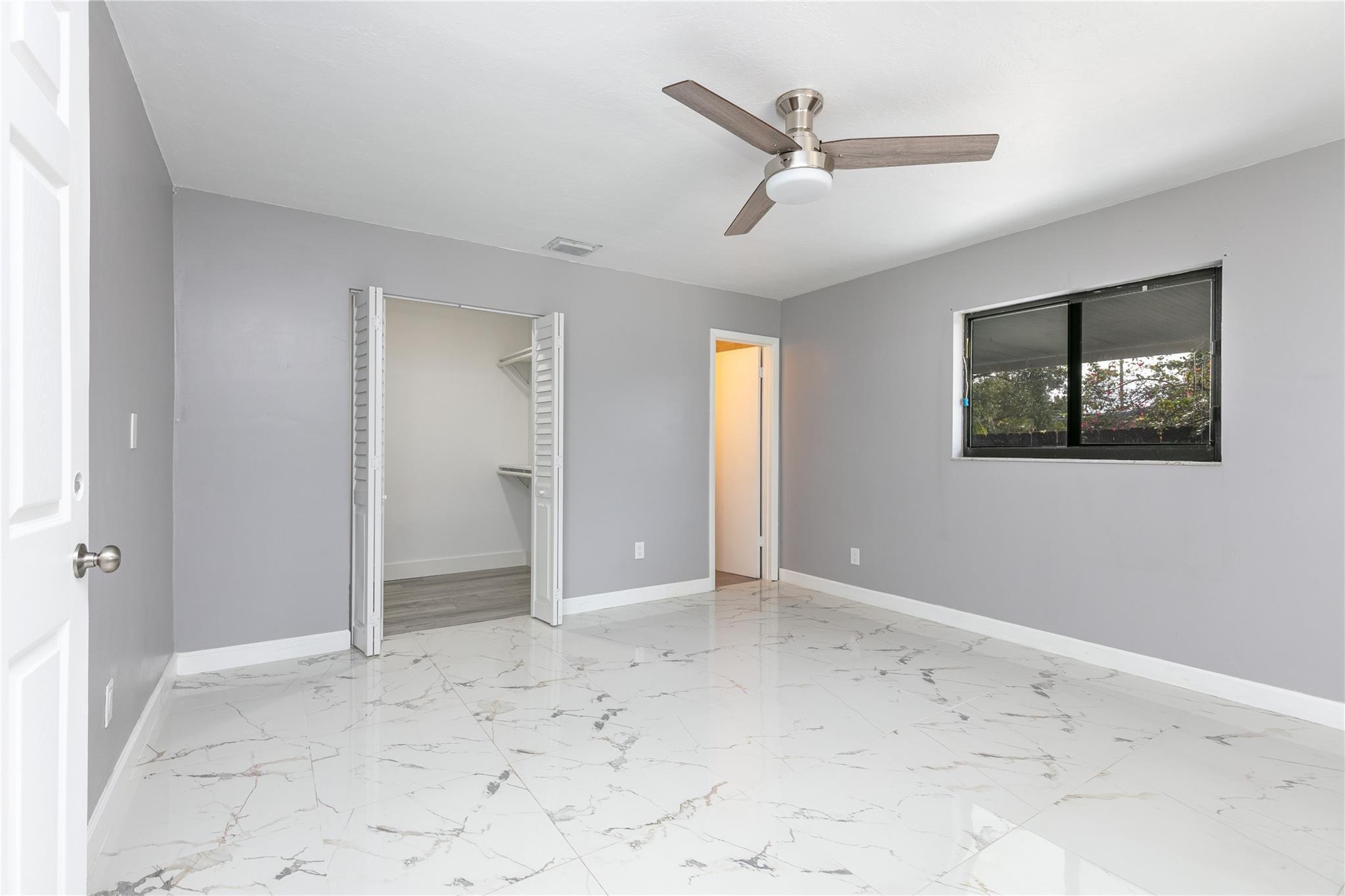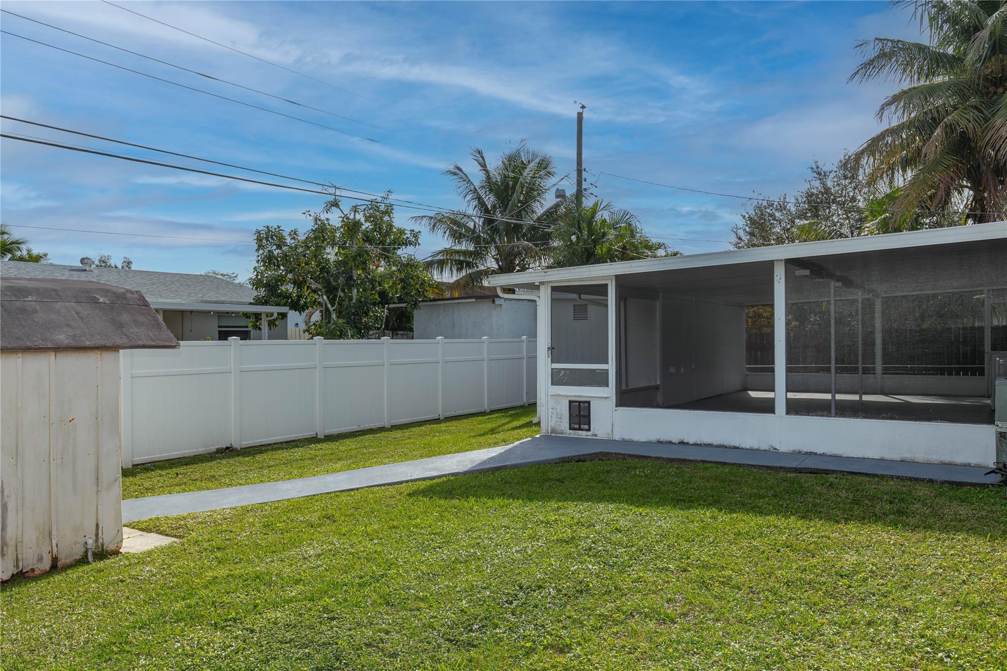 This home features 3 bedrooms, 2 bathrooms, an open layout, a modern kitchen with soft close high gloss euro style cabinetry & granite countertops with a full length back splash. The stove is gas operated which provides a monthly savings in the electric bill. The master bedroom has a walk-in closet and updated porcelain tile. This home also has recently installed hurricane impact windows and doors and comes with 900 square feet of a screened-in patio enclosure. The yard is perfect for entertaining & there is plenty of space for storage. There is additional parking on both sides of the house. This home sits on a dead end street and is conveniently located close to schools, parks, shops, public transportation, and major highways. Don't miss this opportunity, schedule your viewing today!