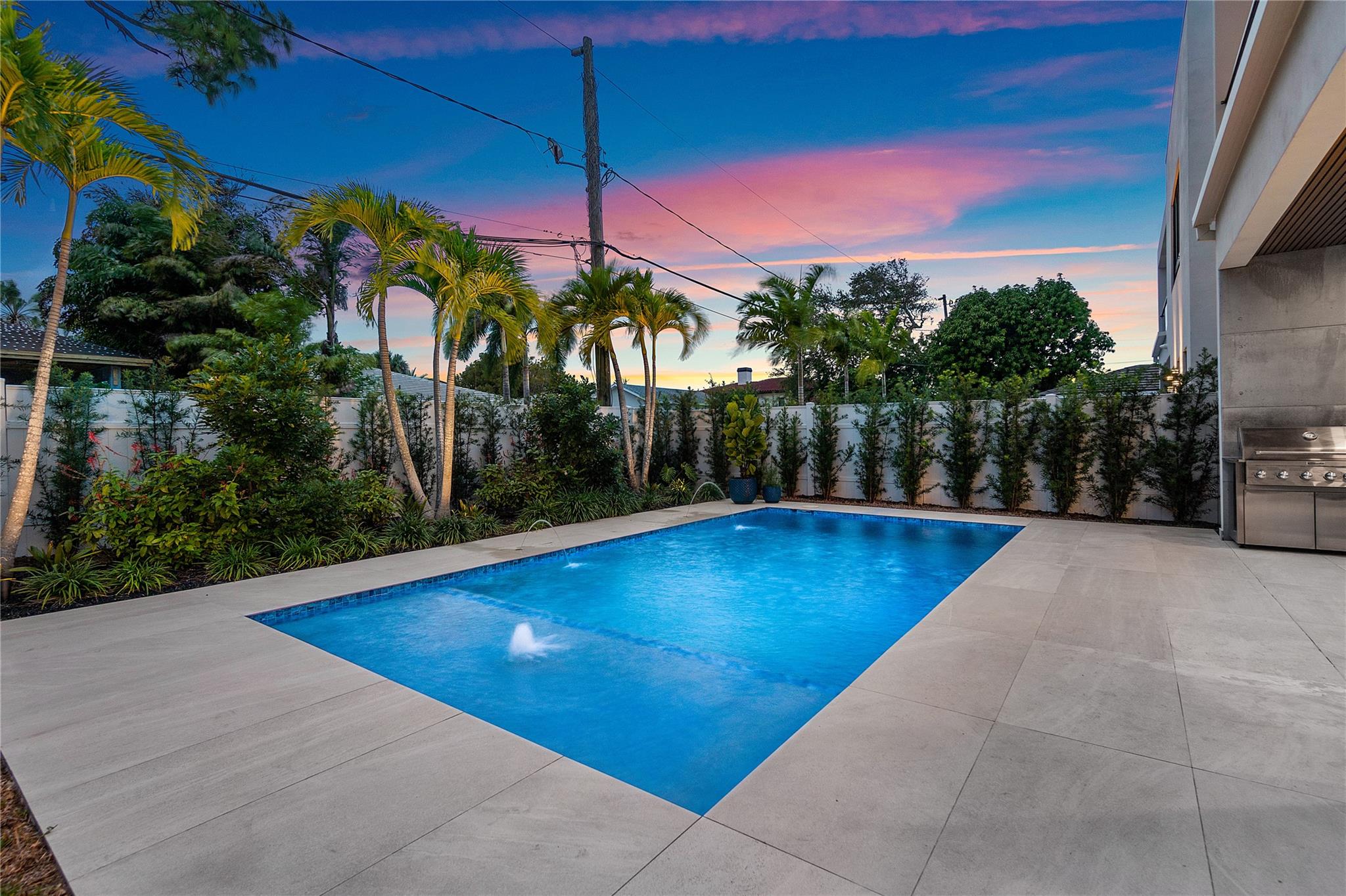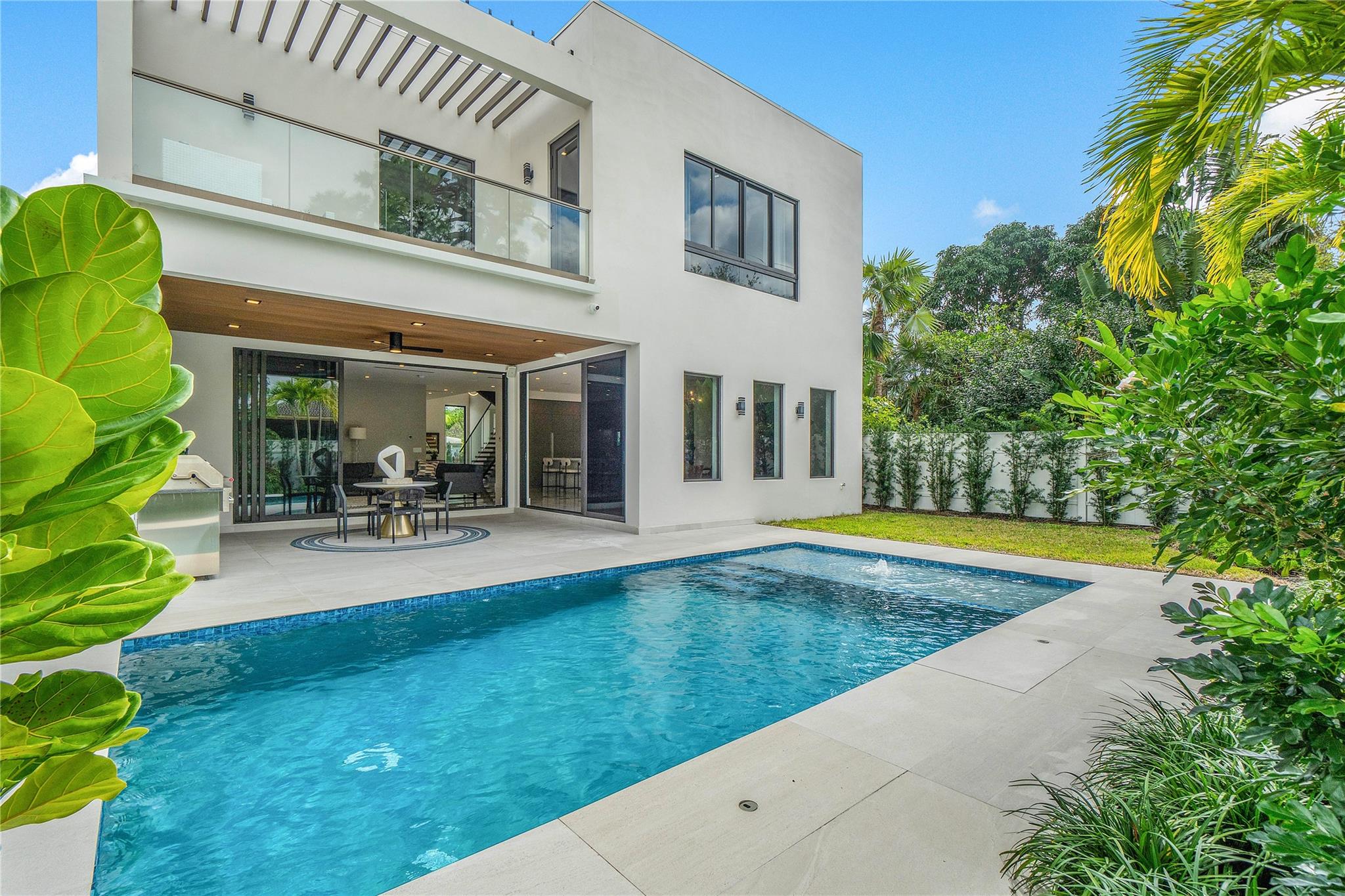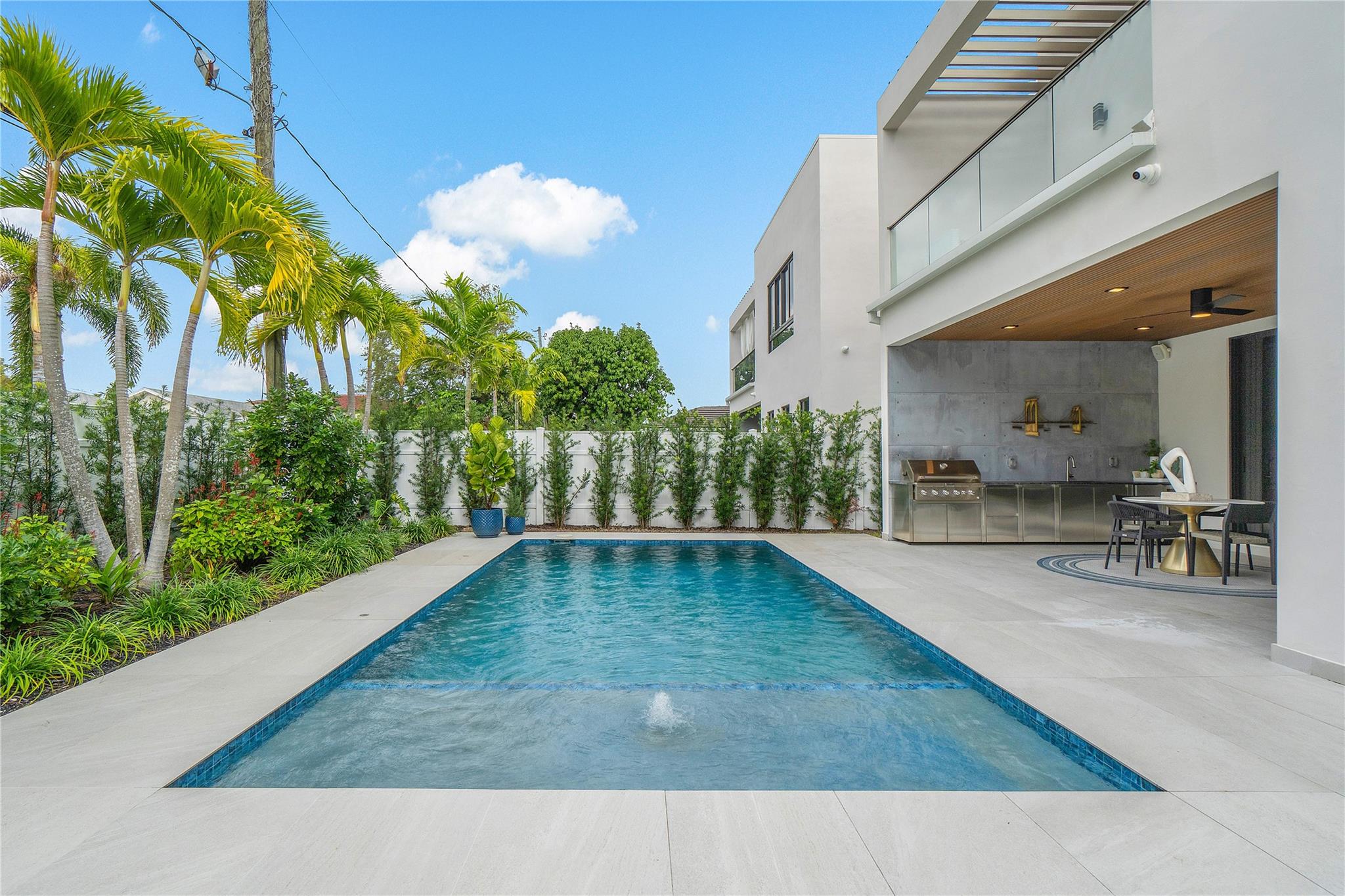 Victoria Park Perfection! This 2-story home redefines upscale living in Victoria Park. Spanning 3,756 sq ft under air, 4 large bedrooms and 4 1/2 bathrooms. The open-concept first floor features a chef's kitchen, a living and dining area that opens to a private yard with a heated saltwater pool, summer kitchen, and covered patio. The lower level includes one bedroom with a cabana bath, a half-bath, and a 2-car garage. Primary bedroom has balcony overlooking pool, double custom walk-ins and bathroom with double-sink floating vanity, soaking tub, and dual-head shower. Second floor has bonus room ideal for a den, office, or media room, along with a laundry room. High ceilings and impact windows offer natural sunlight, complemented by a dramatic floating staircase. Attached features sheet.