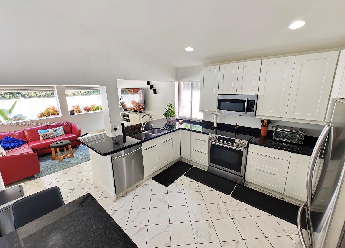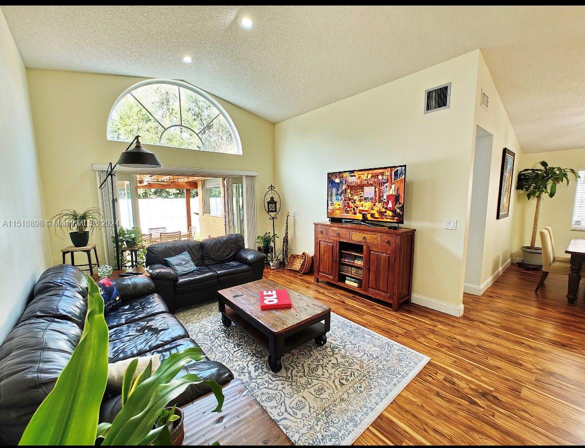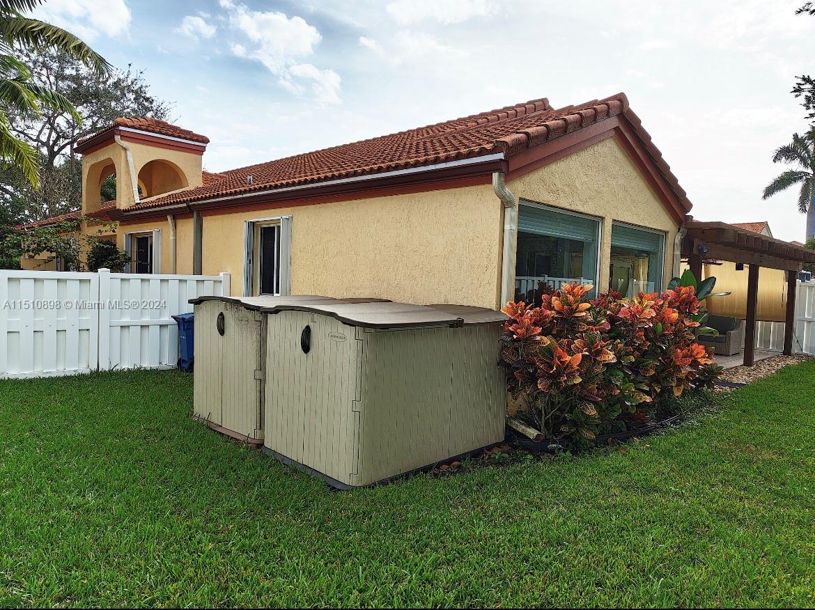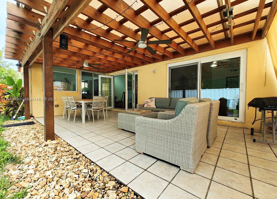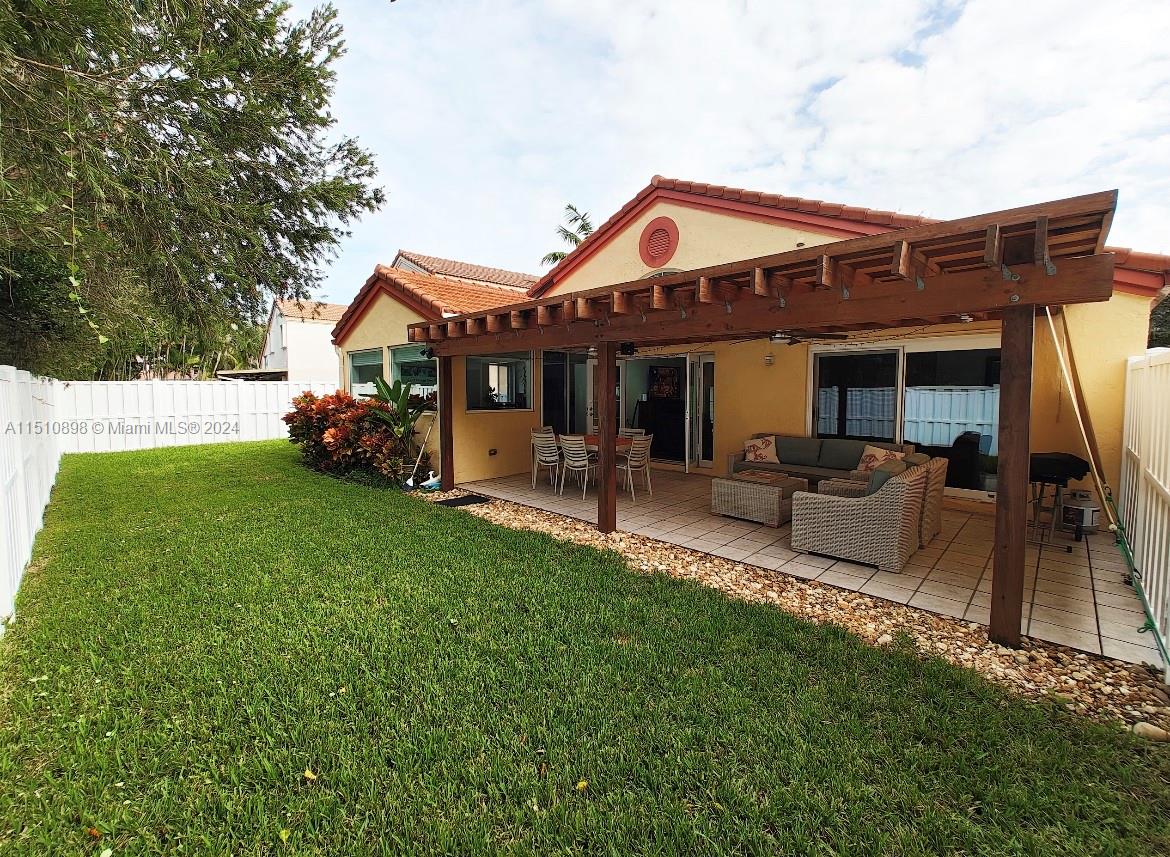 Weston... Gorgeous ONE STORY HOME WITH 3 bedrooms-2 bathrooms-2 car garage + 4 car driveway/semi cul de sac/GATED enclave only 86 homes @Coral Harbour/NEW ROOF from 2019/A+RATED schools/ Wonderful Open floor plan w/ French doors leading to an amazing patio covered with real wood pergola for entertaining/Kitchen features: granite counter tops/ custom cabinets/ Island with barstools/ stainless steel appliances/ state of the art commercial grade water filter by Rain Soft/ accent lighting/House features an additional TV room, completely permitted with impact windows and steel reinforced structure/Primary bathroom with tub+ shower +double sink. The Garage has vinyl flooring/portable air conditioners included/insulated hurricane door. The attic has plywood floor/mechanical ladder for access.