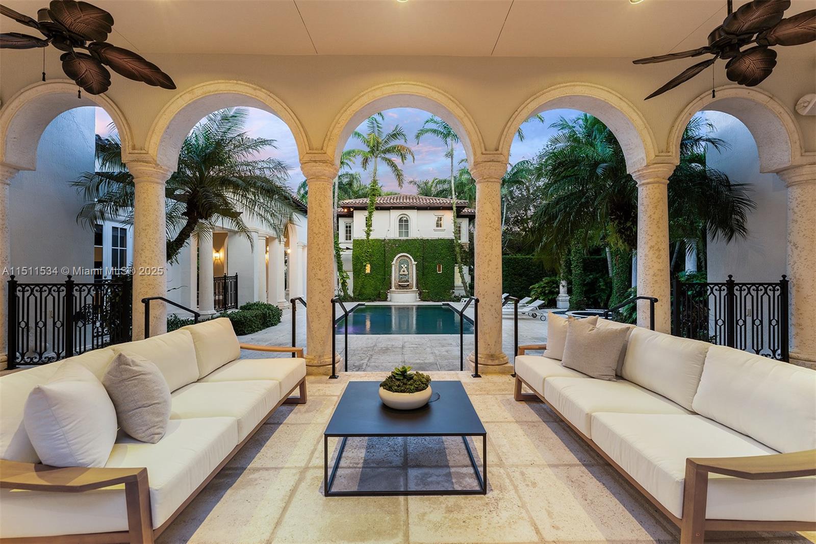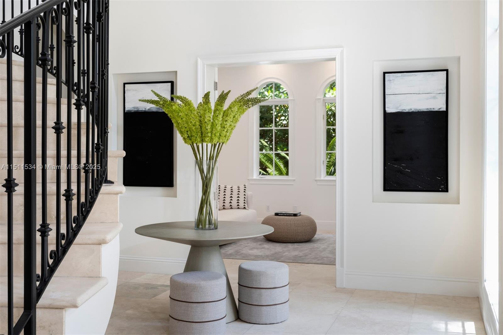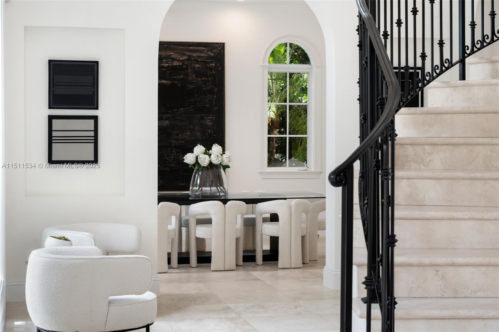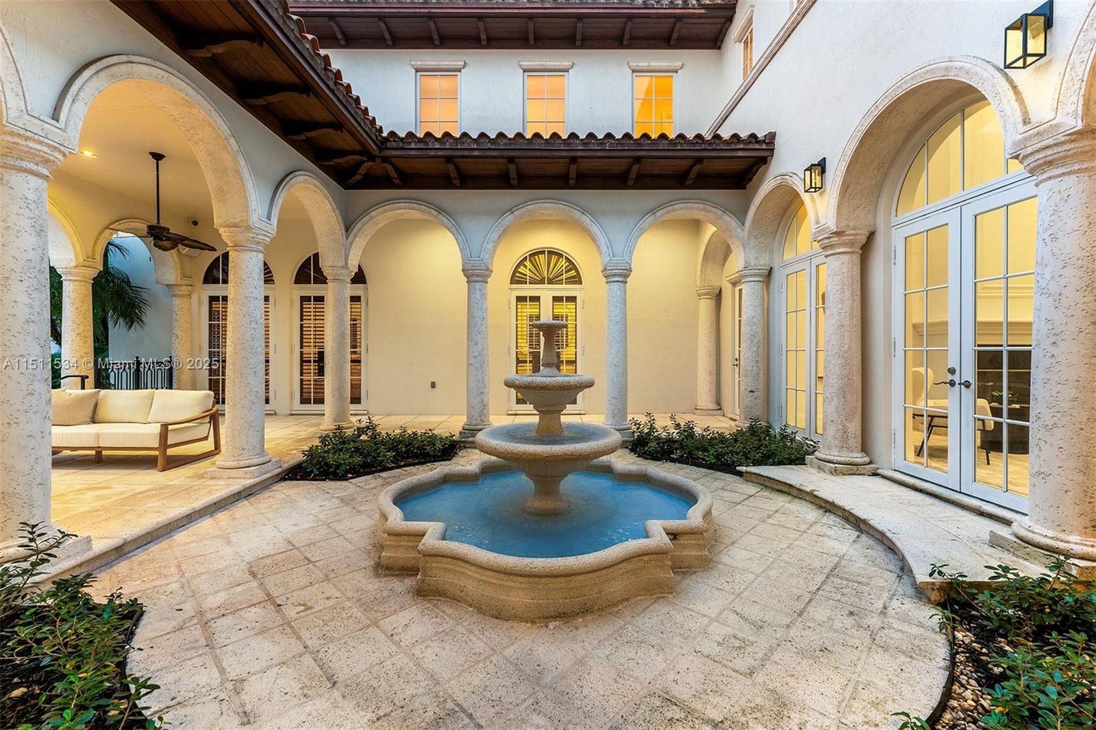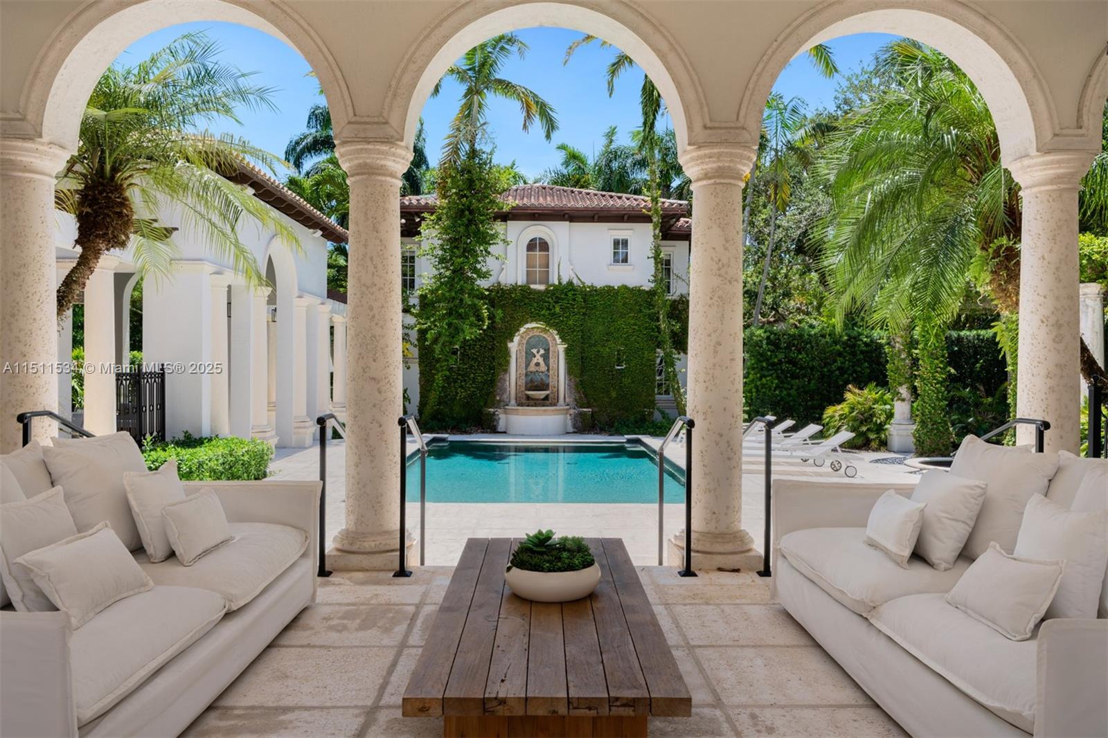 Luxury estate on esteemed Suburban Dr in Pinecrest, boasting a through-lot design. Ideal for a large family, w dual staircases that divide the foyer & formal living rm w soaring ceilings. Main level includes entertaining space, formal dining rm & open-style kitchen. Family rm is enhanced w a bar, fish tank, & workspace. Primary suite on main level enjoys its own wing, w a sitting/nursery rm. Staircases lead to distinct wings, one side 3 beds & 3 baths, and the other w 2 beds & 2 bths, featuring hardwd flrs & renovated baths. Backyard is a paradise, w pool, jacuzzi, basketball court, & putting green. Additional luxuries: outdr courtyd, water features, summer kitchen, detached guesthouse w 2 beds, living, & kitchen area, 3 car garage, & spacious motor court. Equipped w impact windows/drs.