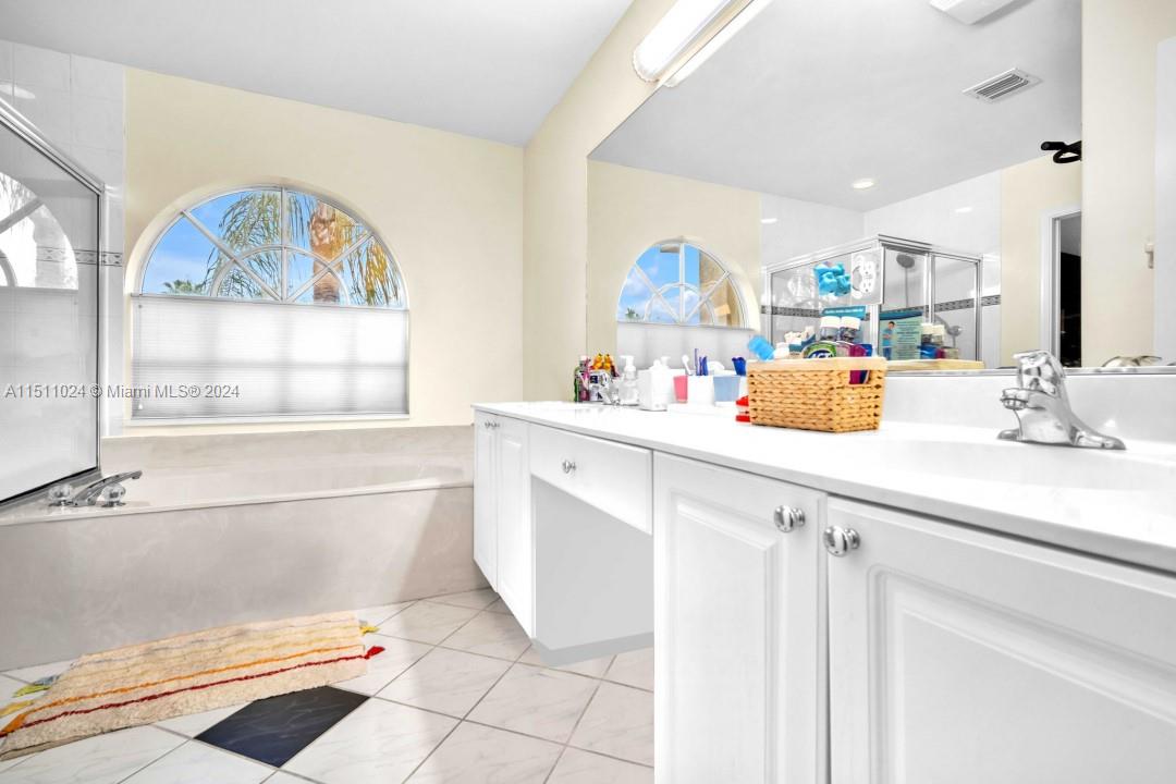 Gorgeous 5 bed/4 bath/3 car garage single family home on a large lot with wide, scenic lake view in the 24/7 guarded community of Silver Lakes! Home features a new roof(2019) and concrete 2nd floor, porcelain tile flooring throughout 1st floor with beautiful, oak hardwood flooring upstairs. Gourmet kitchen is complete with stainless steel appliances, granite countertops, and center island. Full bedroom and bath located on ground floor. Upstairs, find an oversized primary suite with separate sitting area, dual walk-in closets, spacious bathroom, and large balcony. Bedrooms upstairs include a suite and Jack&Jill bath. Expansive backyard has covered patio, multiple fruit and palm trees, and a stunning, must-see sunset. Accordion shutters. HOA includes internet, cable tv, and gate guard.