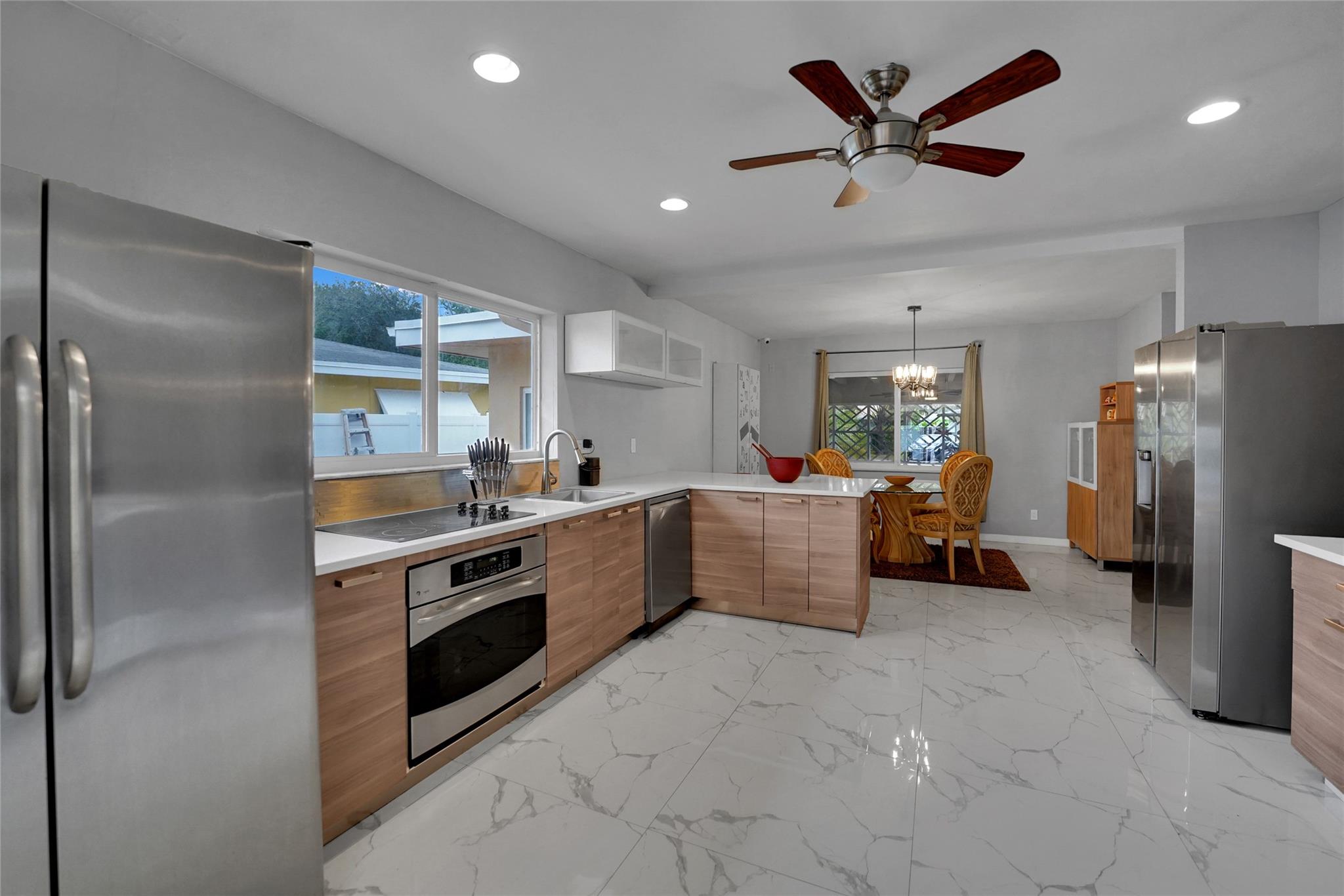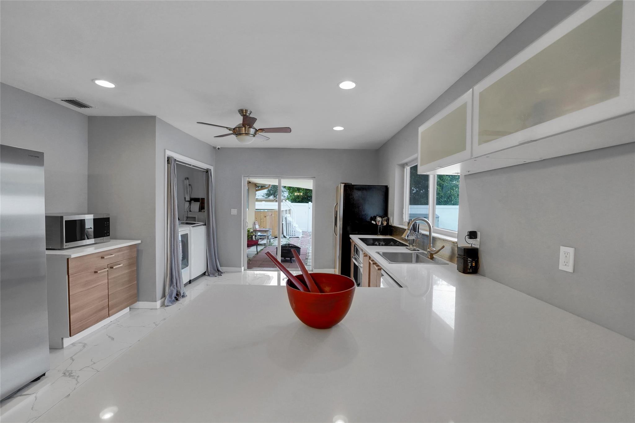 PRICE IMPROVEMENT...This remodeled 3-bedroom, 2-bathroom home in the desired neighborhood of LAWN ACRES, is equipped with SMART features including a NEST thermostat, Bluetooth Dishwasher and Security cameras throughout. Impact Windows and Doors throughout. NO HOA and no vehicle or pet restrictions. Plenty of room for a trailer, or camper on the side of the house. Elegant 32" marble tile floors, Quartz countertops, Recessed lighting, and not one but two Refrigerators. The backyard features an oval-shaped above-ground pool, surrounded by a beautifully crafted wooden deck and still plenty of yard for pets or entertaining. Parking will never be an issue with the stamped concrete driveway.