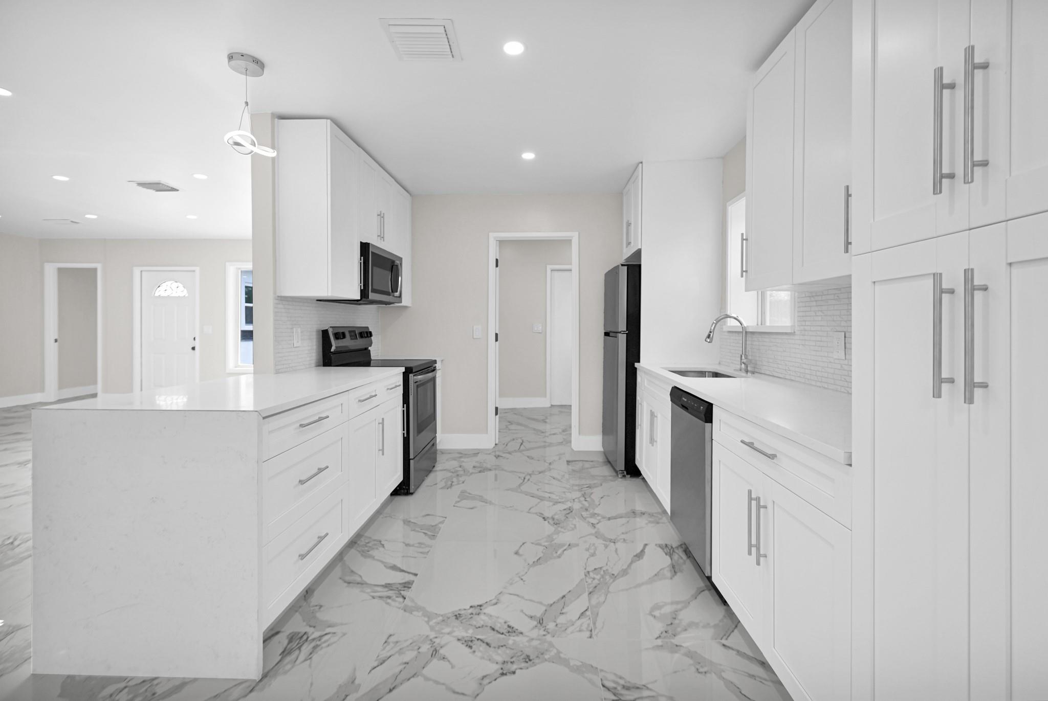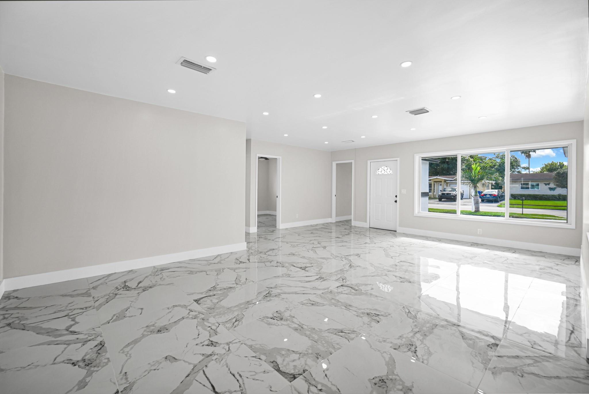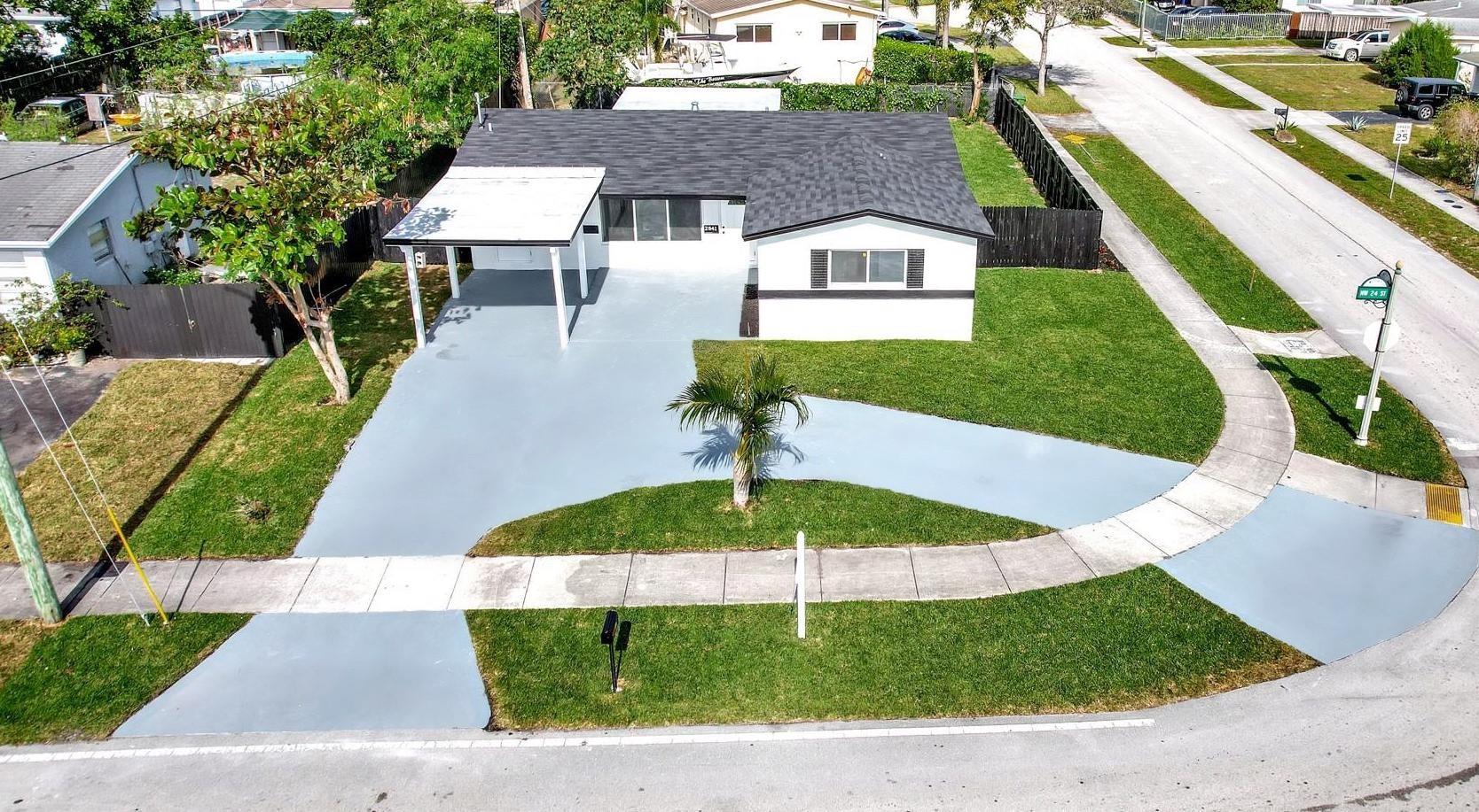 Welcome to your Luxurious Haven! Fully Renovated 3-Bedroom + Den, 2-Bathroom home on a fully fenced corner lot with NO HOA restrictions. Ideal for AIRBNB. Circular driveway w/carport fits 5+ cars. Near I-95 & Turnpike, 13 mins from Las Olas Downtown and 15 mins from the beach. Enjoy Energy Efficiency with a BRAND NEW black shingle roof, 4-ton Goodman A/C w/new duct work, and impact windows & doors. Modern finishes including 32-inch porcelain tiles, recessed lighting, and distinct fixtures. Custom open concept kitchen with new stainless steel appliances, soft close cabinets, a bar area, & quartz countertops. The master suite features multi-mood lighting, a walk-in closet, & luxury bathroom with a sleek glass shower. Large laundry room equipped w/NEW tankless water heater & washer/dryer set.