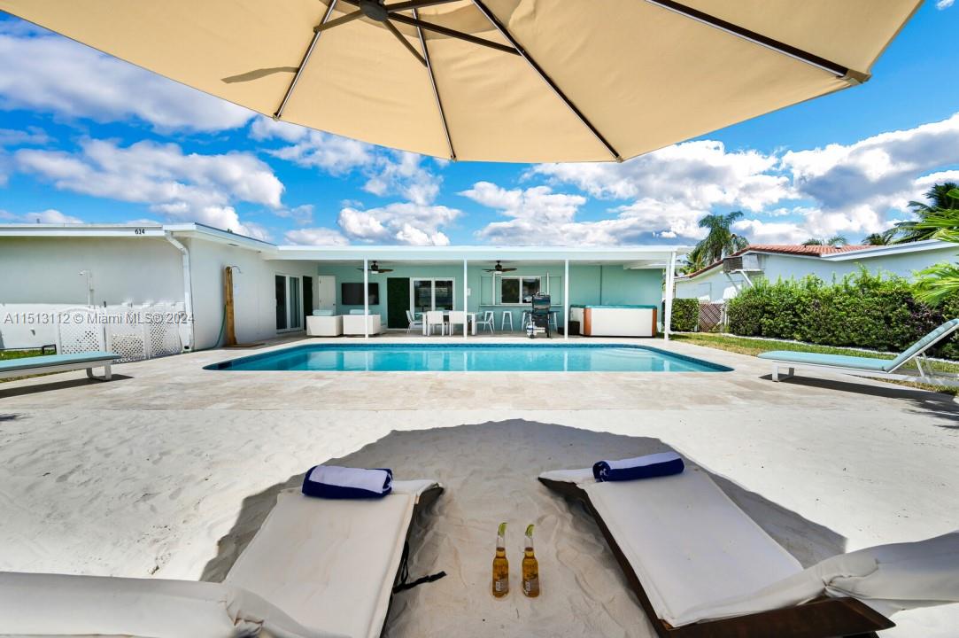 The interior designer imagined a Modern Coastal Open Floor Plan when fully renovating this Immaculate 4-bedroom 2 full bath Pool Home! Luxury vinyl planking throughout the home. Interior and Exterior of the home is freshly painted. Recessed lighting throughout the home. You will love the remodeled kitchen which boasts stainless-steel appliances, granite countertops and window overlooking the pool. Guest full bathroom is fully renovated “Modern Coastal style” with pool access. The Master bedroom Suite has a walk-in closet and fully renovated luxury spa bathroom. New HVAC/AC system, Roof replaced in 2015. The backyard Oasis is fully fenced in with a new heated large pool and travertine decking. Personal beach-sand area with custom beach fire pit. Large outdoor covered area.