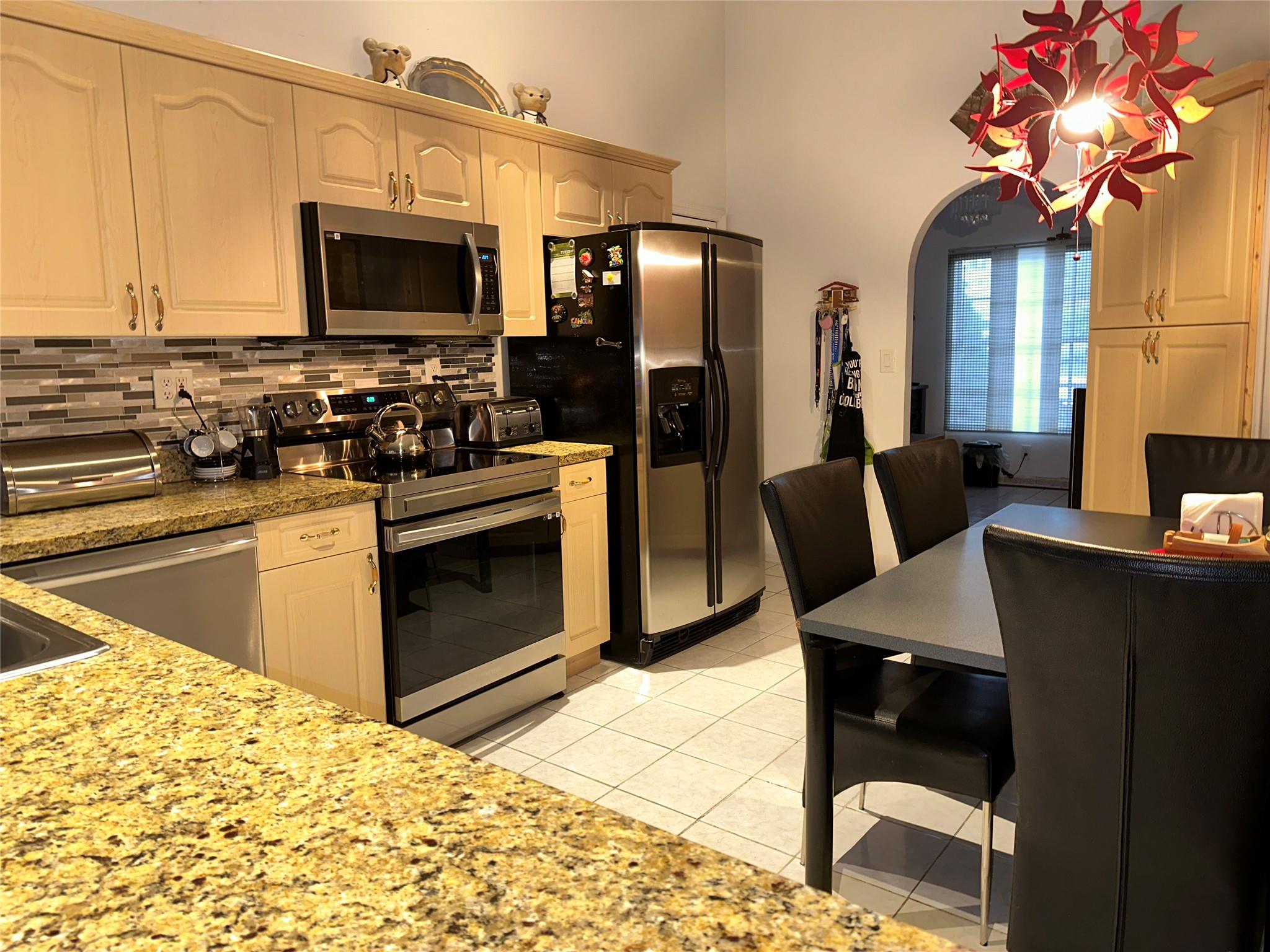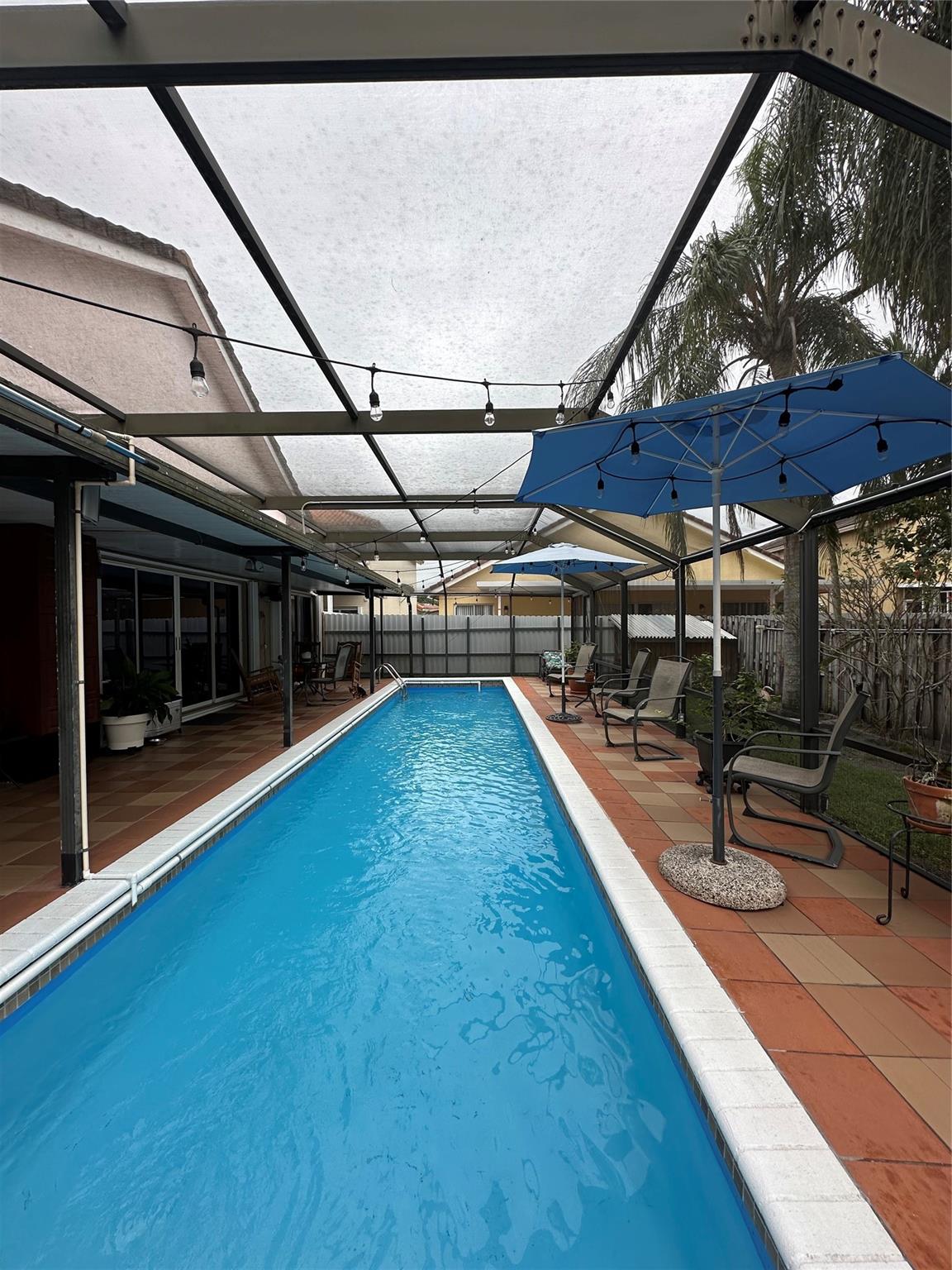 Located in West Esplanade. This Spacious 3 Bedroom 2 Bathroom, & Garage home with over 2,000 SQ FT. This home features tiled floors all around the home & master bedroom, wooden floors in 2 of the bedrooms and an extra stationary room, can be office, or playroom. Home has upgraded kitchen and bathrooms! Home has double living room, with two big glass doors to the patio. Comes with a fabulous screened in patio with a lap pool. Plenty of space in the background. Esplanade community has a lovely park and pool for the community! Please refer to broker remarks for showings