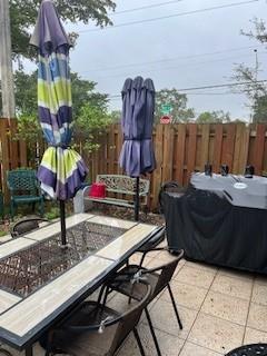 This spacious corner townhouse located in the heart of Davie features a great open floor plan. Priced close to the apprasied value. The 1st floor features a big eat in kitchen with granite counters and stainless steel appliances, 1/2 bathroom, separate laundry room & huge living/dining room overlooking enclosed patio for an office/den/family room w/ sliding doors leading to fenced backyard patio. All 3 bedrooms are upstairs. Huge master bedroom w/ balcony, en-suite bathroom w/ jacuzzi & big walk in closet. Renovated 2nd bathroom done from top to bottom with marble. Plenty of storage space & lots of natural light. Wood & marble floors throughout. New Accordion Hurricane shutters. 2 assigned parking in front. Newer community pool. Condo fee includes roof & exterior maintenance.