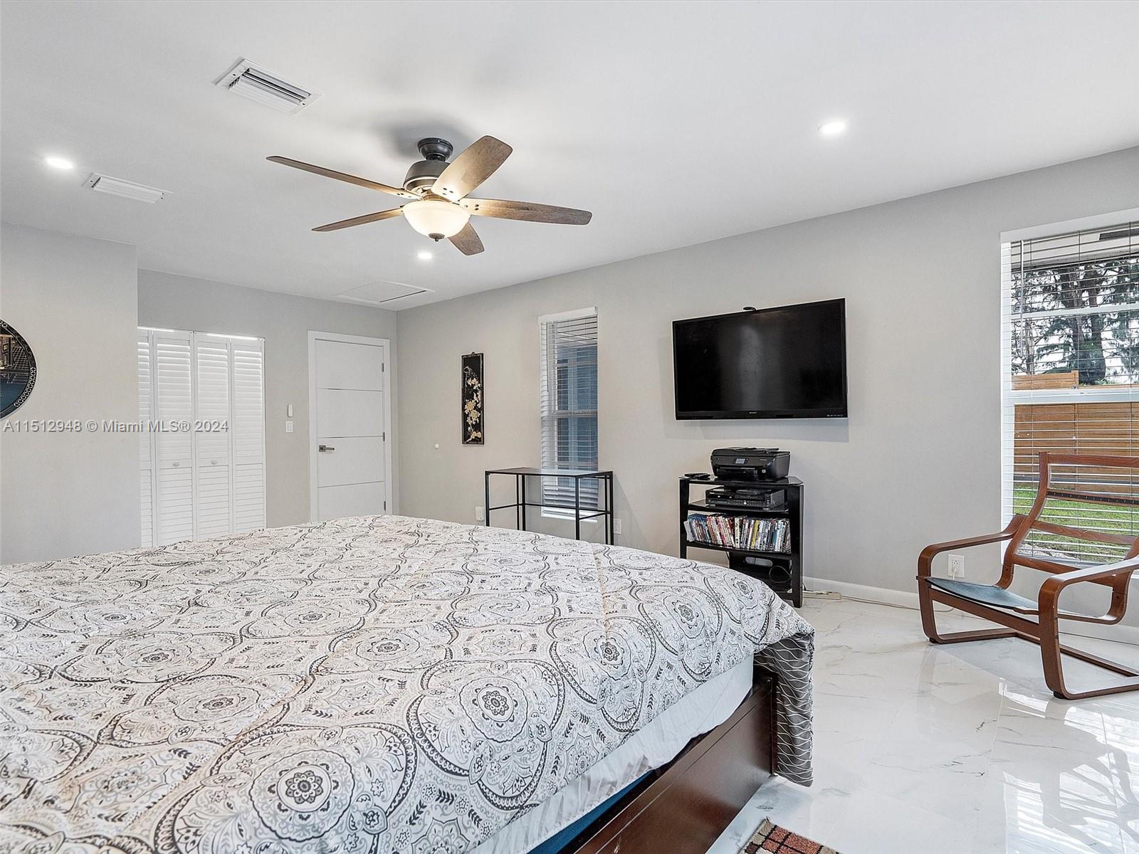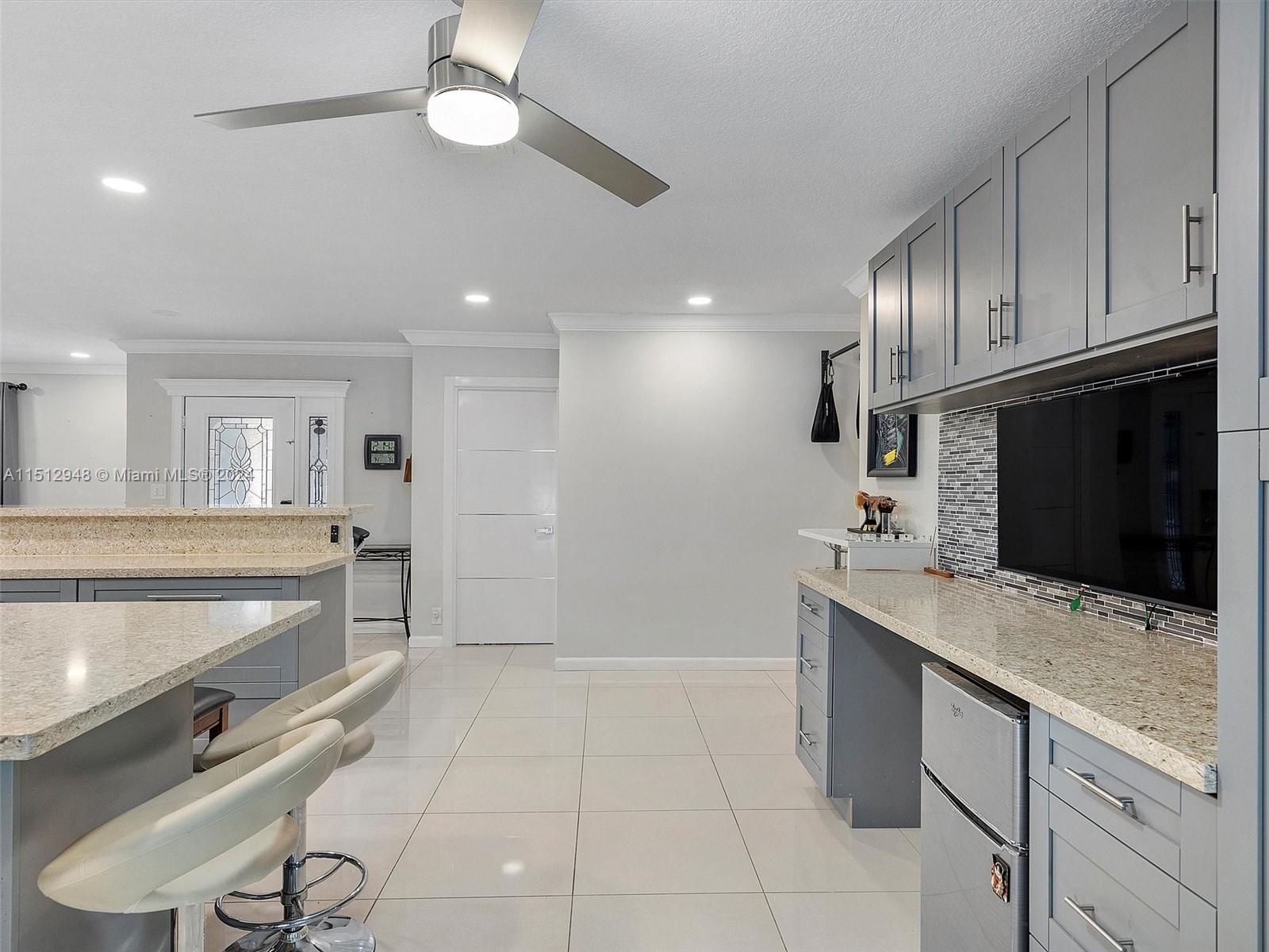 This impeccably renovated property boasts impact windows, a two-year-old AC unit, a comprehensive water treatment system, granite countertops, and tile flooring throughout. Situated on a spacious 38,000-square-foot lot, the residence features a heated pool with a new pump, a roof with five years of remaining life, and a recently upgraded electrical panel and air ducts. The house, renovated three years ago, includes a bonus trailer and promises both modern comfort and enduring quality.