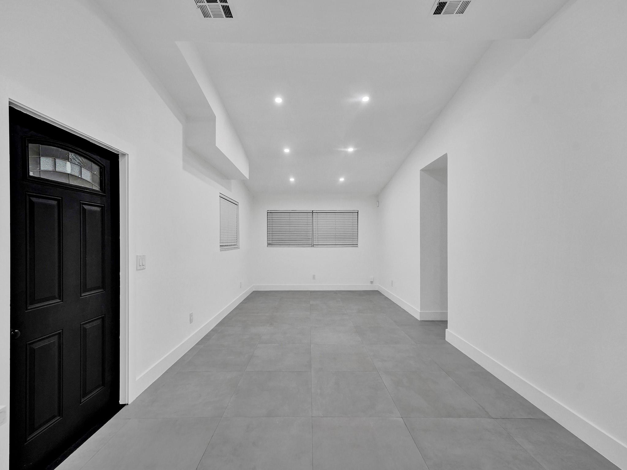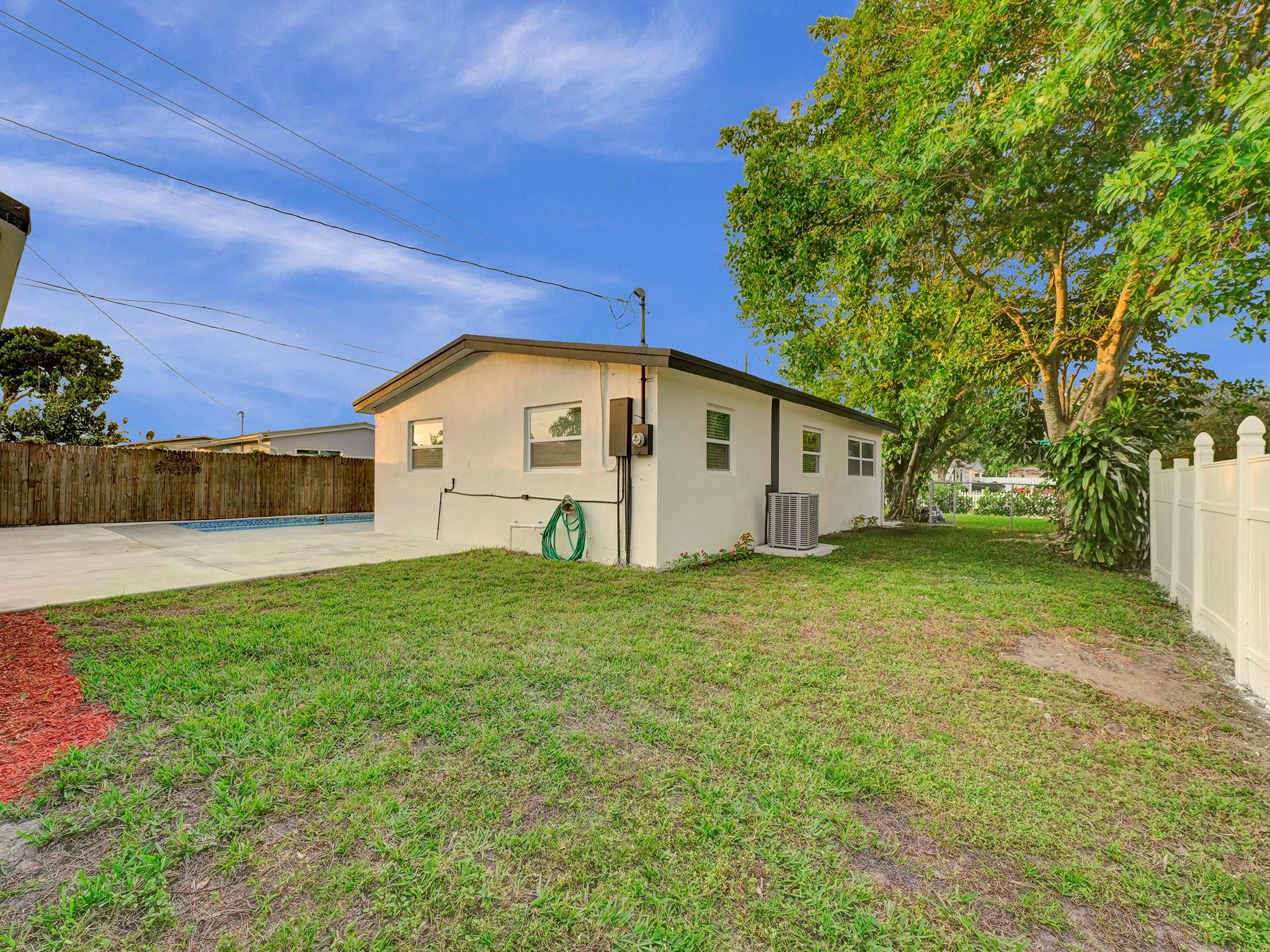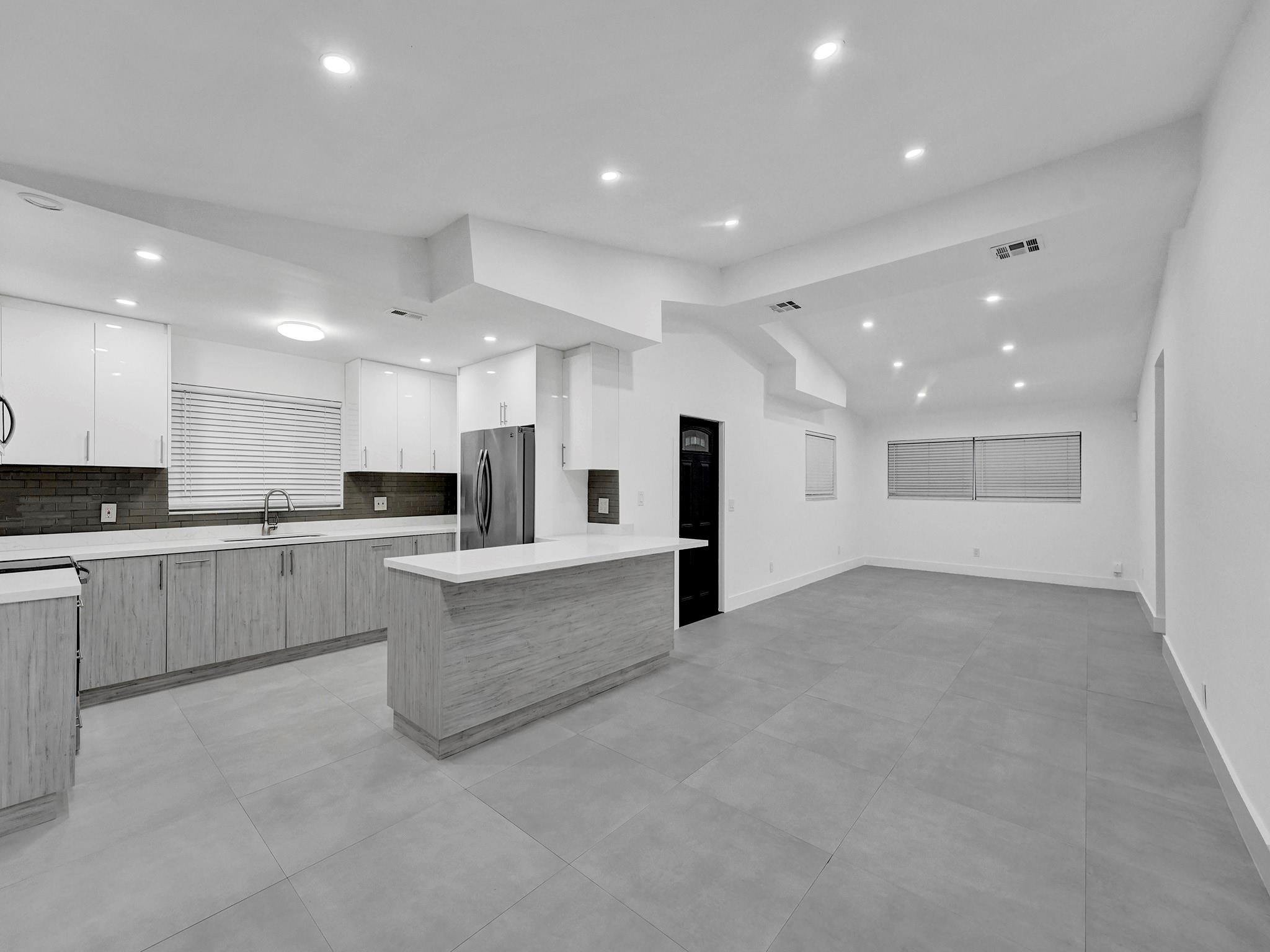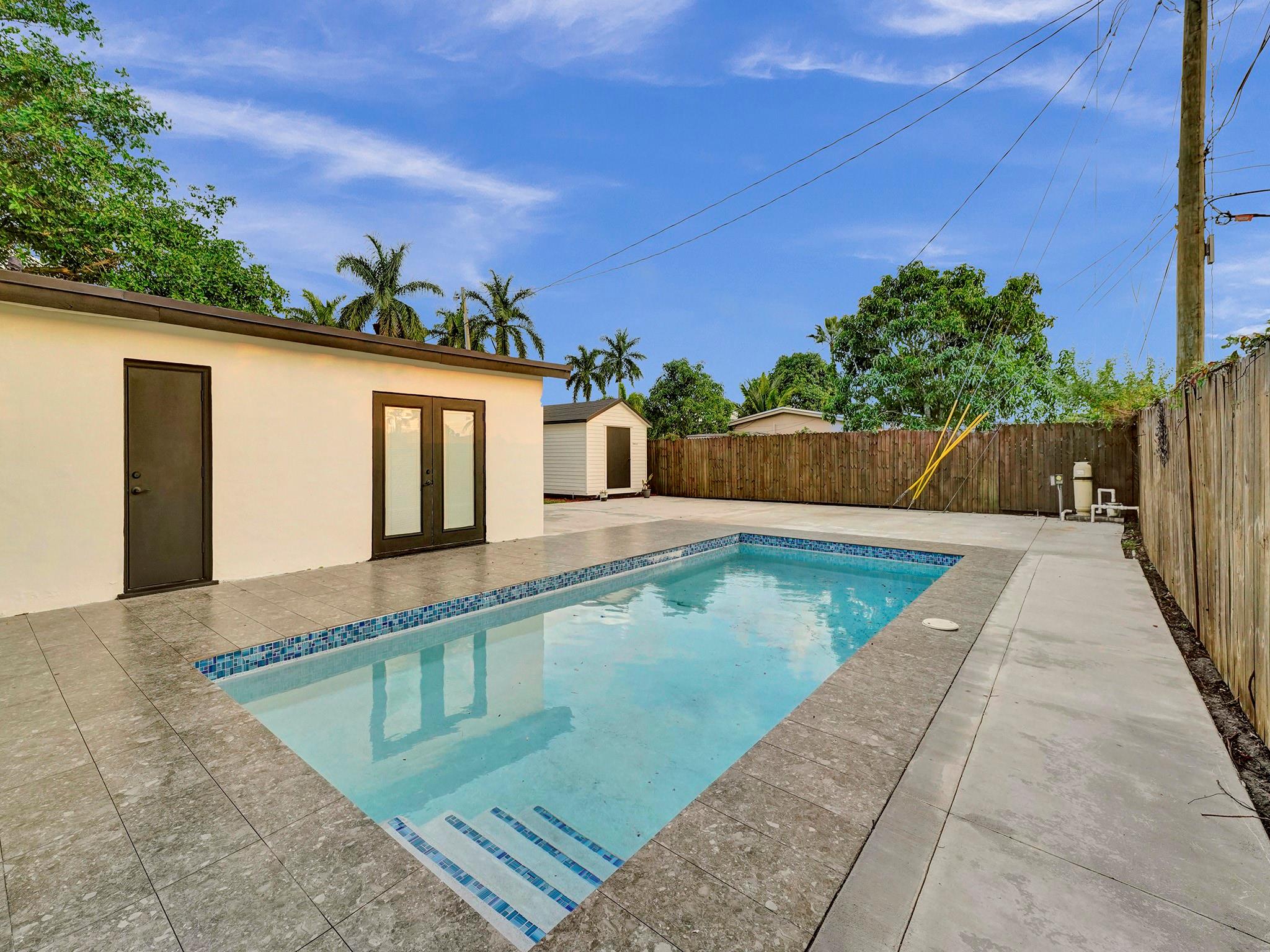 Spectacular single-family home featuring 4 bedrooms and 3 bathrooms. This residence has undergone a total renovation, showcasing a modern concept kitchen with quartz countertops, stylish backsplashes, and stainless-steel appliances. Revel in the contemporary aesthetic of tiles and hard floors throughout. The bathrooms have been thoughtfully updated, and convenience is elevated with a full-size washer and dryer. Enjoy the benefits of a tankless water heater and central AC. The property boasts a fenced, spacious backyard with a pool, large paved area, and a shaded retreat. Ideally located near shopping, Publix, dining, and major roads and highways. No HOA completes the appeal of this exceptional home.