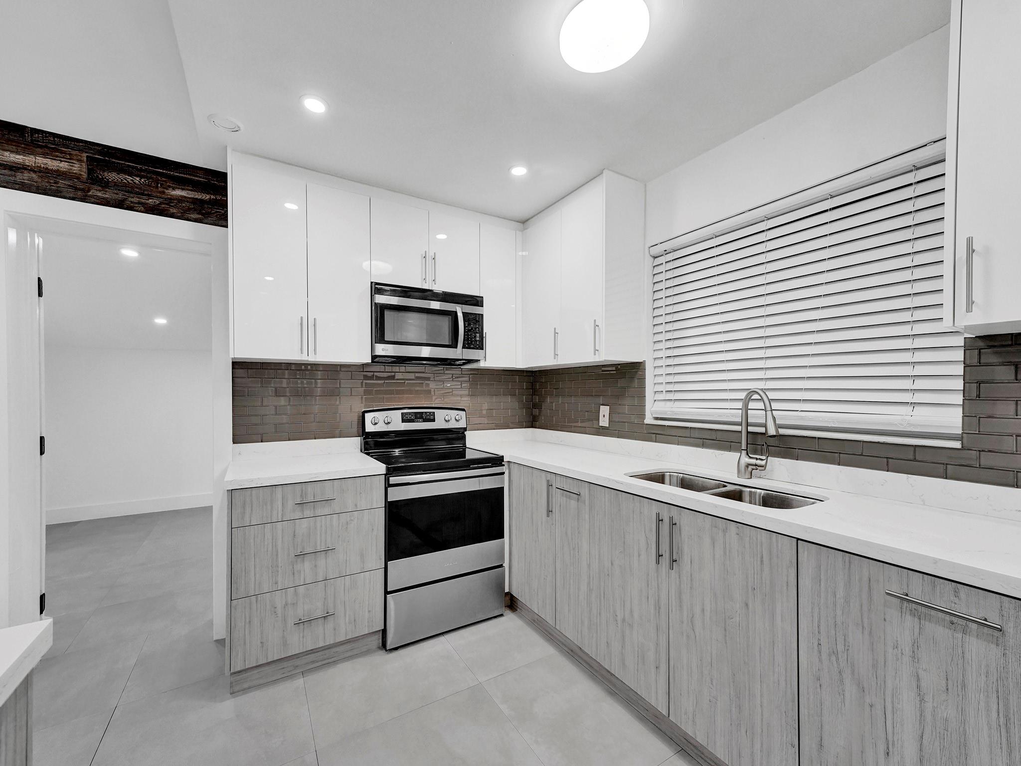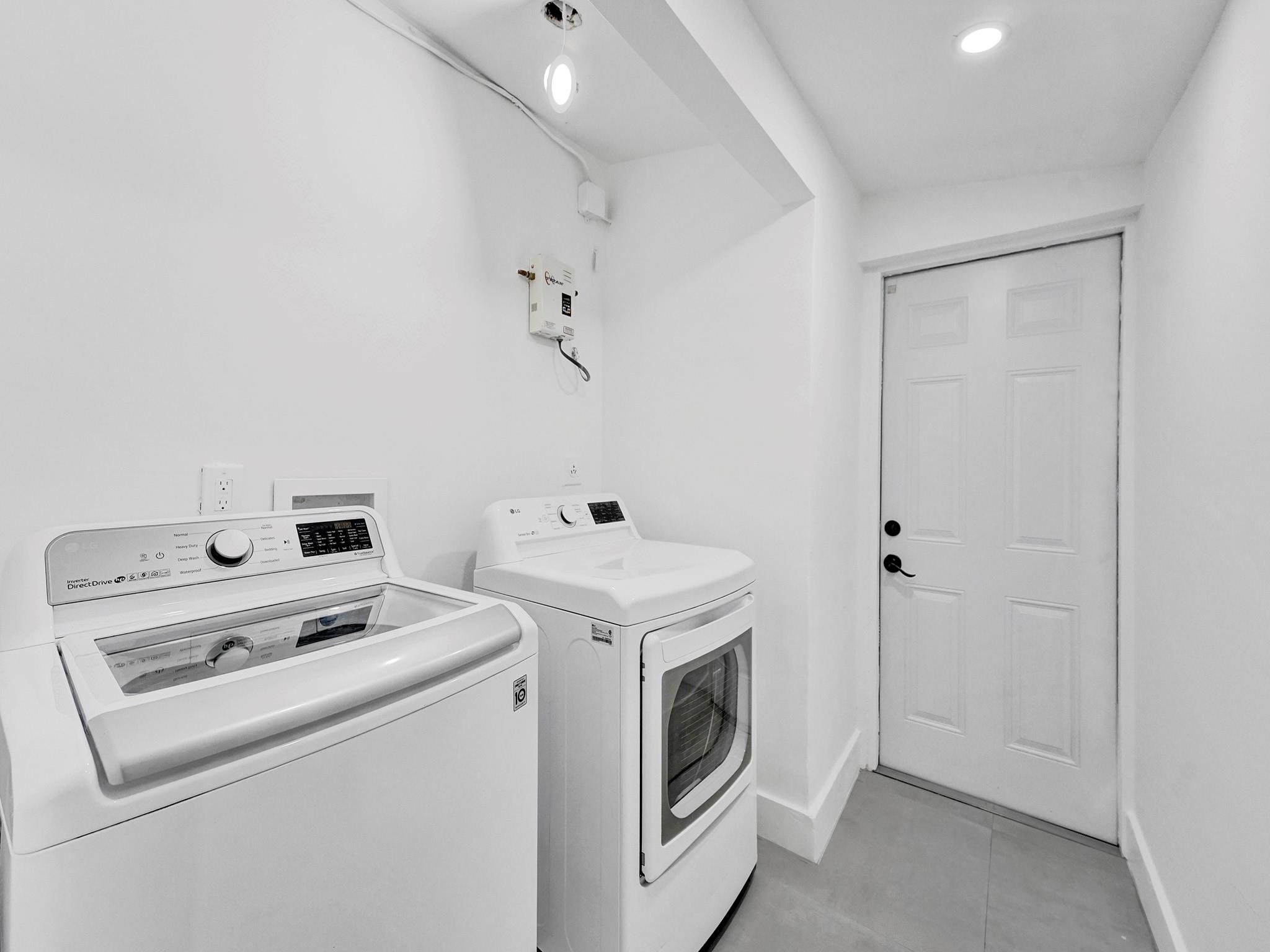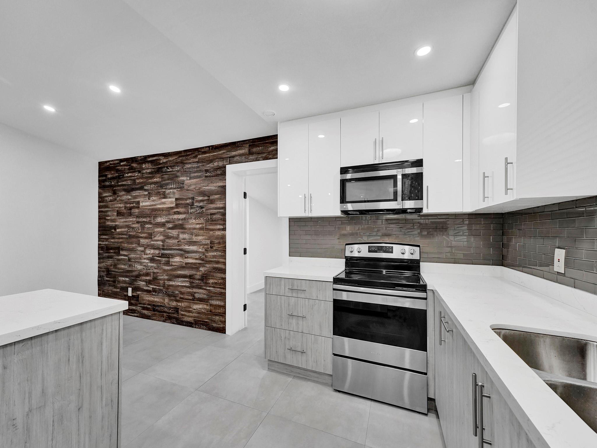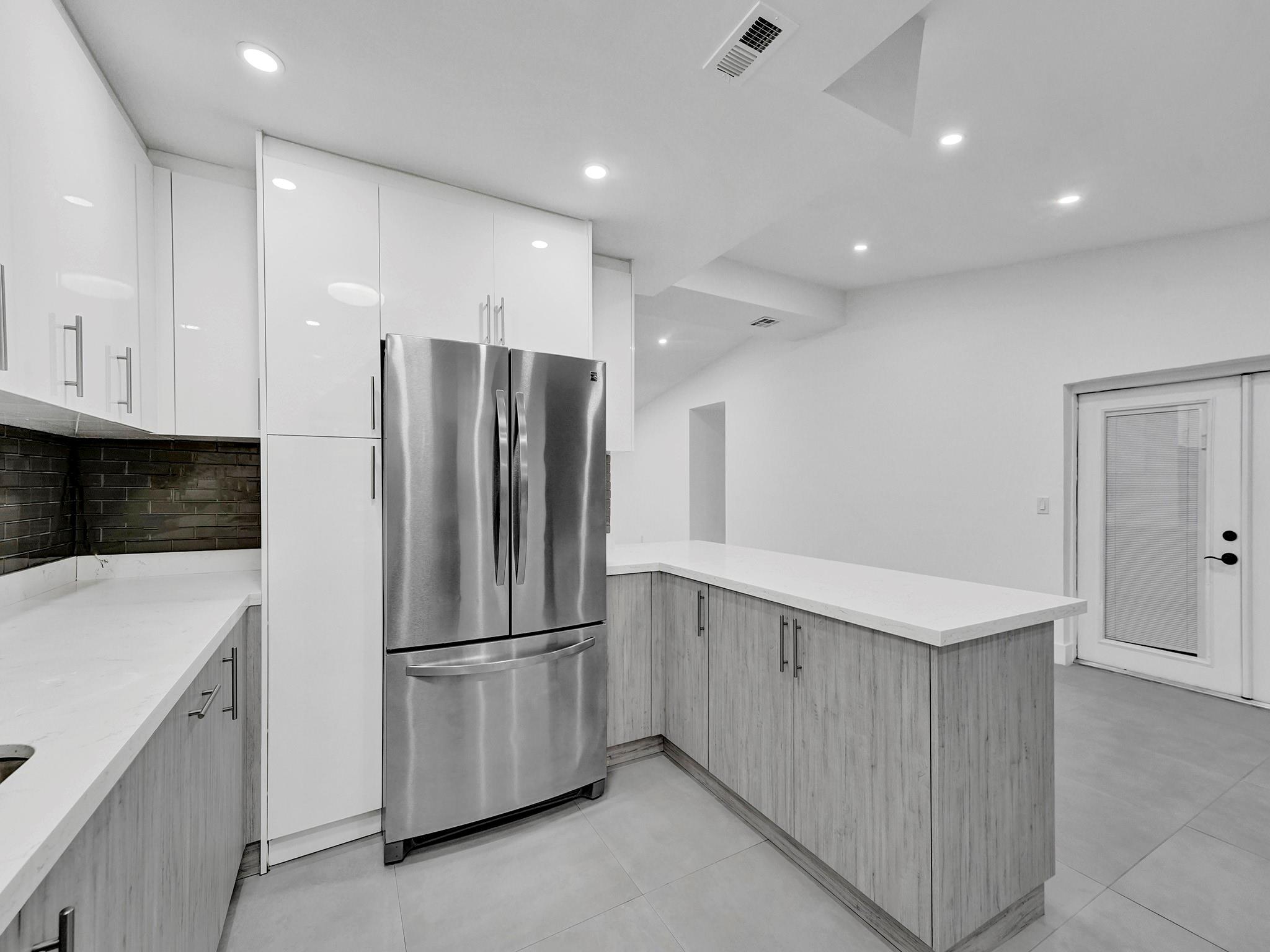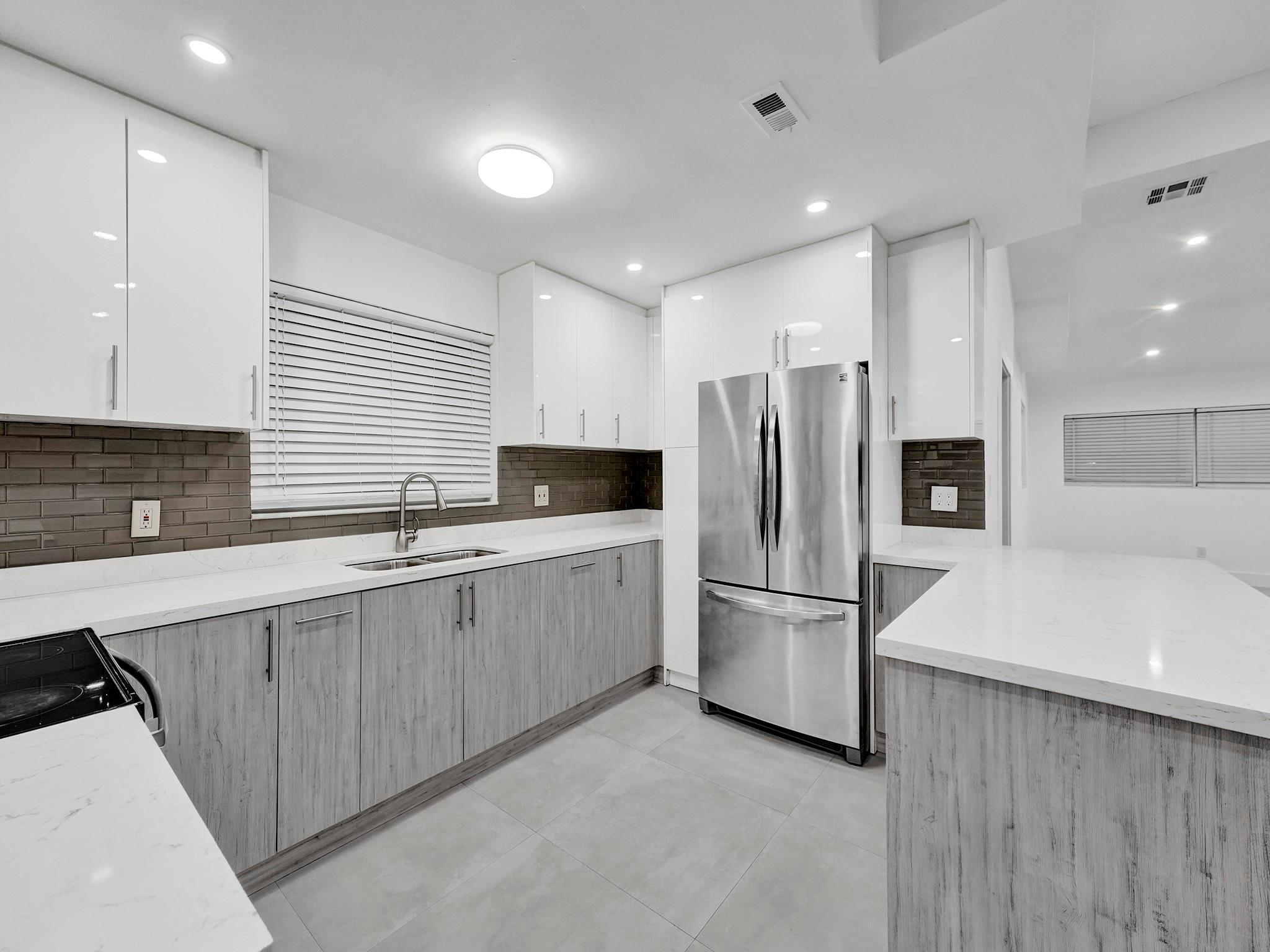Spectacular single-family home featuring 4 bedrooms and 3 bathrooms. This residence has undergone a total renovation, showcasing a modern concept kitchen with quartz countertops, stylish backsplashes, and stainless-steel appliances. Revel in the contemporary aesthetic of tiles and hard floors throughout. The bathrooms have been thoughtfully updated, and convenience is elevated with a full-size washer and dryer. Enjoy the benefits of a tankless water heater and central AC. The property boasts a fenced, spacious backyard with a pool, large paved area, and a shaded retreat. Ideally located near shopping, Publix, dining, and major roads and highways. No HOA completes the appeal of this exceptional home.