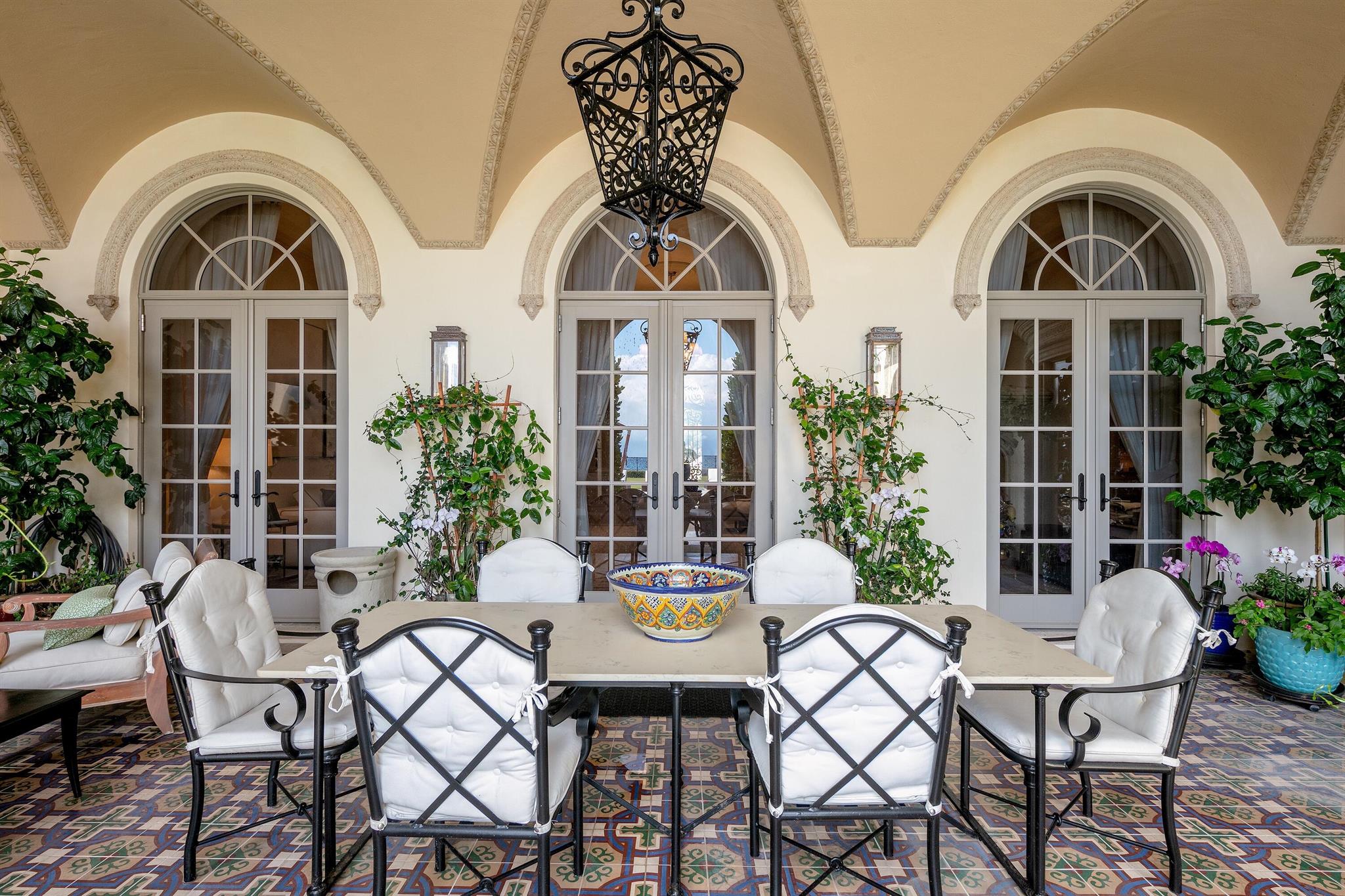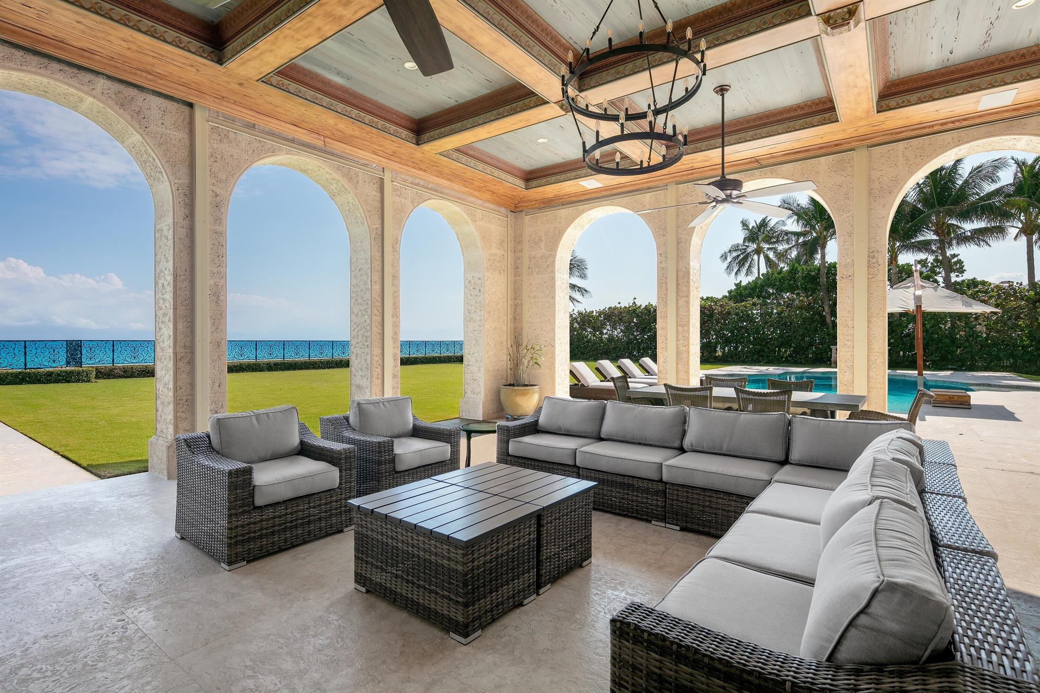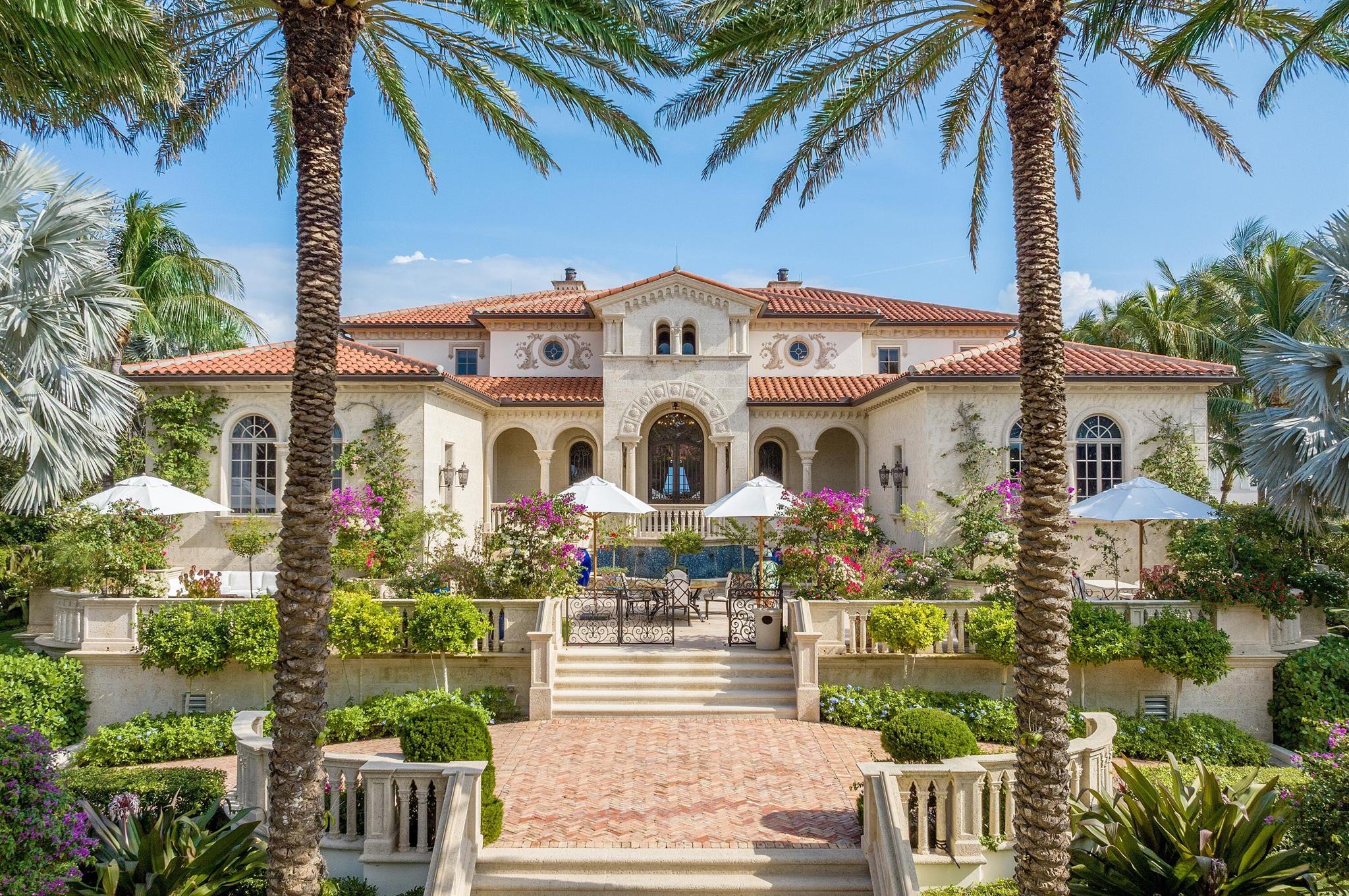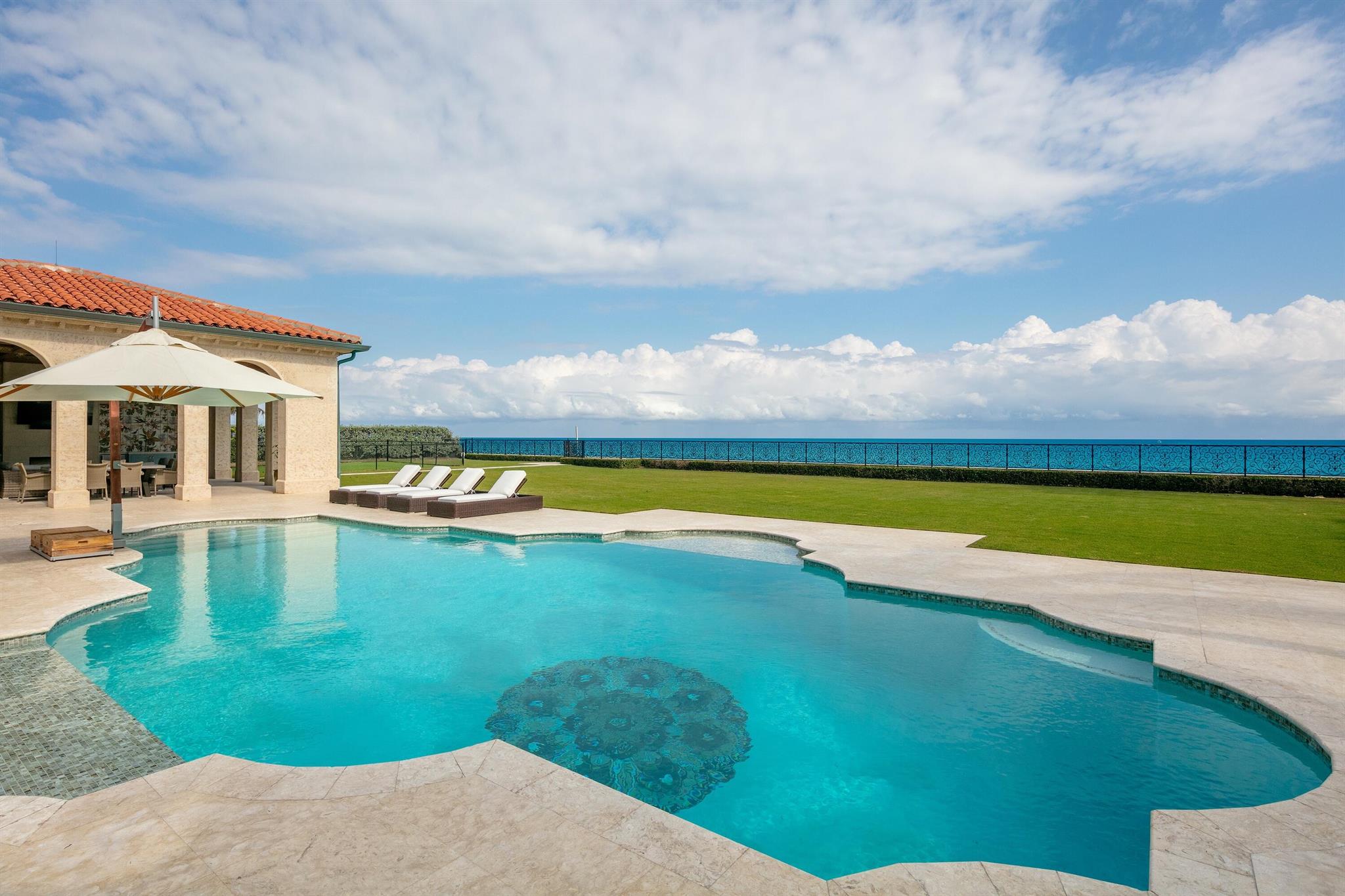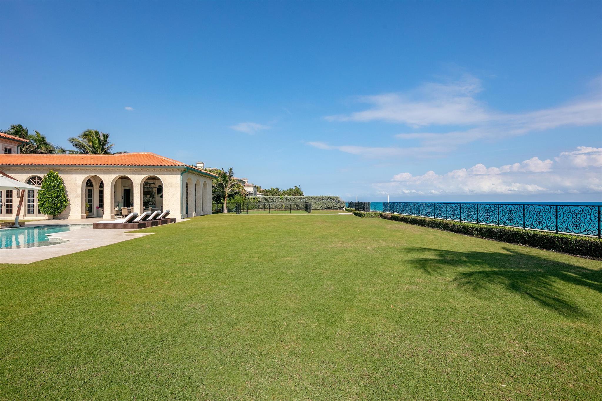 Spectacular Ocean-to-Lake Light and Bright Modern Mediterranean Compound with 9BR/11.3BA and 150 feet +/- of Ocean and Intracoastal frontage. This one-of-a-kind estate features rich details, intricate millwork, and sophisticated finishes. From spectacular reception to oversized living spaces and gorgeous formal dining room, this home is perfect for entertaining. Stunning wrought iron entryway opens to welcoming foyer with sweeping, detailed ceilings, beautiful imperial staircase, and crystal chandelier. Pristine estate with great natural sunlight throughout. Eat-in kitchen with island, china and silverware closet, and butler's pantry. Fabulous theater room connects to pub room with full bar. Paneled library with detailed fireplace. Expansive second floor primary wing with fireplace,