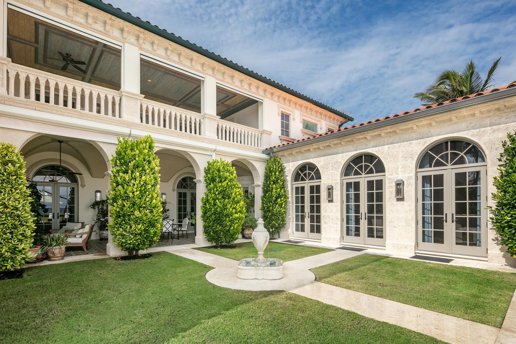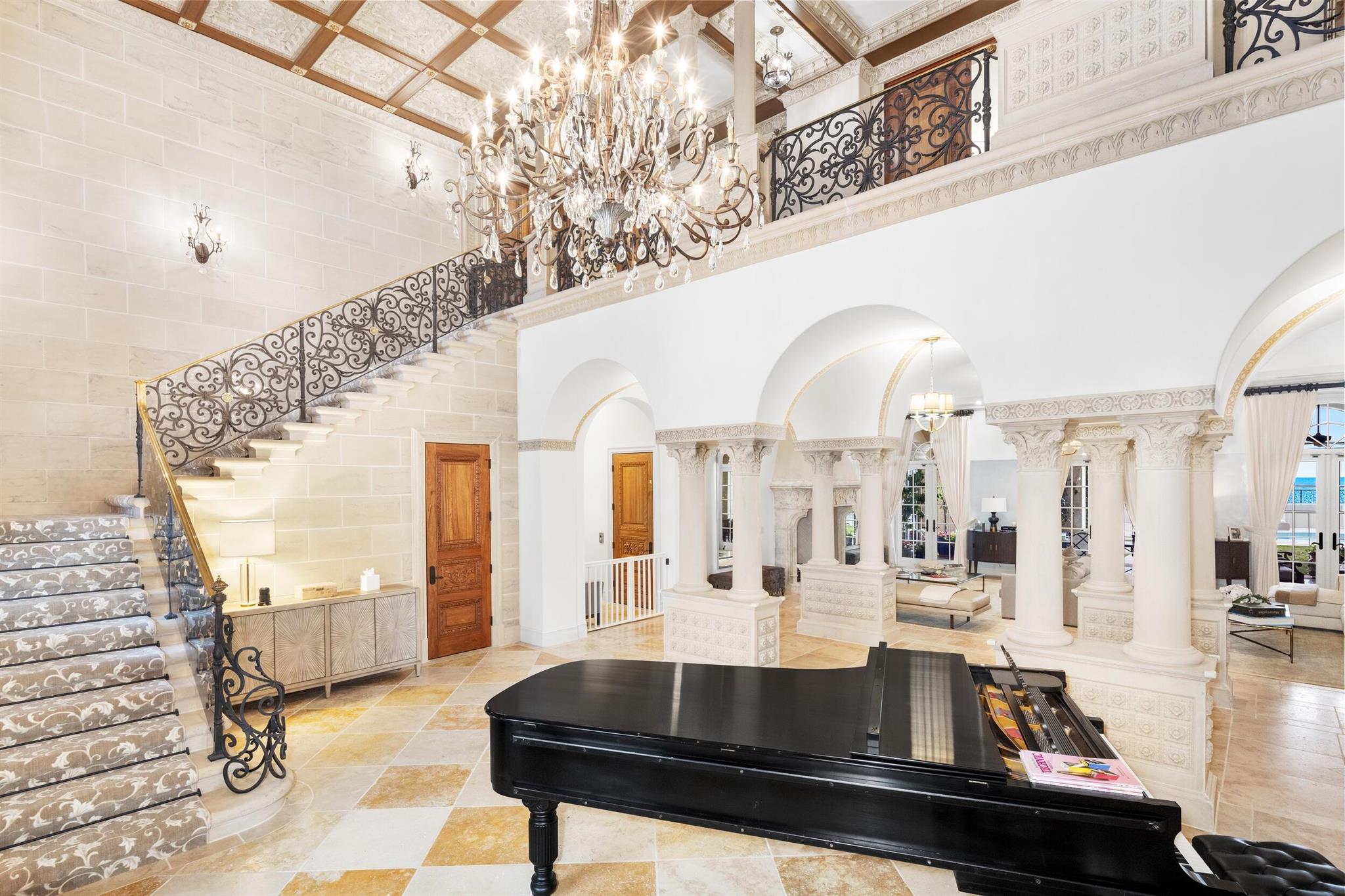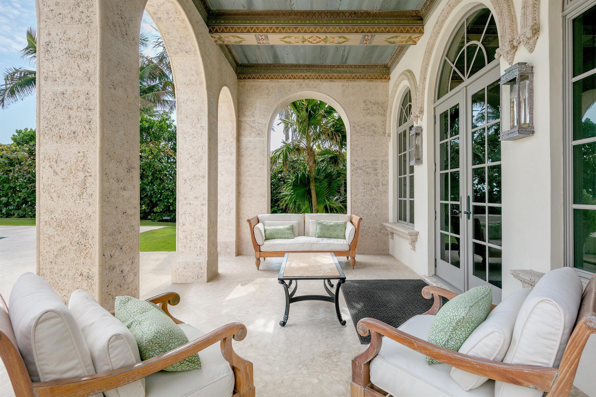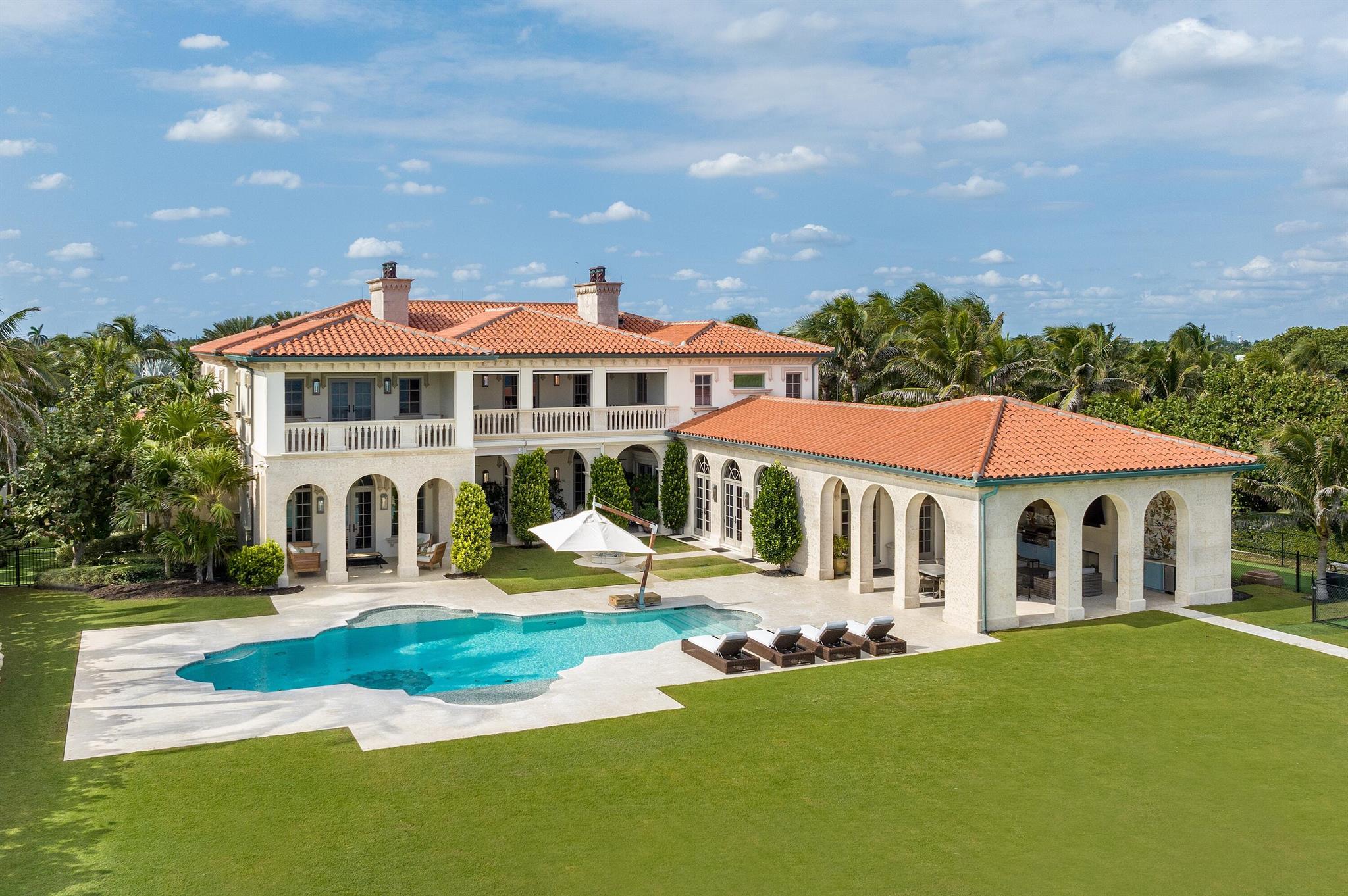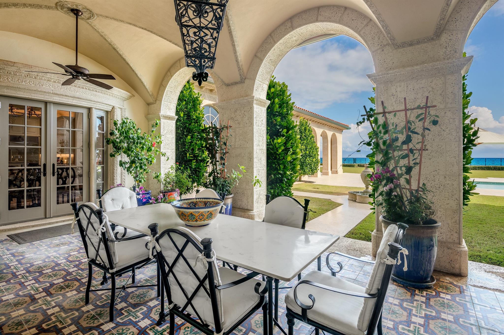Spectacular Ocean-to-Lake Light and Bright Modern Mediterranean Compound with 9BR/11.3BA and 150 feet +/- of Ocean and Intracoastal frontage. This one-of-a-kind estate features rich details, intricate millwork, and sophisticated finishes. From spectacular reception to oversized living spaces and gorgeous formal dining room, this home is perfect for entertaining. Stunning wrought iron entryway opens to welcoming foyer with sweeping, detailed ceilings, beautiful imperial staircase, and crystal chandelier. Pristine estate with great natural sunlight throughout. Eat-in kitchen with island, china and silverware closet, and butler's pantry. Fabulous theater room connects to pub room with full bar. Paneled library with detailed fireplace. Expansive second floor primary wing with fireplace,