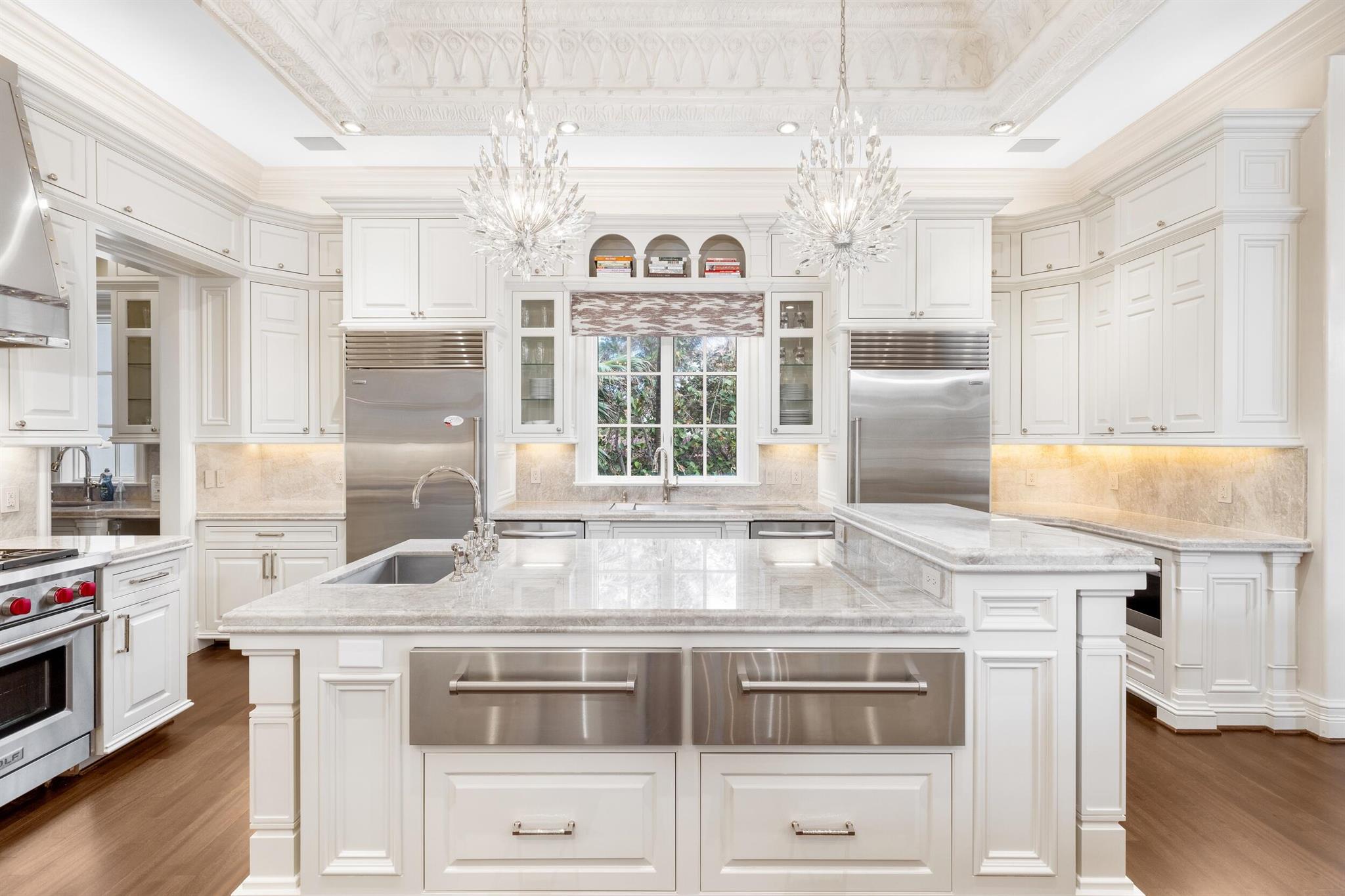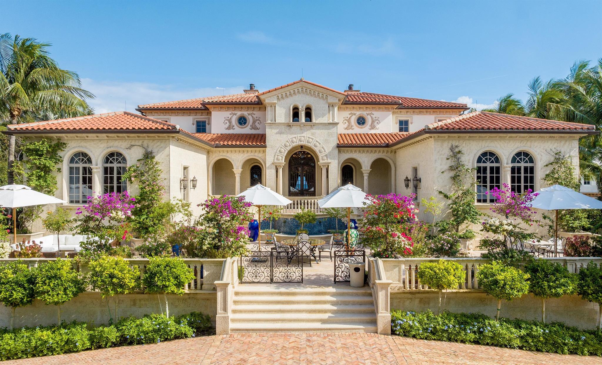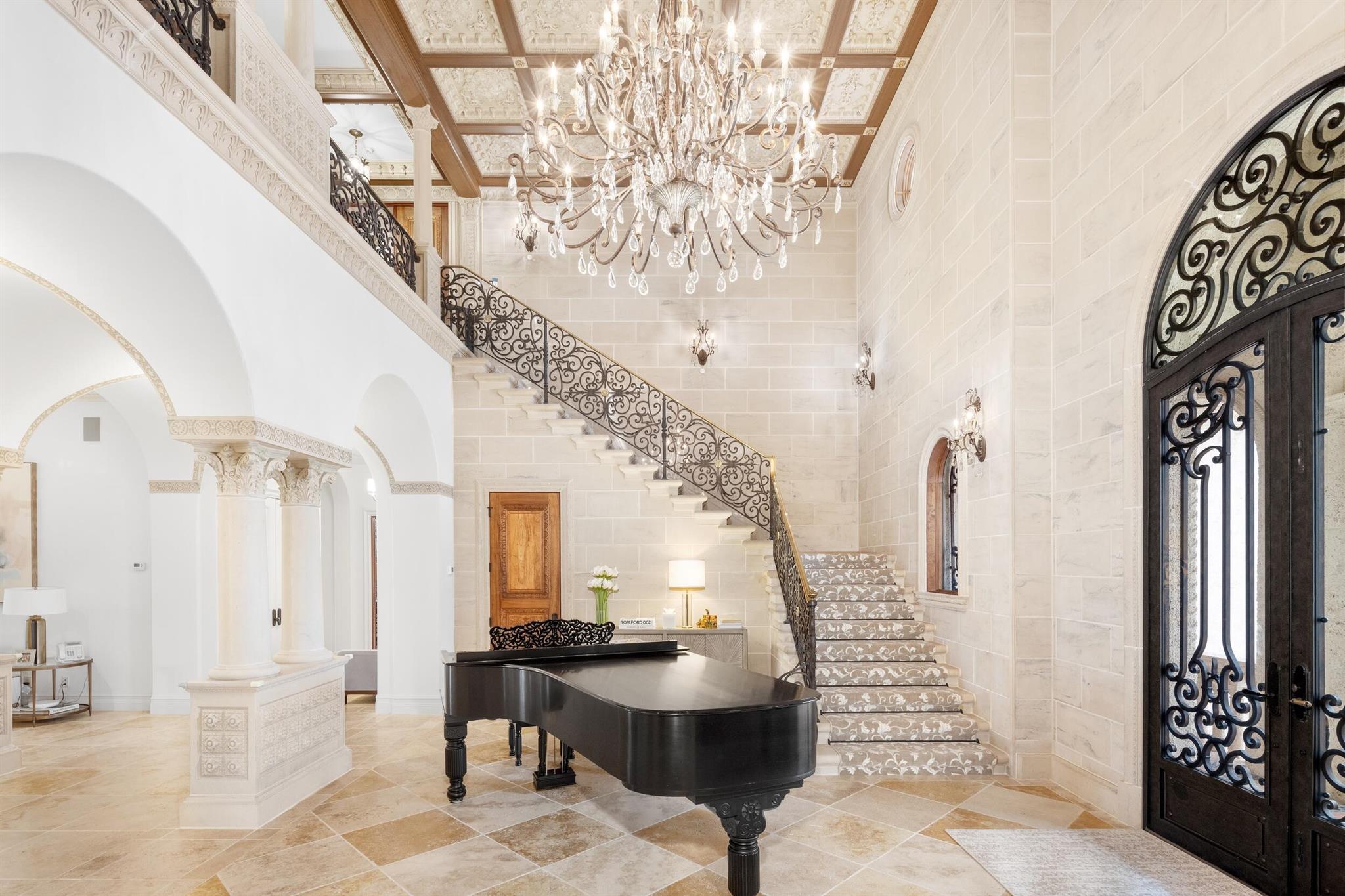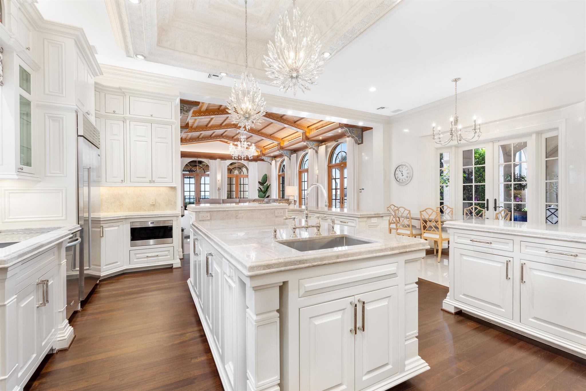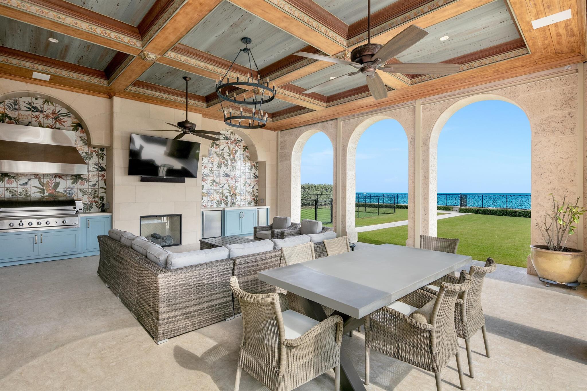 Spectacular Ocean-to-Lake Light and Bright Modern Mediterranean Compound with 9BR/11.3BA and 150 feet +/- of Ocean and Intracoastal frontage. This one-of-a-kind estate features rich details, intricate millwork, and sophisticated finishes. From spectacular reception to oversized living spaces and gorgeous formal dining room, this home is perfect for entertaining. Stunning wrought iron entryway opens to welcoming foyer with sweeping, detailed ceilings, beautiful imperial staircase, and crystal chandelier. Pristine estate with great natural sunlight throughout. Eat-in kitchen with island, china and silverware closet, and butler's pantry. Fabulous theater room connects to pub room with full bar. Paneled library with detailed fireplace. Expansive second floor primary wing with fireplace,
